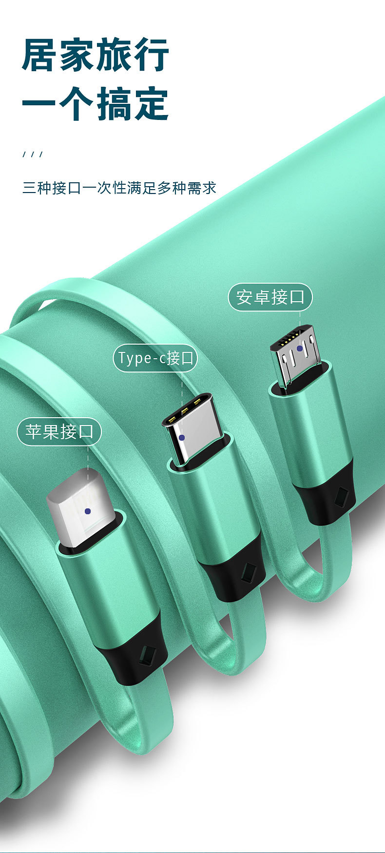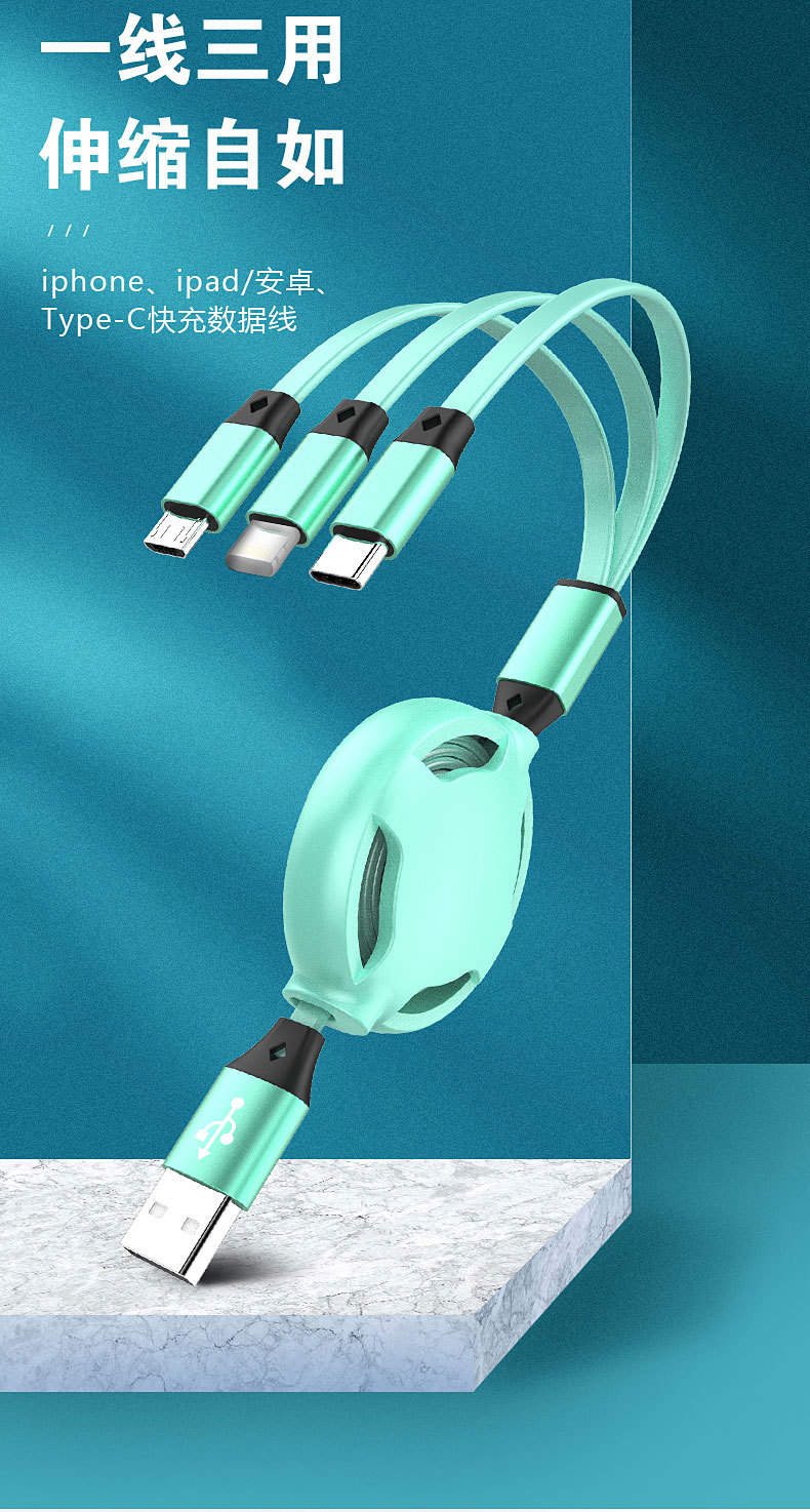 1 대 3 실리콘 데이터 케이블 3 대 1 안드로이드 TYPE 선물 텔레스코픽 충전 케이블 휴대용스토어 가기