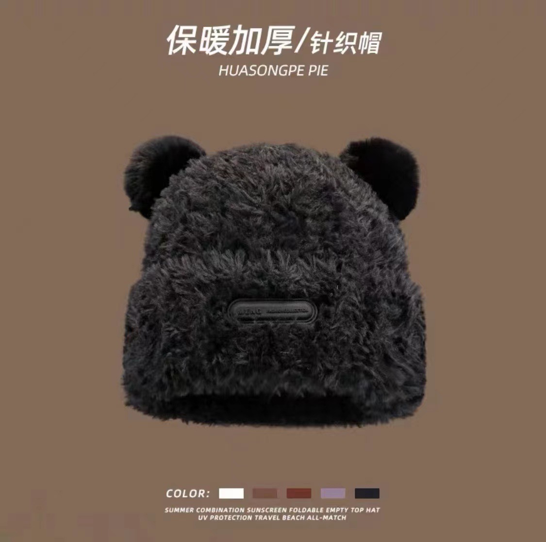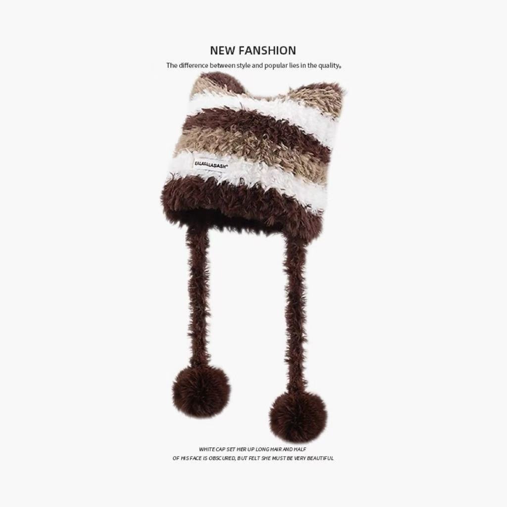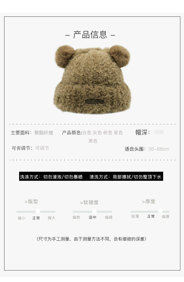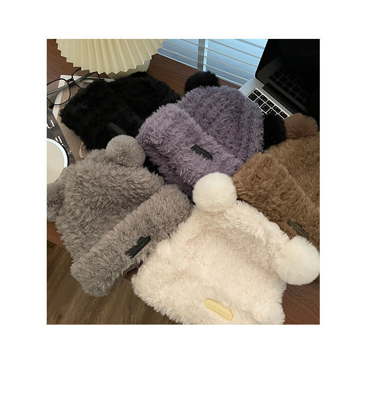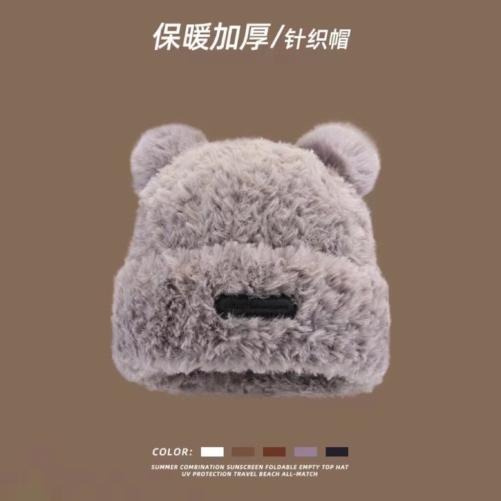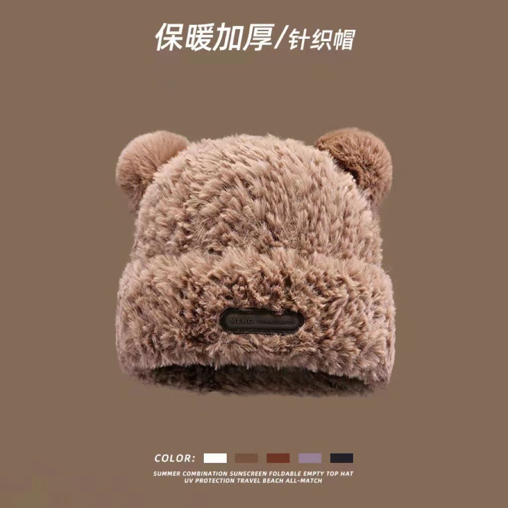 가을 겨울용 귀여운 곰돌이 모양의 여성용 모직 플러스 벨벳 모자, 인터넷 인기 따뜻한 큰 챙 두꺼운 귀 보호 플러시 모자스토어 가기