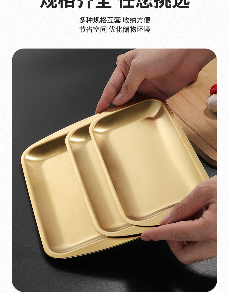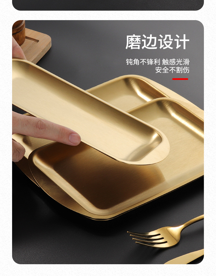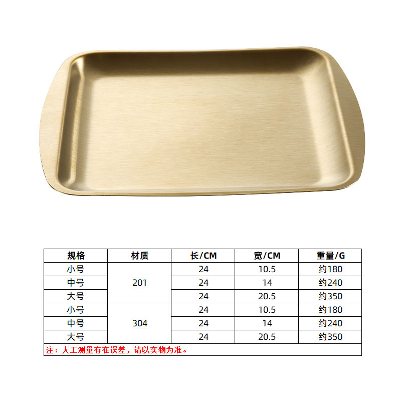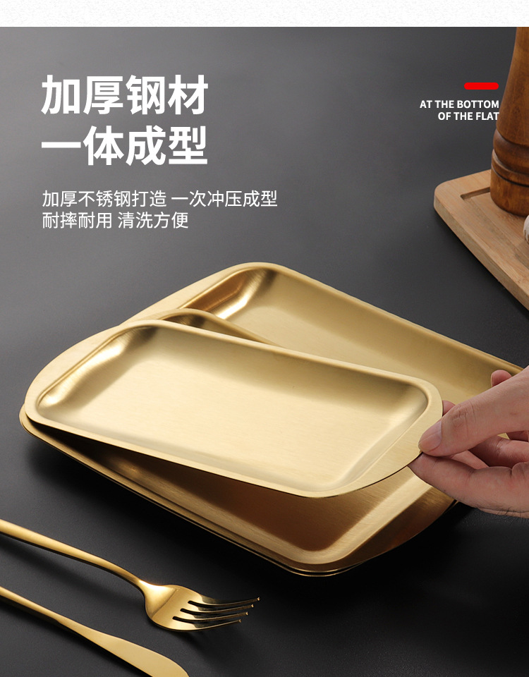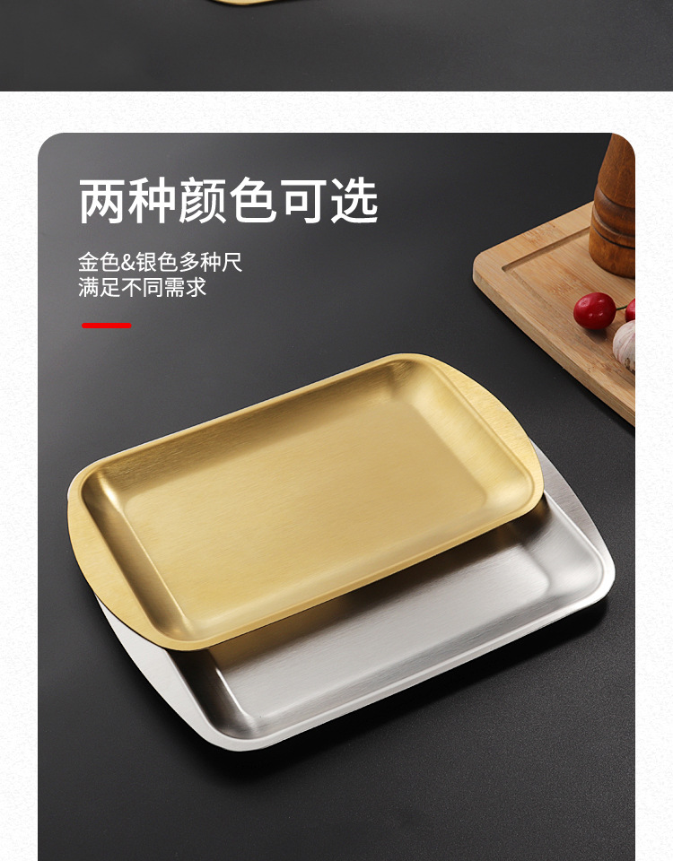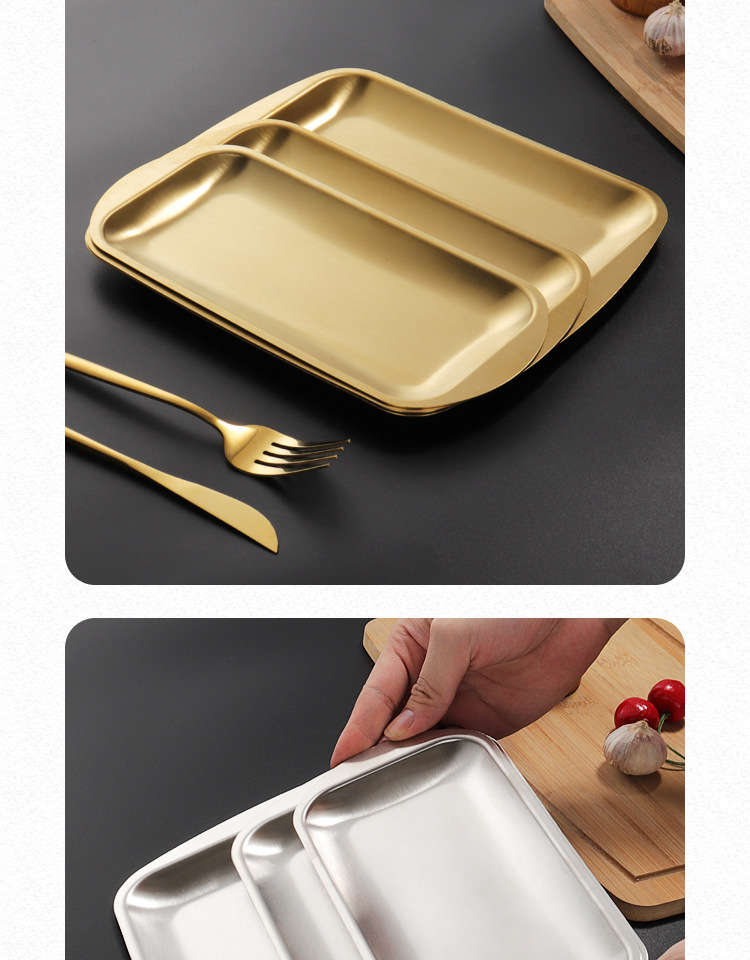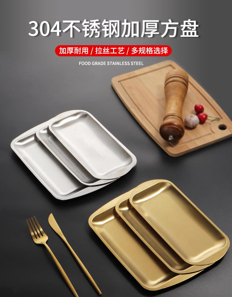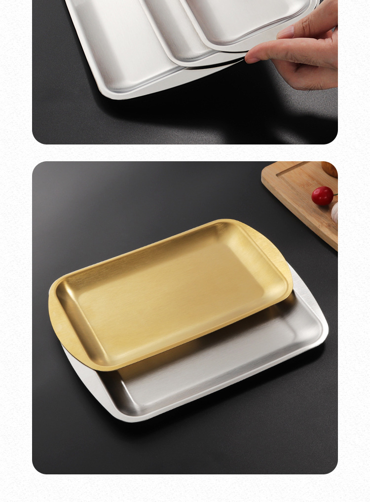 304 한국식 스테인레스 스틸 플레이트 황금 트레이 공예 플레이트 호텔 레스토랑 황금 스낵 디저트 바베큐 플레이트