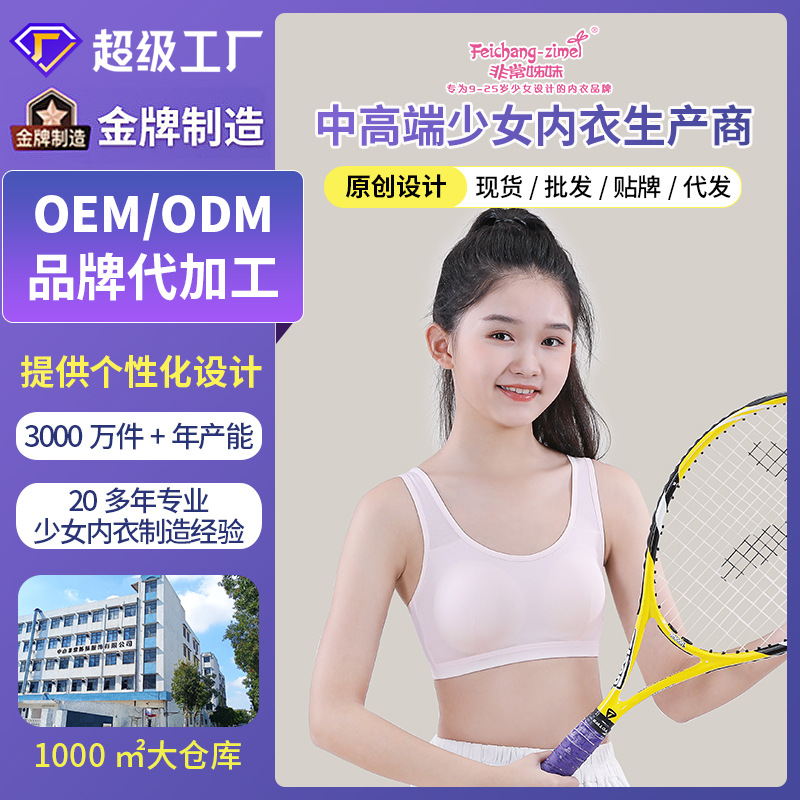중학생 여아 및 청소년을 위한 맞춤형 2단계 발달기 속옷, 와이어가 없는 브라, OEM 가능