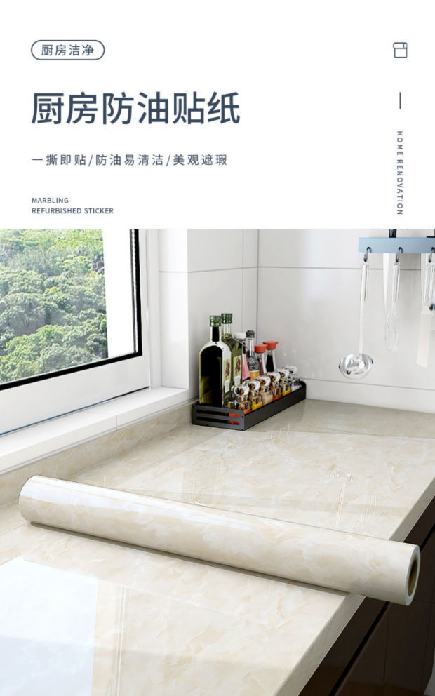 주방 방수 대리석 가정용 고온 방지 벽 스티커 방수, 습기 방지 및 곰팡이 방지 벽지 자체 접착 수조 캐비닛 스티커