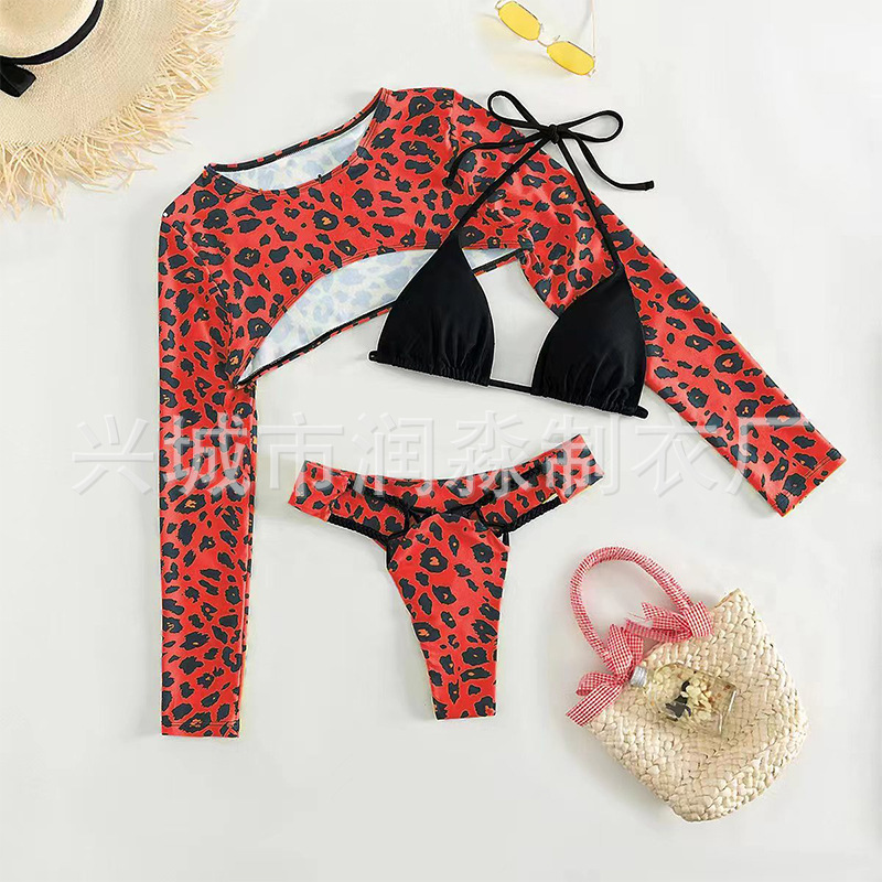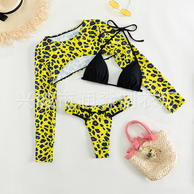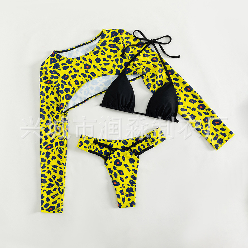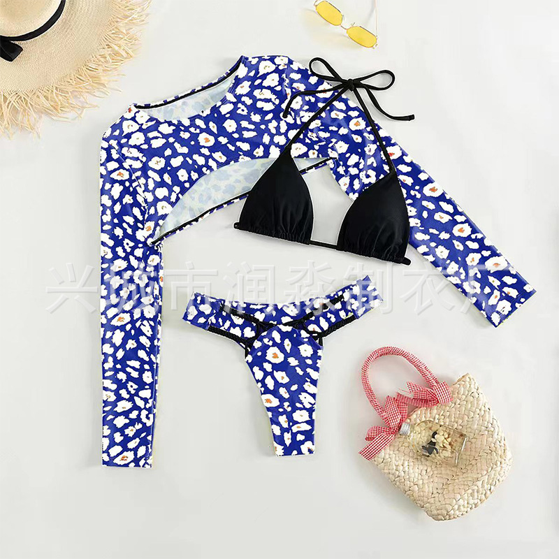 유럽과 미국의 Ins 분할 비키니 3 피스 세트 작은 가슴 모임 섹시한 여름 해변 3 점 온천 수영복 여성