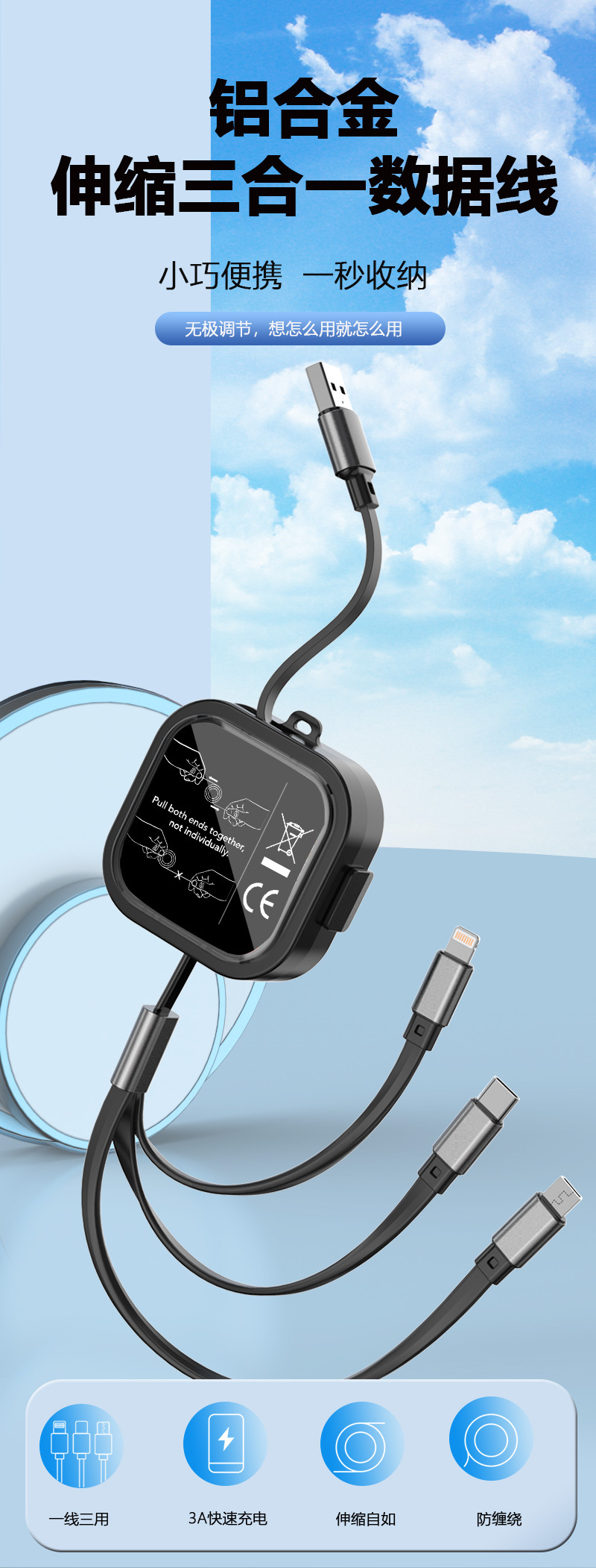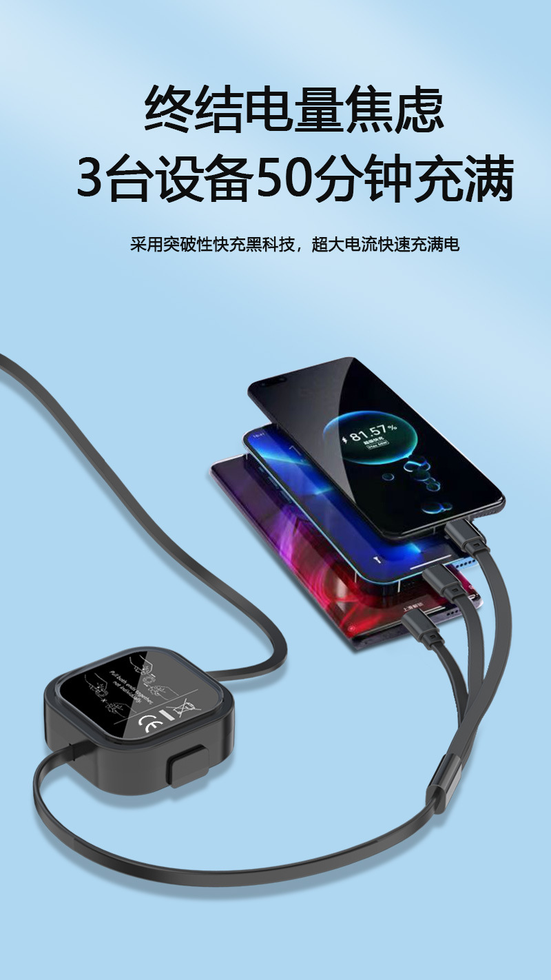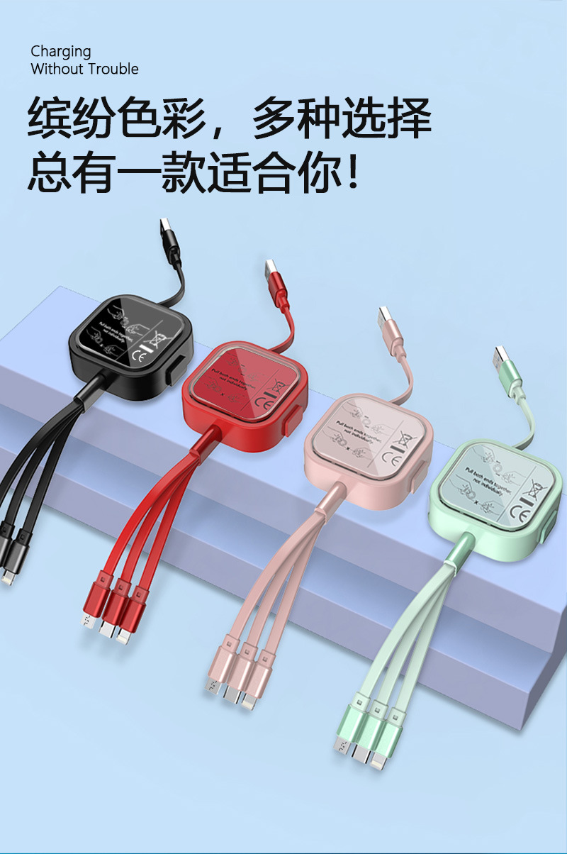 사각 브래킷 텔레스코픽 데이터 케이블 원 드래그 3 3A 애플 안드로이드 타입-c 선물 데이터 공장 직접 공급스토어 가기