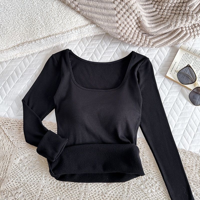가을과 겨울 광장 칼라 브랜딩 가슴 패드 열 속옷 여성용 두꺼운 내부 슬림베이스 셔츠 탑