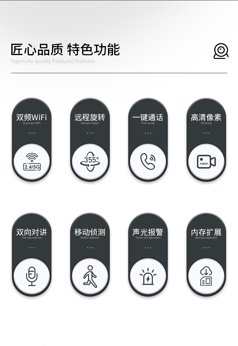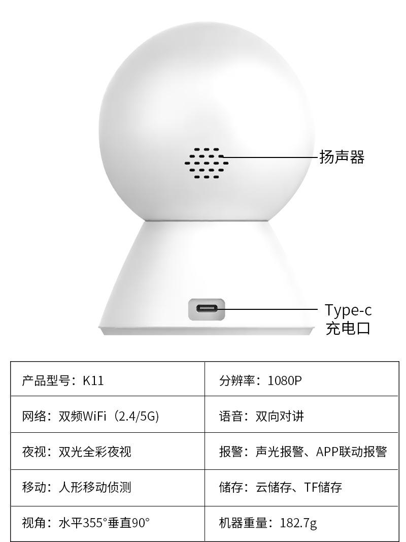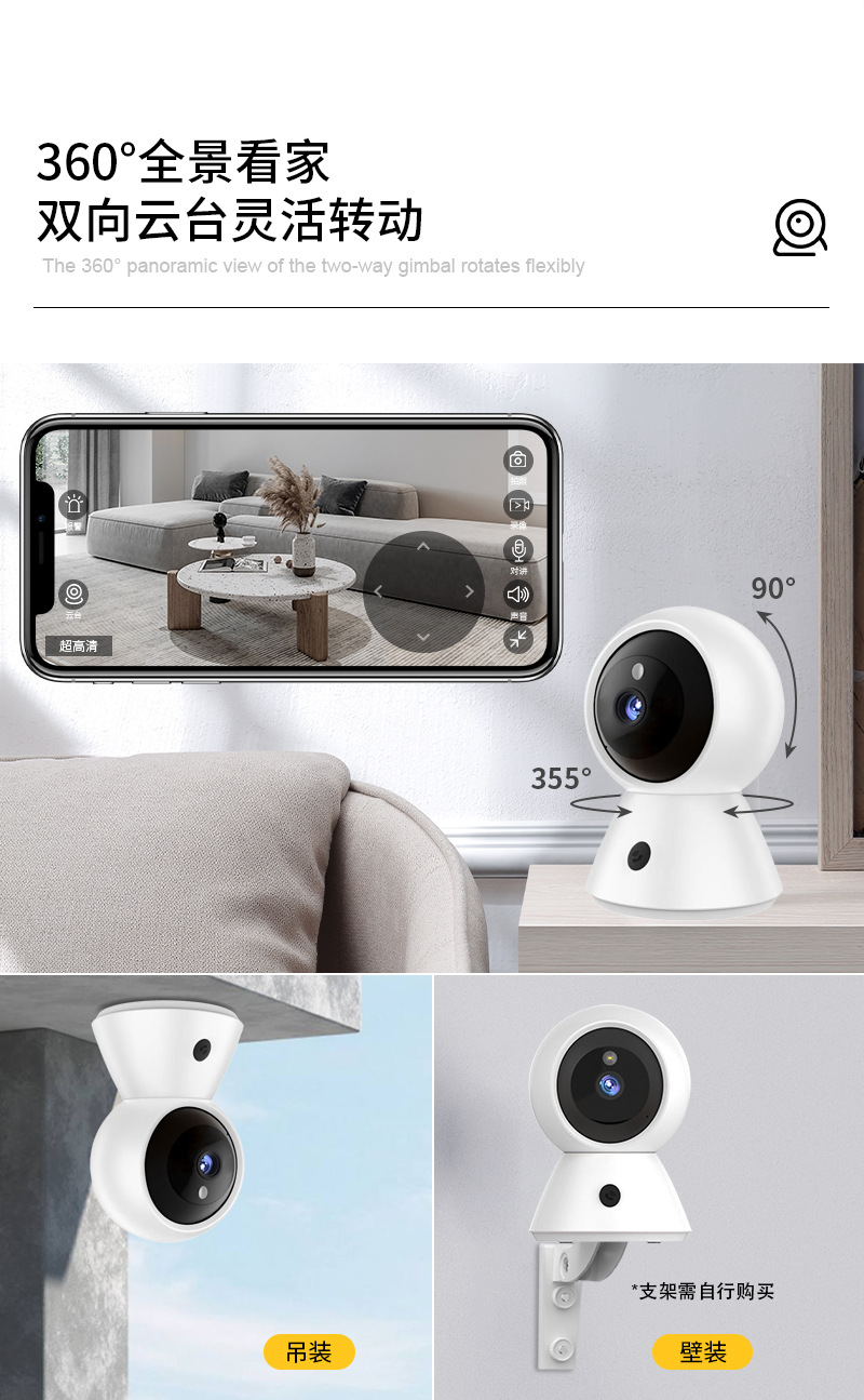HD 1080p 카메라 원격 원 키 알람 흔들기 헤드 기계 듀얼 주파수 와이파이 실내 카메라 영역 배치스토어 가기