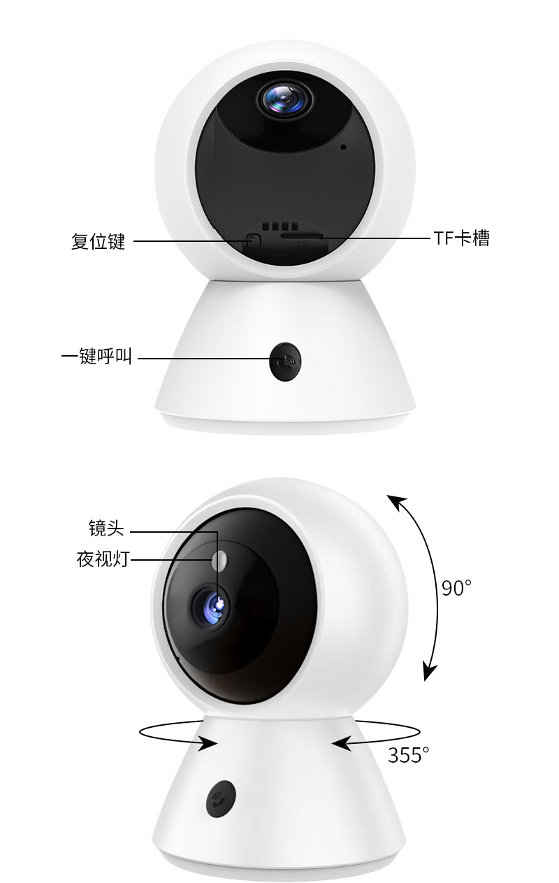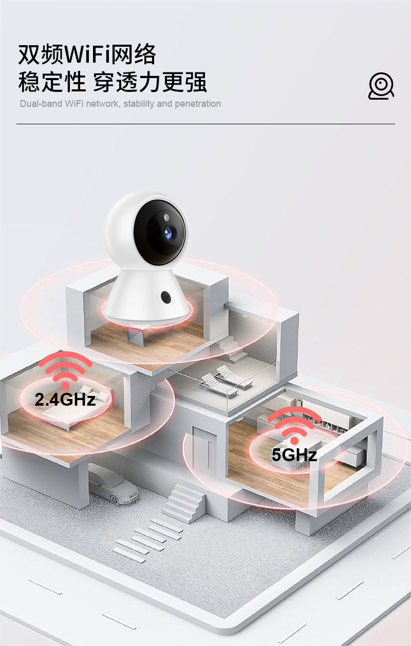 HD 1080p 카메라 원격 원 키 알람 흔들기 헤드 기계 듀얼 주파수 와이파이 실내 카메라 영역 배치