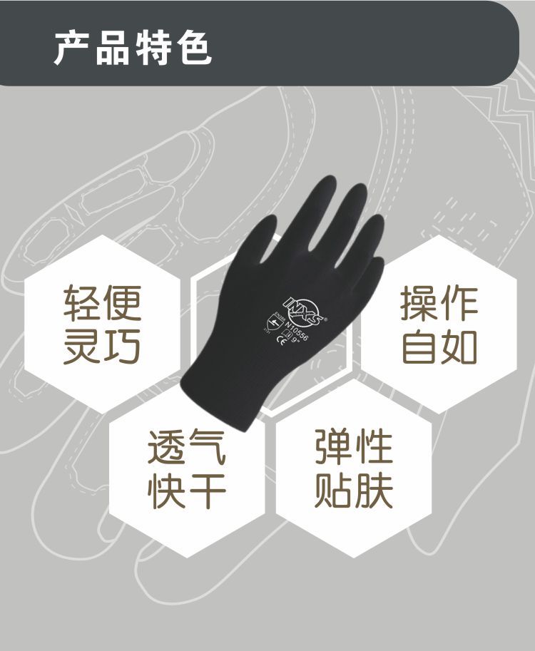 셀라이트 N10556 범용 작업 장갑 블랙 폴리 에스테르 PU 접착제 미끄럼 방지 유지 보수 및 취급 공사