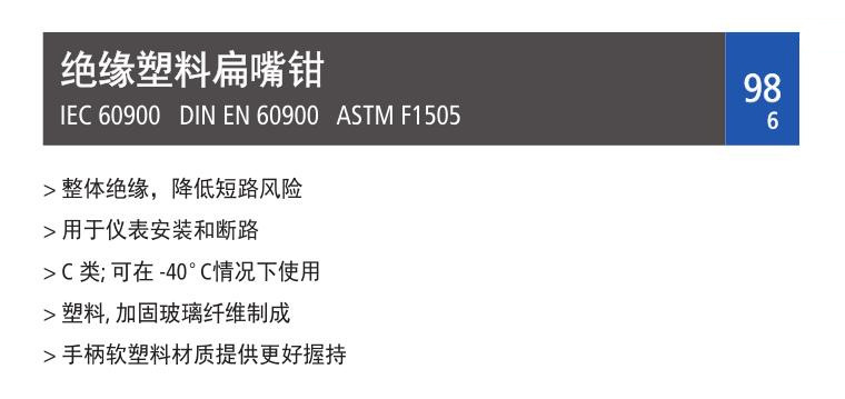 Kenipike KNIPEX 98 62 시리즈 1000V 절연 플라스틱 펜치/02