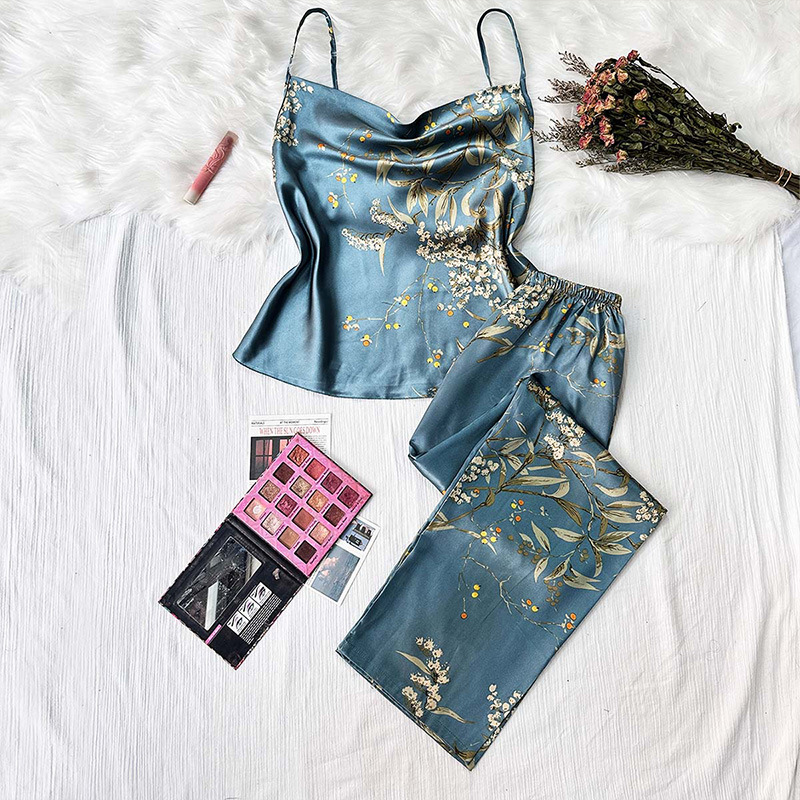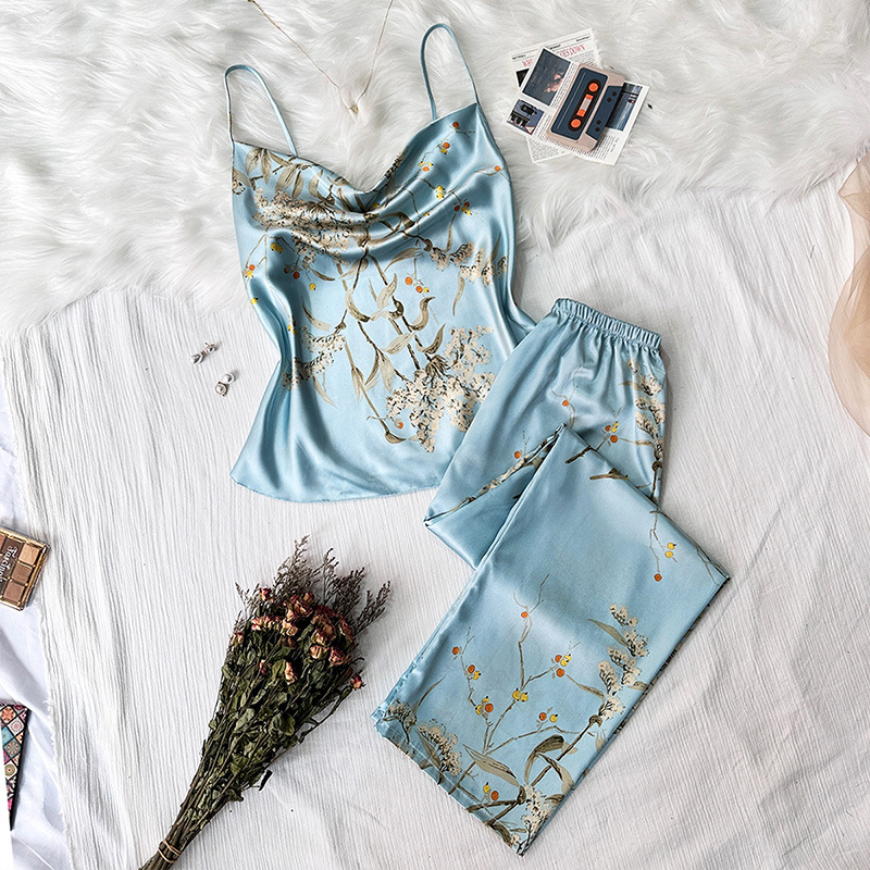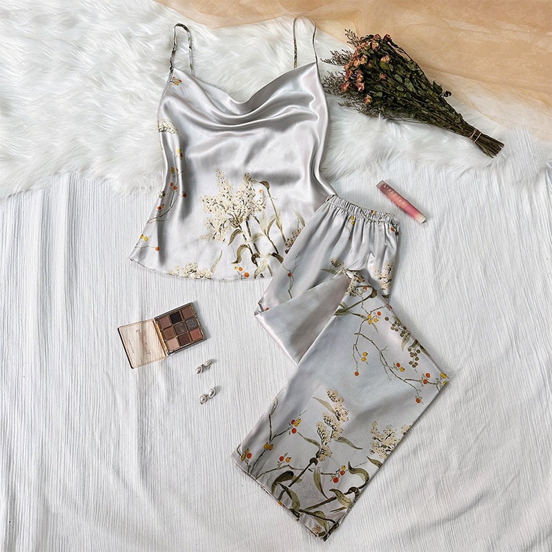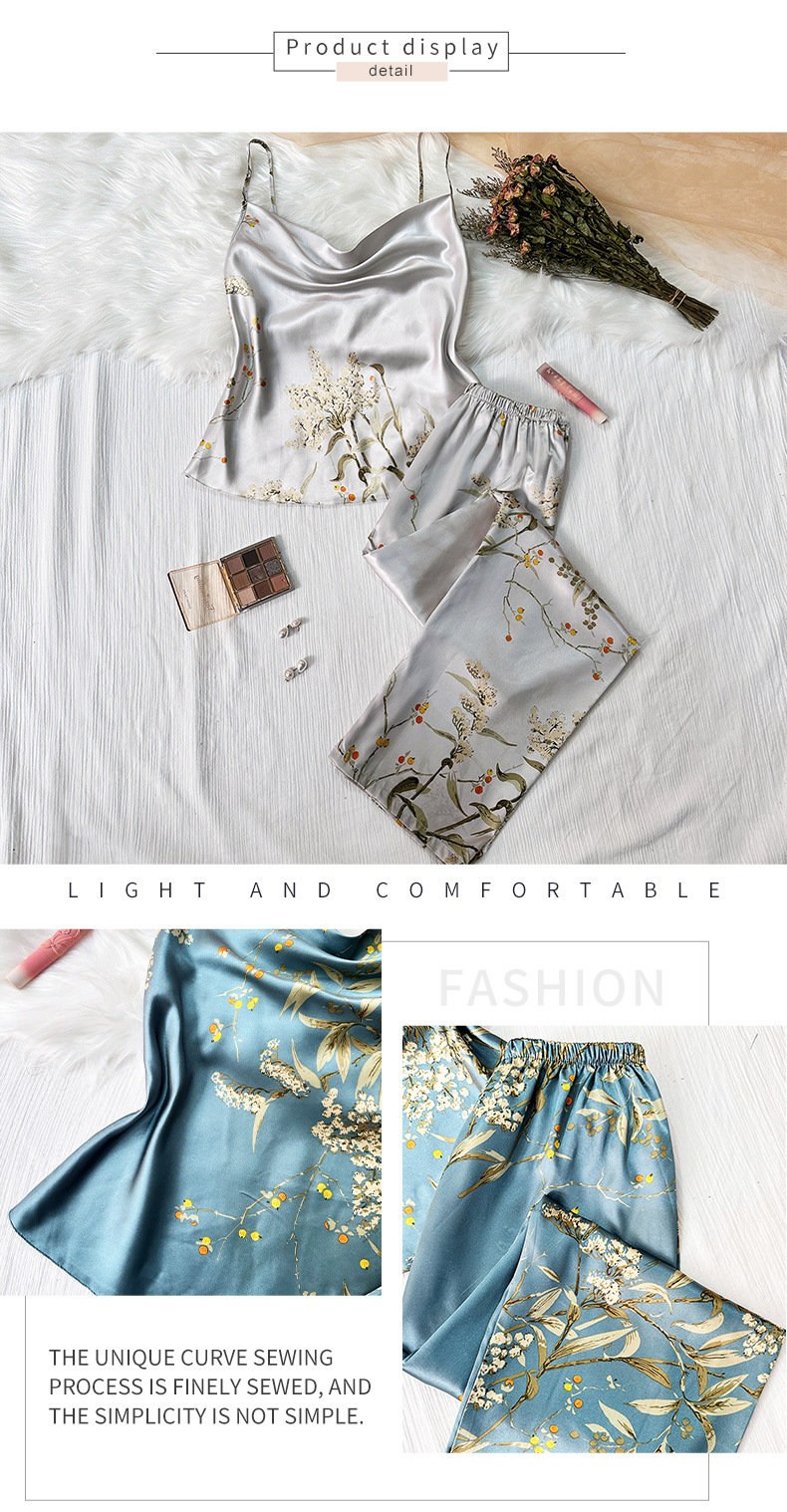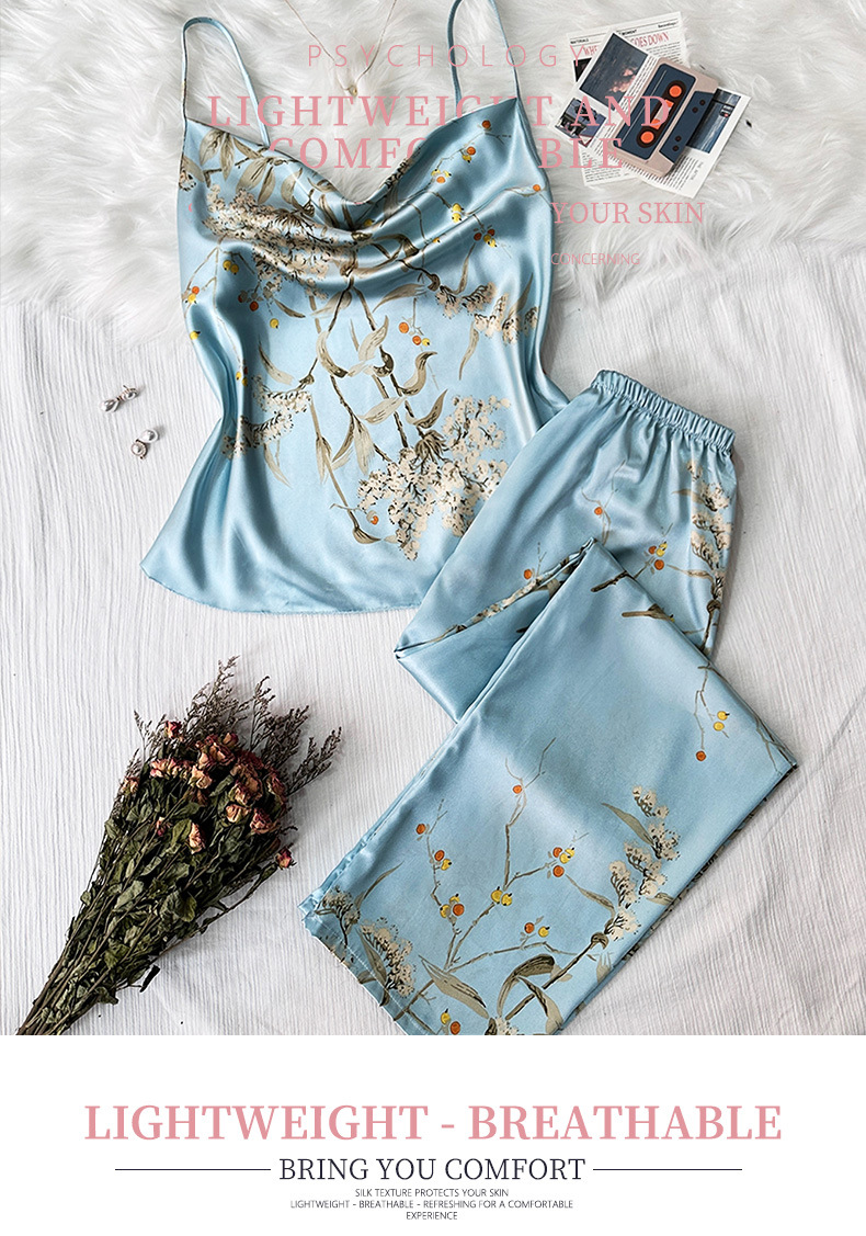 봄과 여름 새로운 아이스 실크 잠옷 유럽과 미국 패션 간단한 속옷 슬링 잠옷 통기성 얇은 섹시한 가정 옷