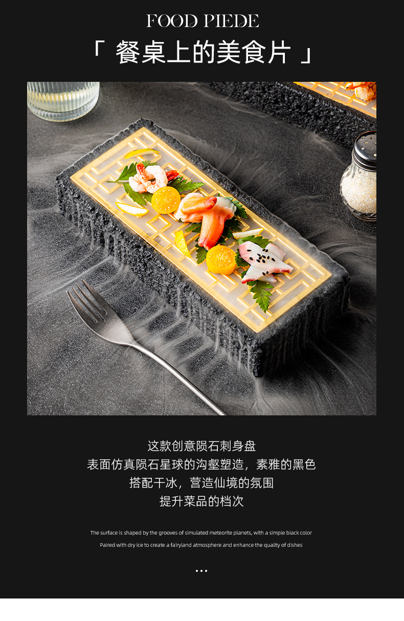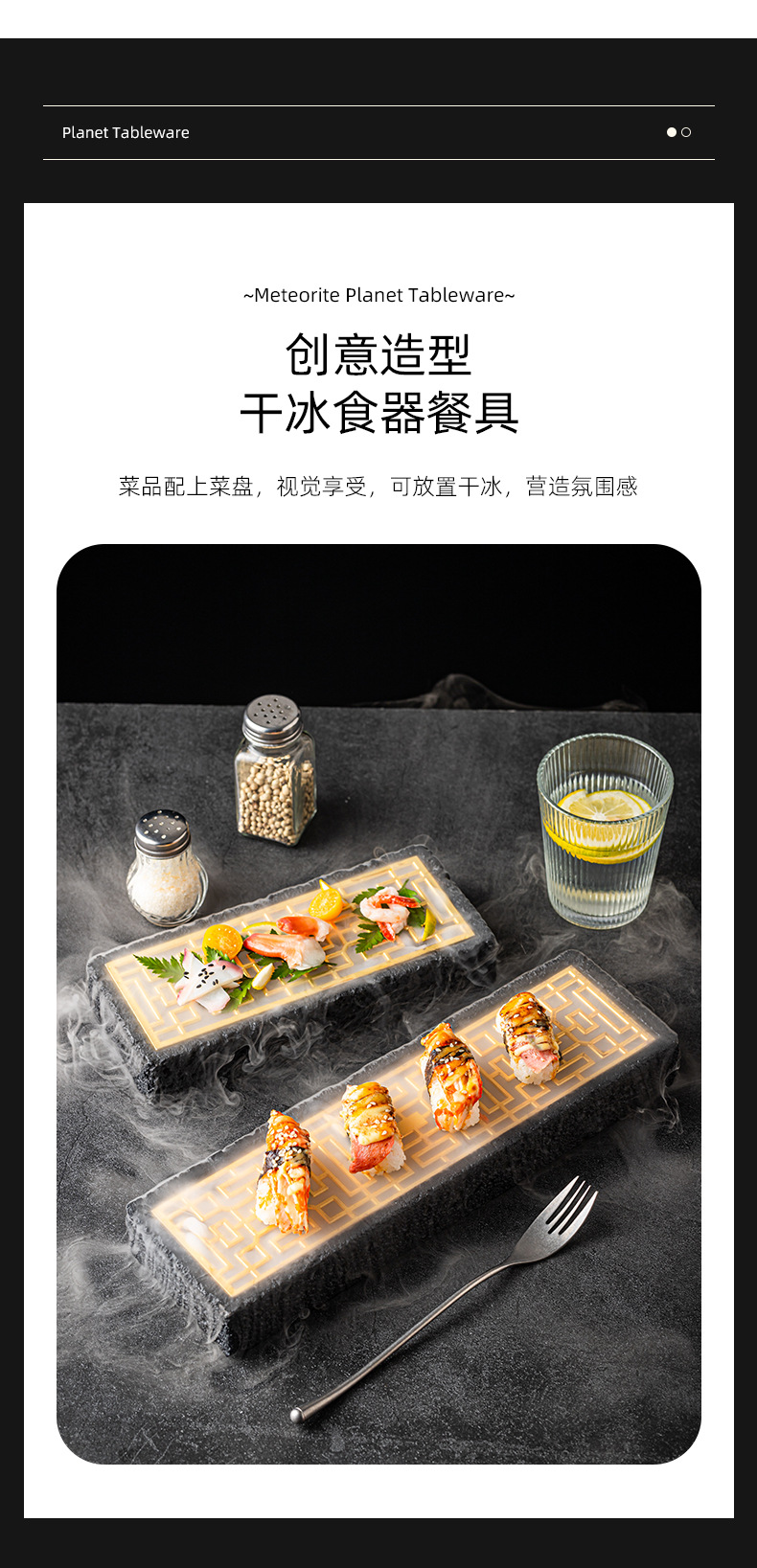 크리에이 티브 롱 스퀘어 스시 플레이트 인터넷 축하 분자 요리 사시미 식기 무드 드라이 아이스 일본 딤섬 웨스턴 플레이트스토어 가기