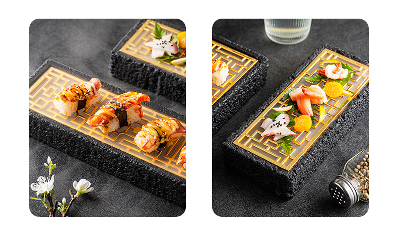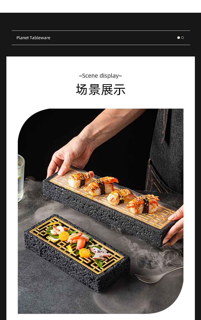 크리에이 티브 롱 스퀘어 스시 플레이트 인터넷 축하 분자 요리 사시미 식기 무드 드라이 아이스 일본 딤섬 웨스턴 플레이트