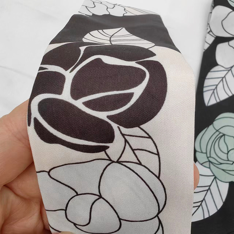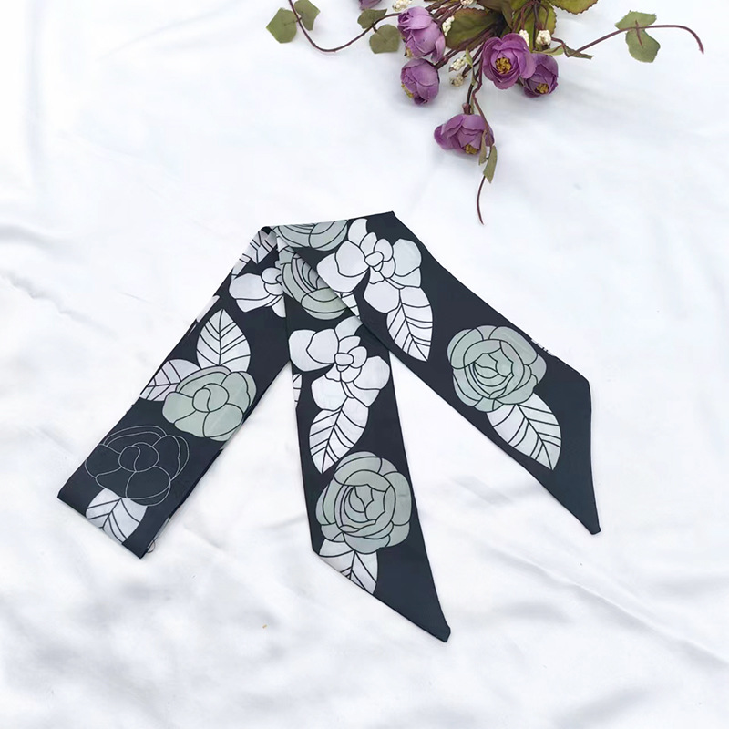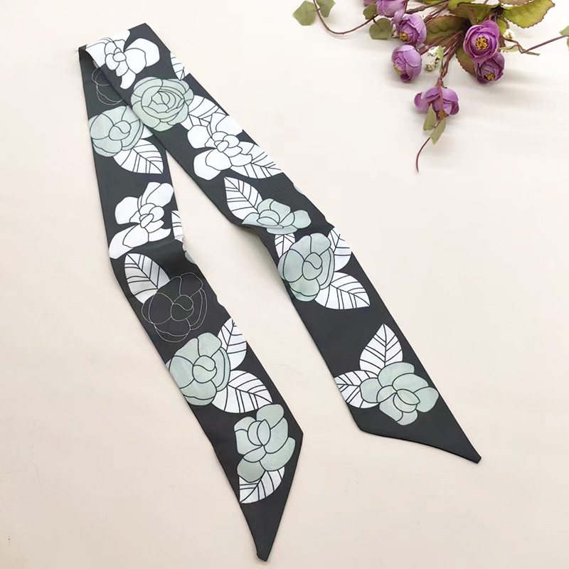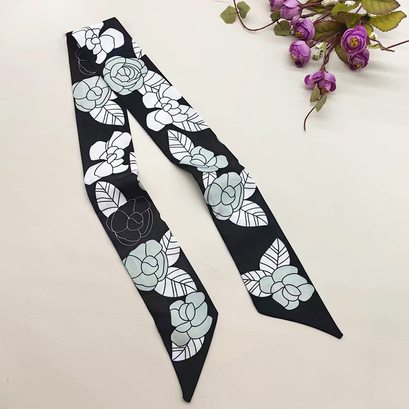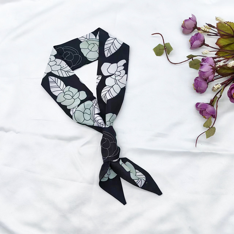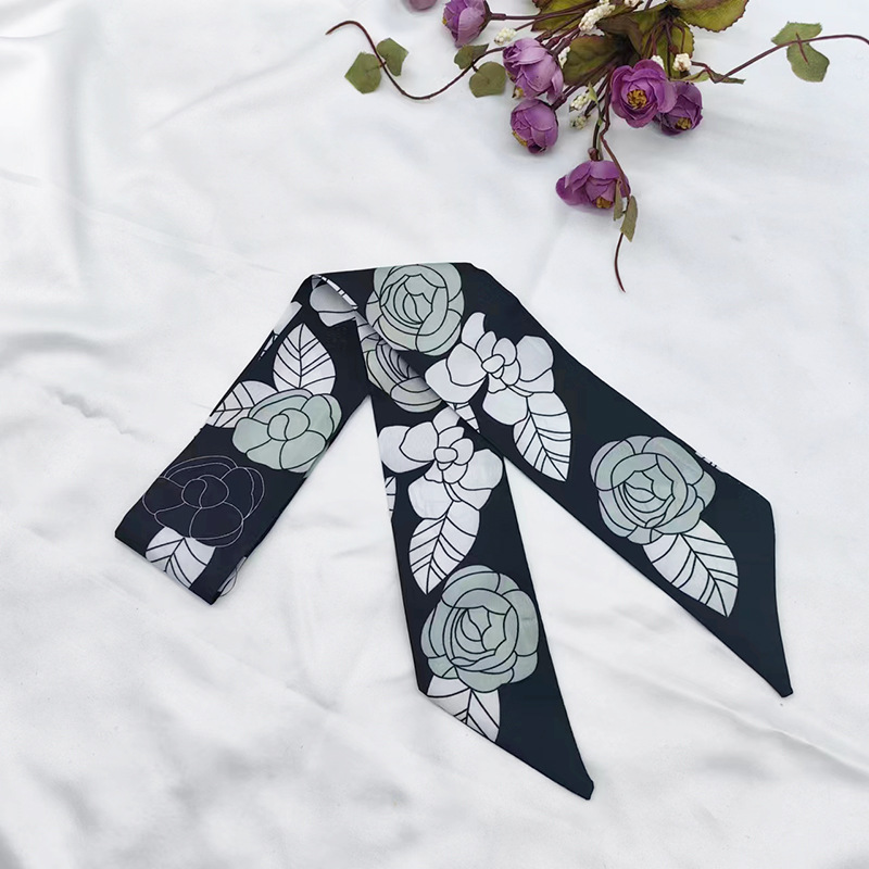 실키 롱 실크 스카프 나비 넥타이 헤어 벨트 흑백 동백 꽃 리본 넥타이 가방 동반 선물 작은 스카프 벨트