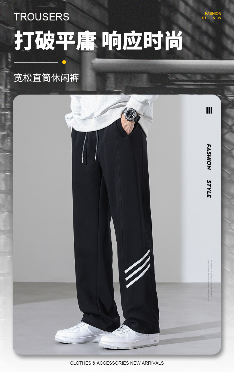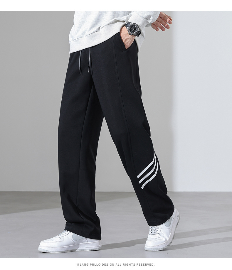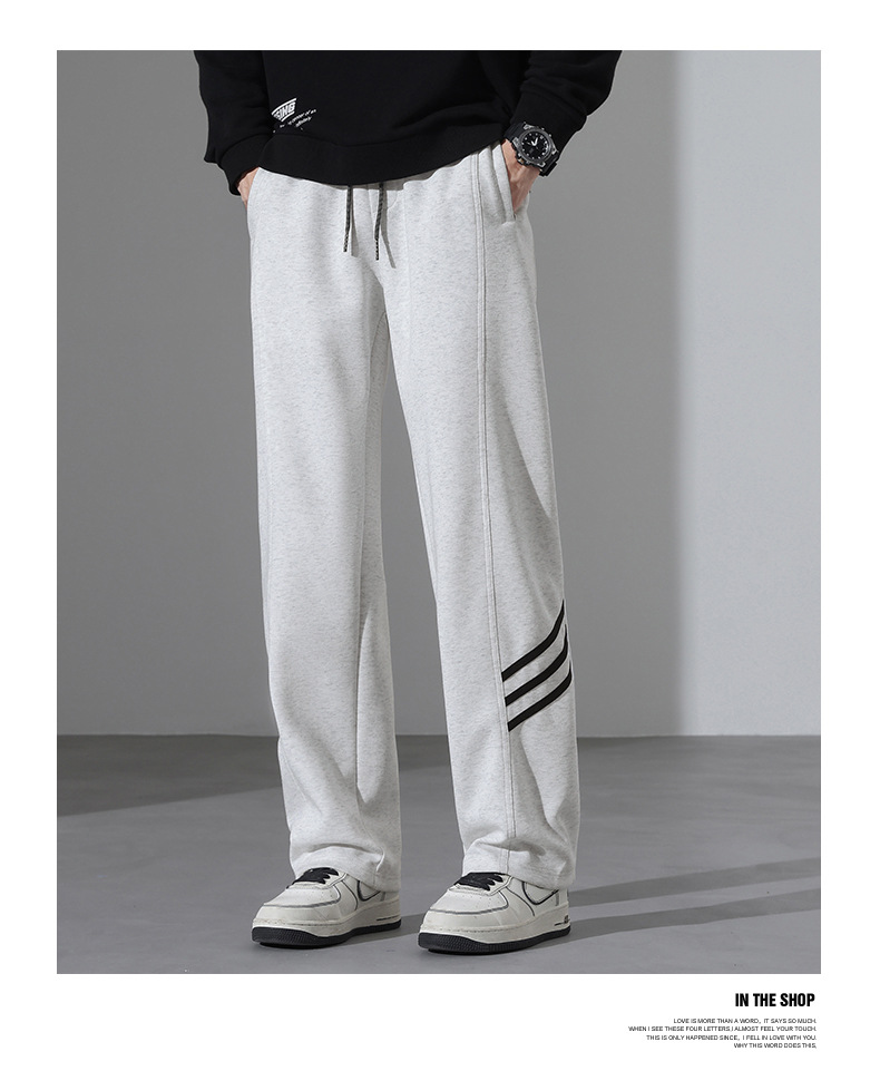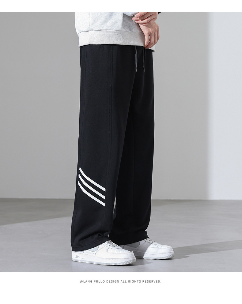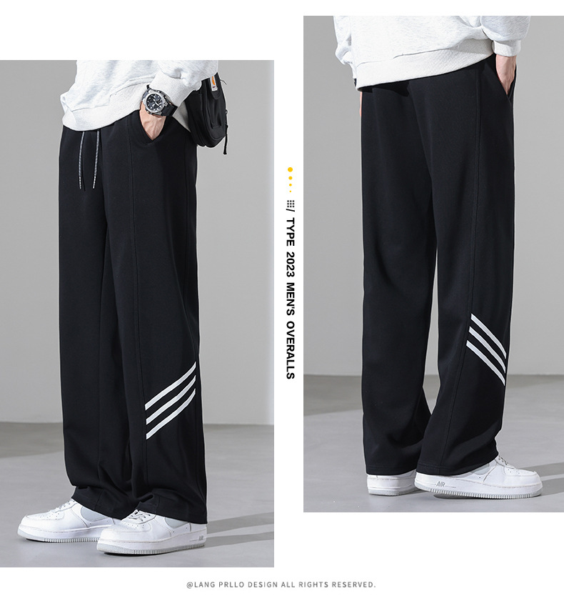 봄 밝은 색 스포츠 스웨트 팬츠 남성용 느슨한 스트레이트 캐주얼 바지 남성용 미국 스트라이프 디자인 드레이핑 바지스토어 가기