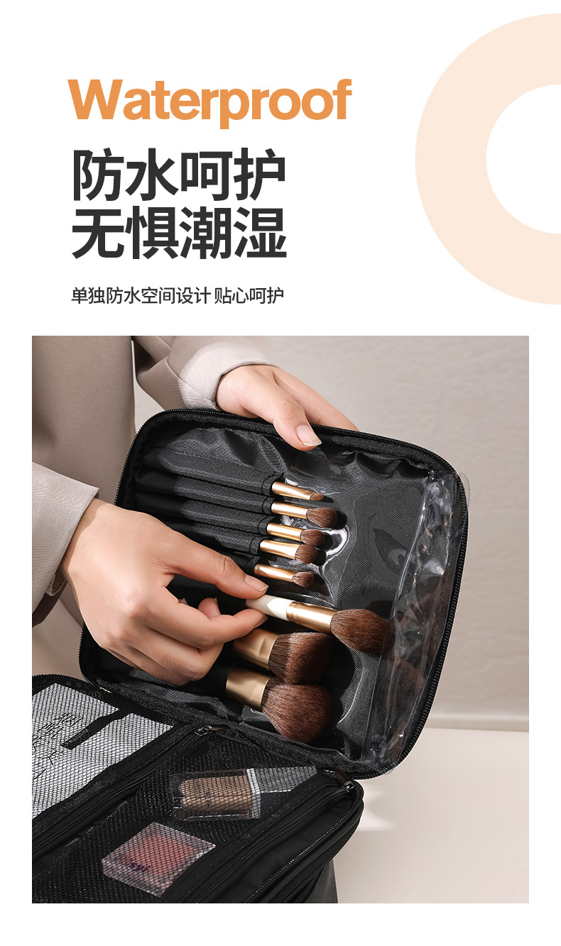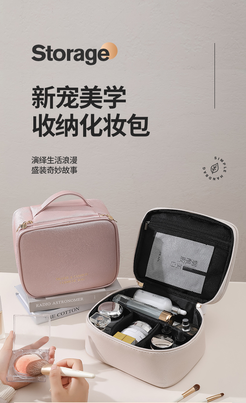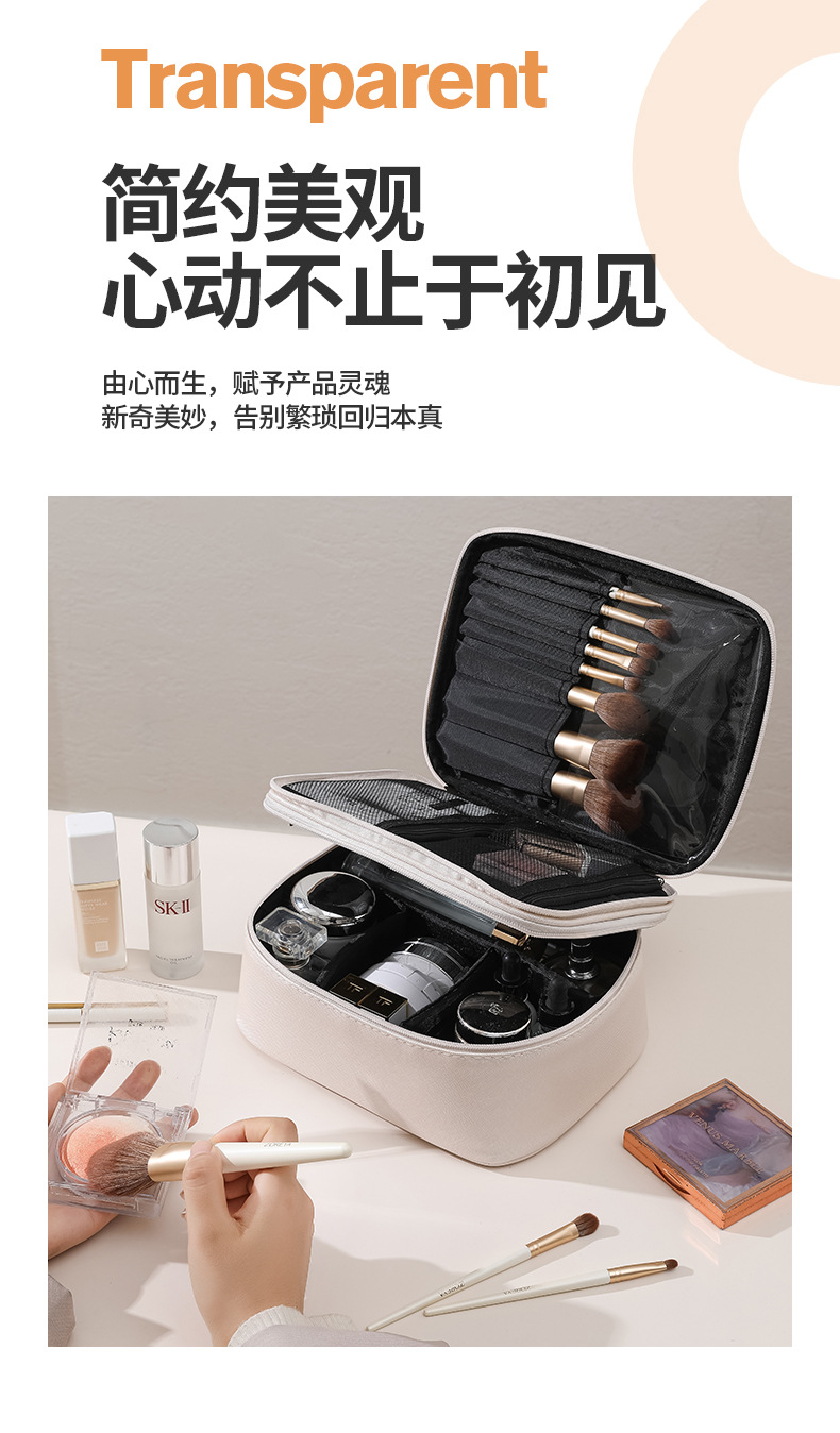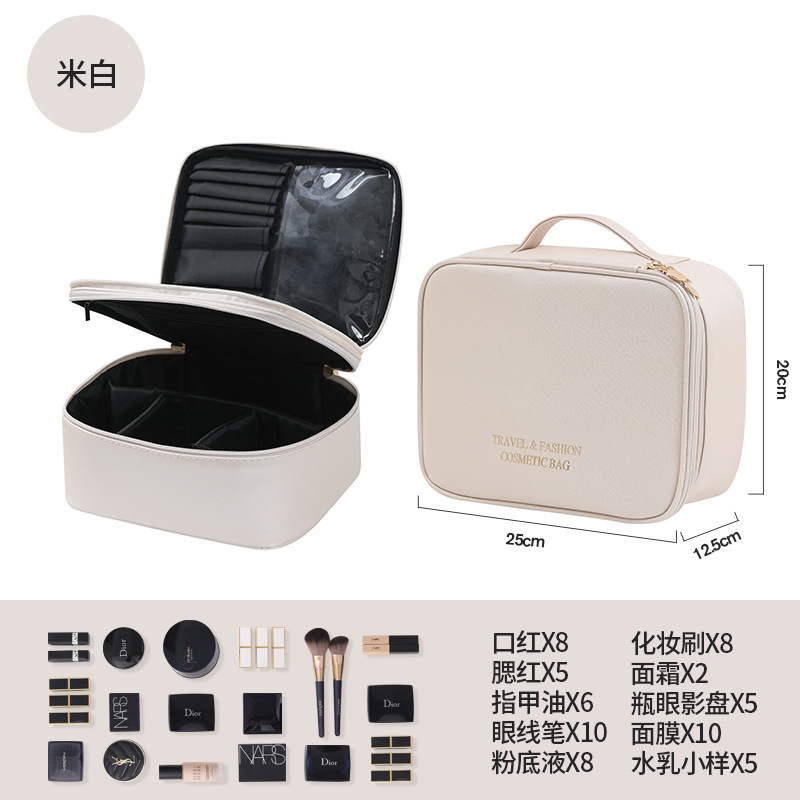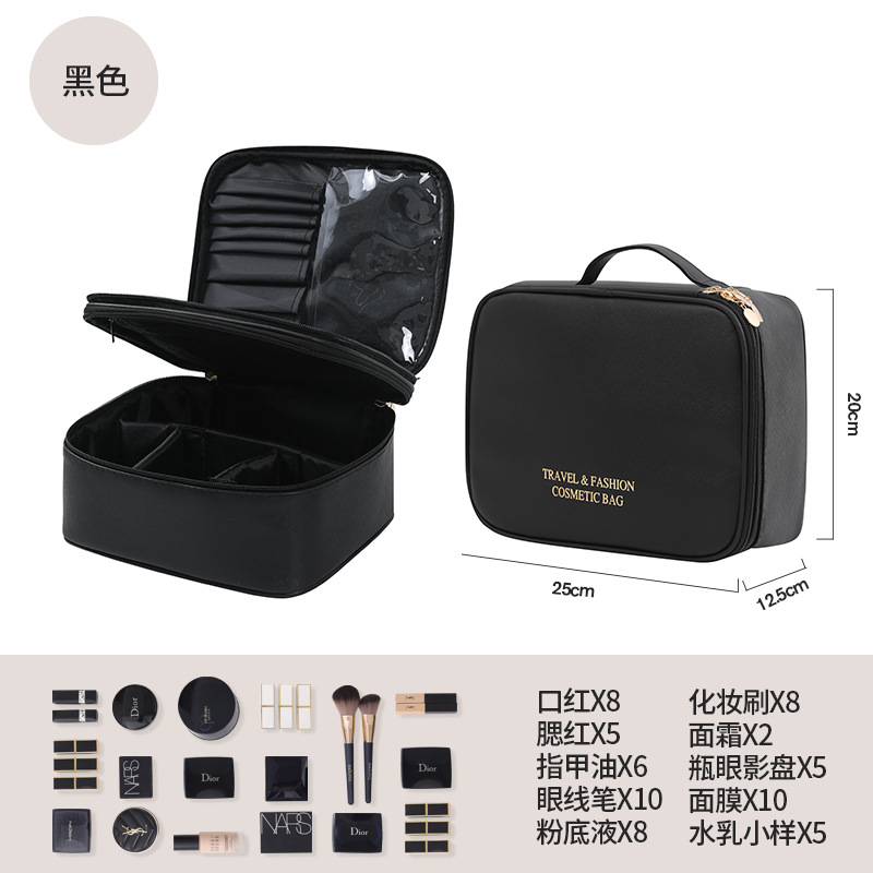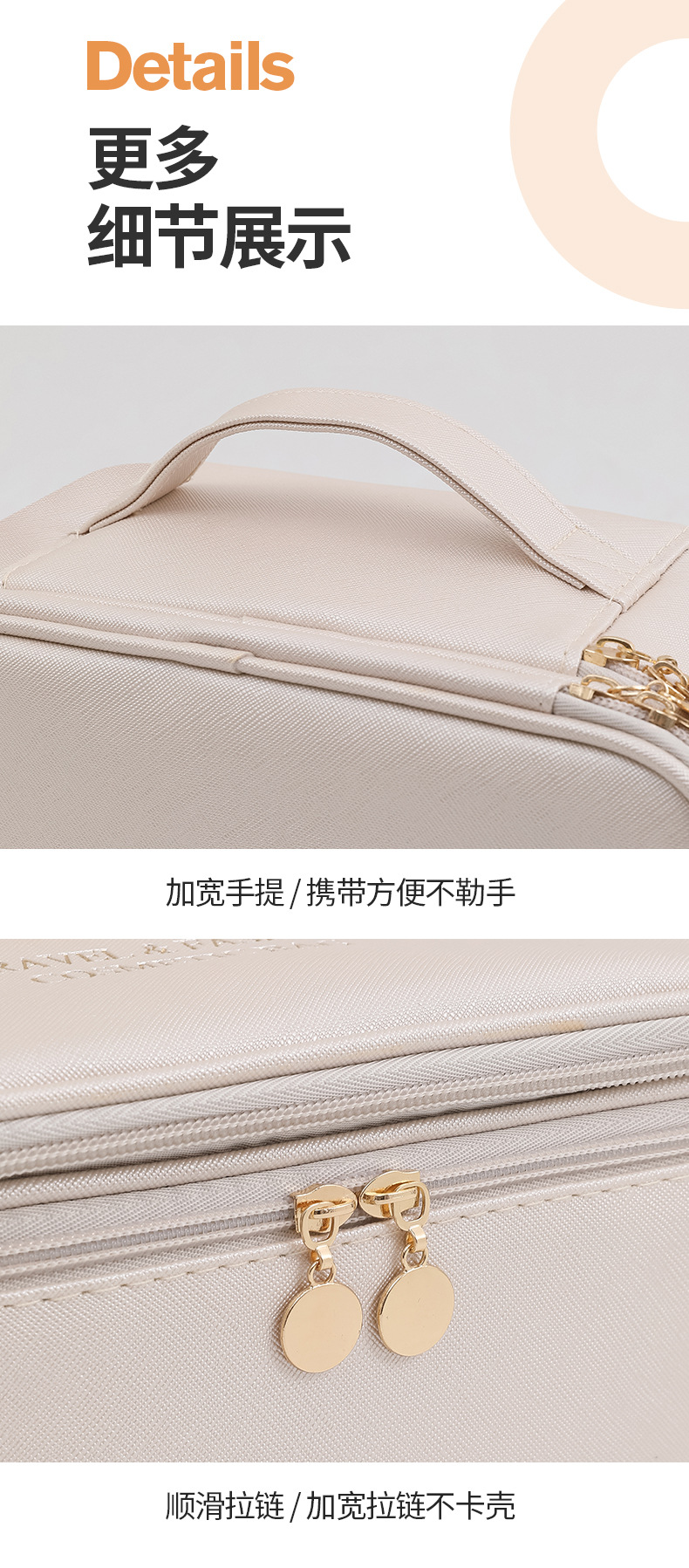 PU 가죽 메이크업 가방 여성의 휴대용 높은 수준의 대용량 더블 레이어 화장품 보관 세척 가방 설정 로고