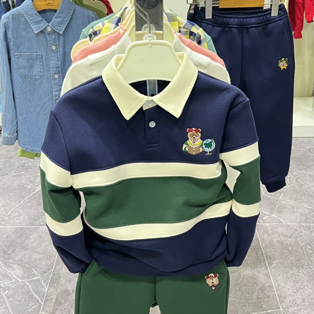 리틀 베어 아동복 2023 가을과 겨울 리틀 베어 아동복 소년 캐주얼 기모 컬러 매칭 스웨터 티셔츠 지원 원피스 배달스토어 가기