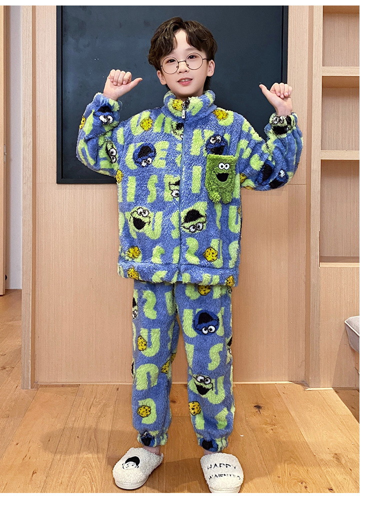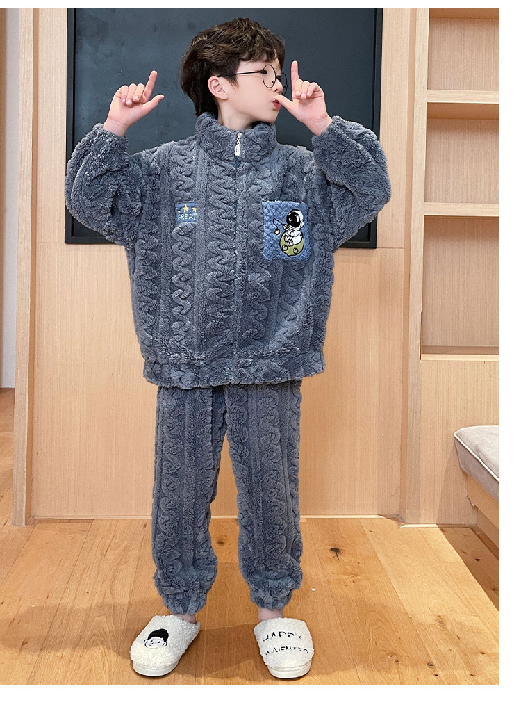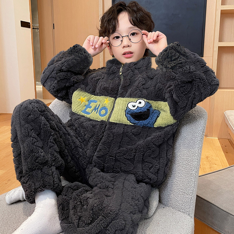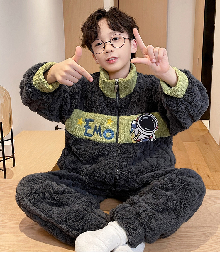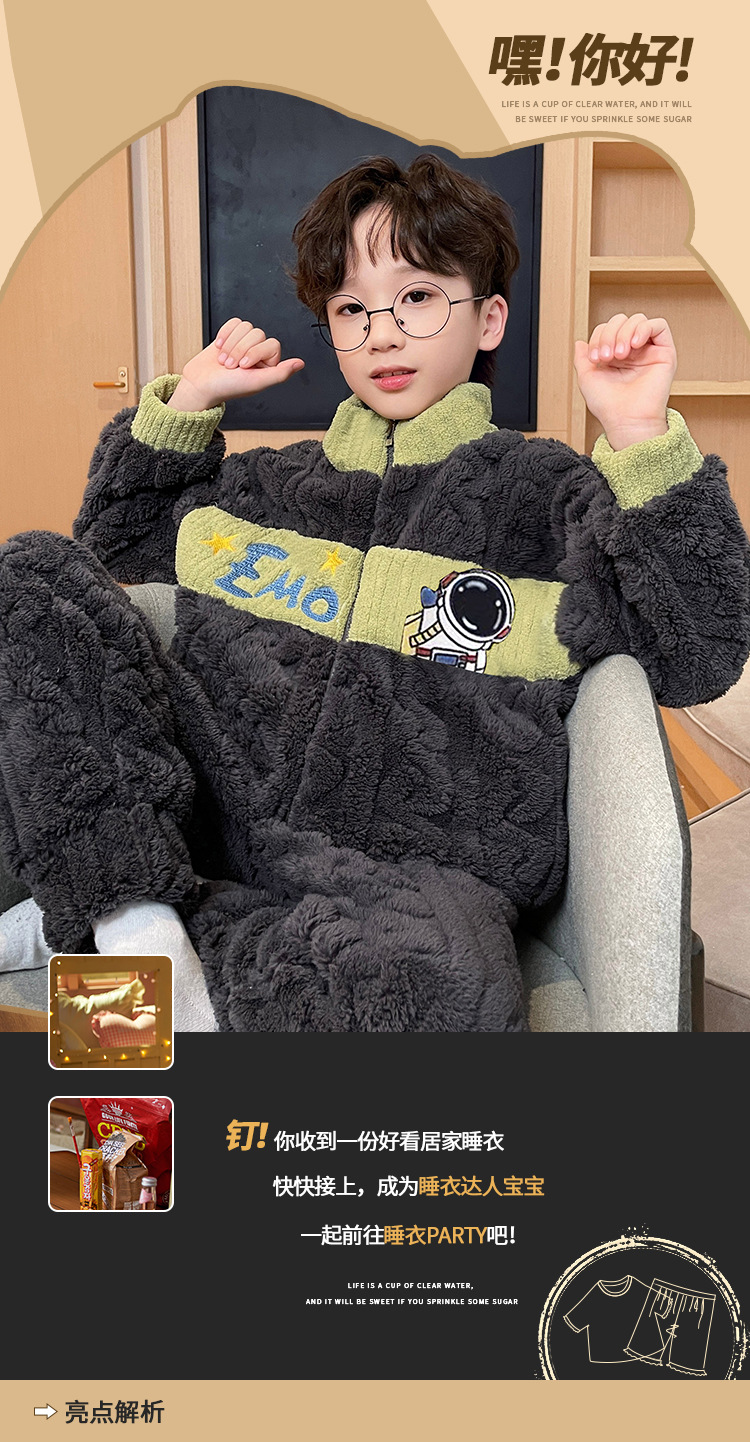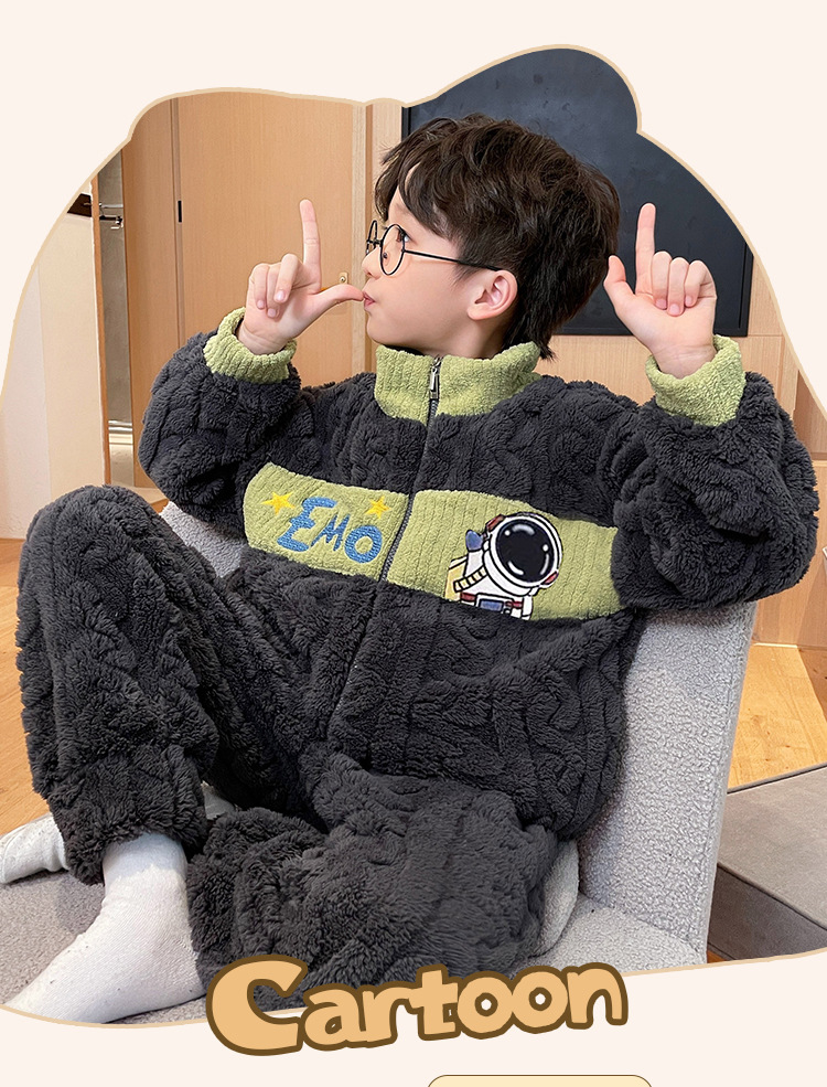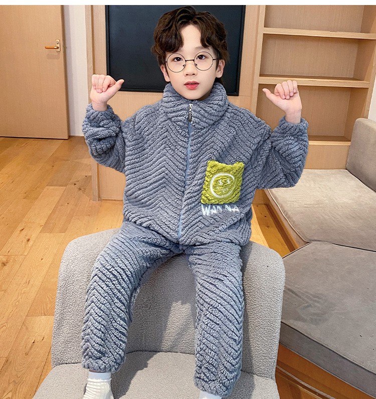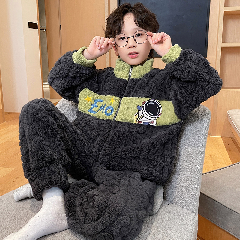 겨울 어린이 잠옷 소년의 산호 양털 2023 기모 두꺼운 플란넬 작은 소년의 중간 및 큰 소년의 남자 가정 옷스토어 가기