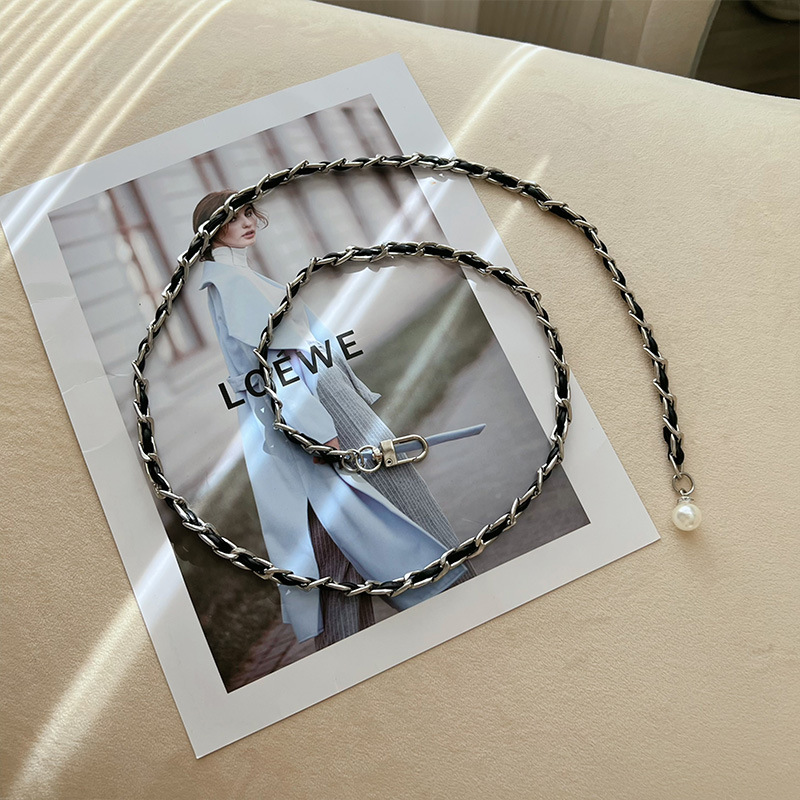 새로운 스타일 샤넬 스타일 가방 허리 체인 하이 엔드 여성용 스웨터 체인 패션 심플 올 매치 벨트 트렌디 블랙