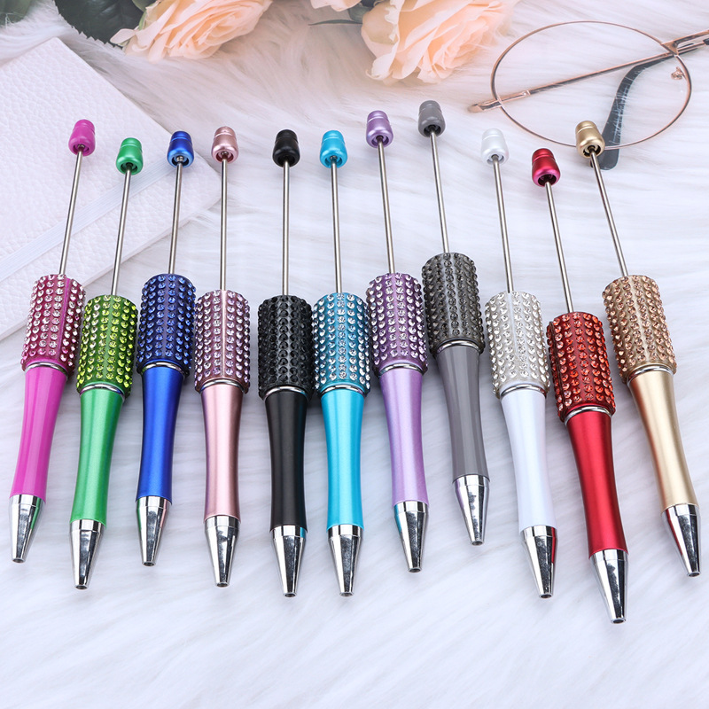 다이아몬드 비즈펜 도매 DIY 플라스틱 교육용 펜 볼펜 핑크 다이아몬드 비즈펜 특허 디자인 볼펜