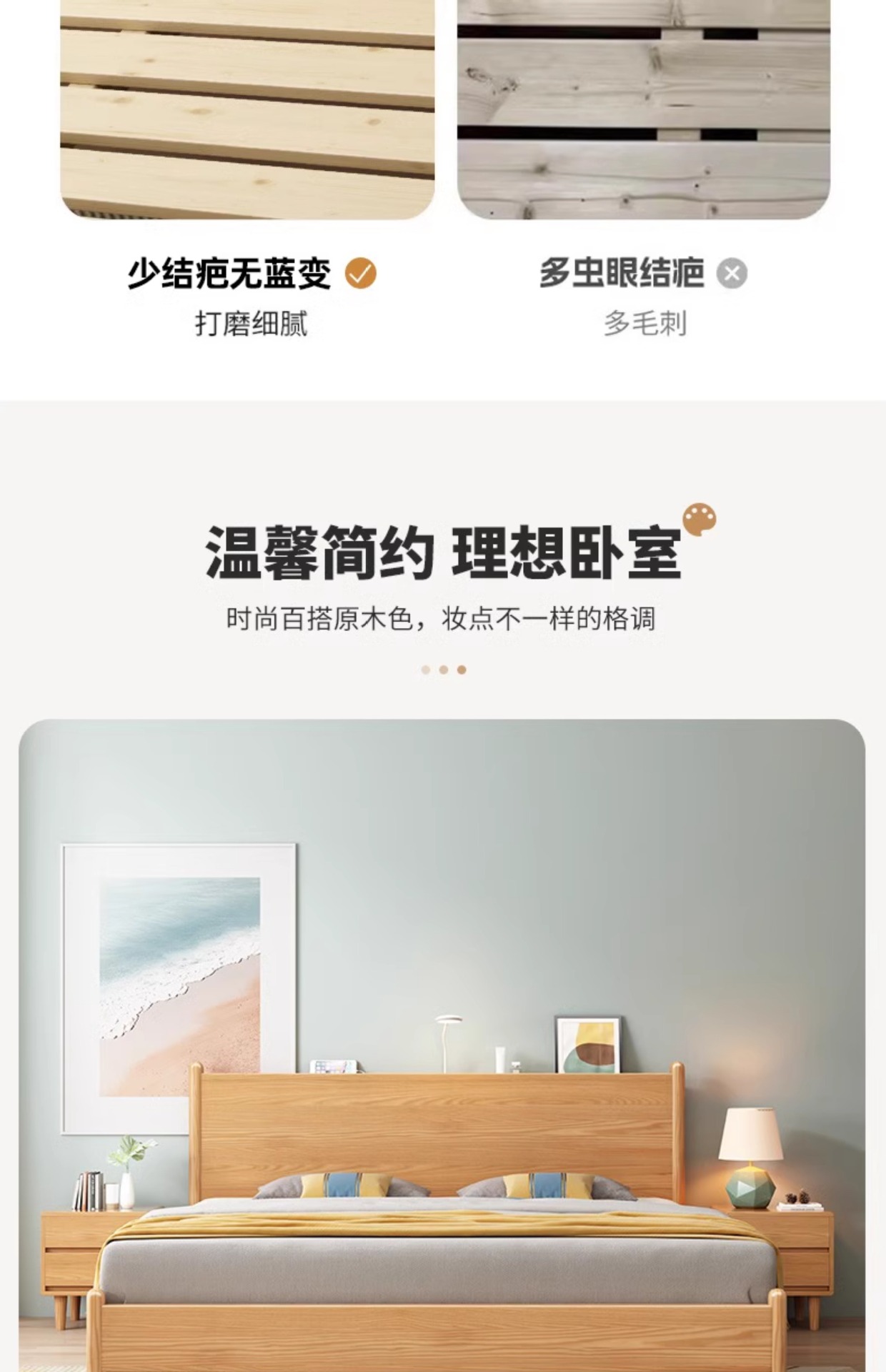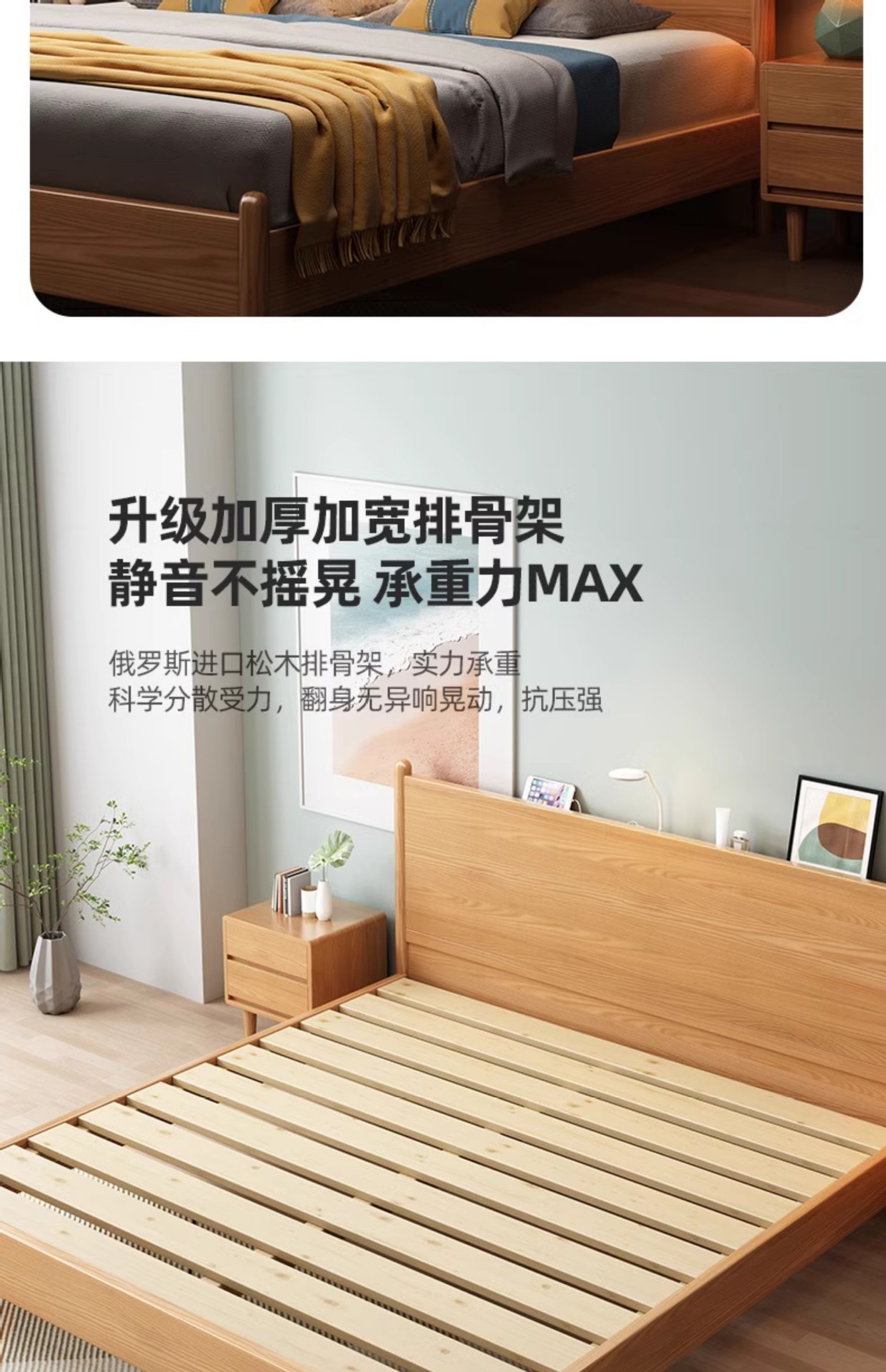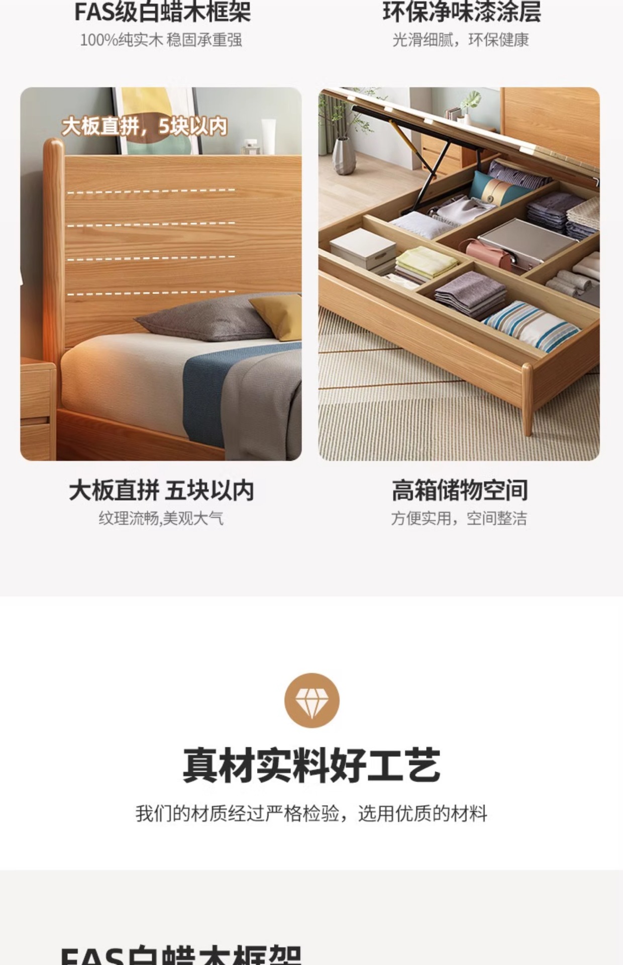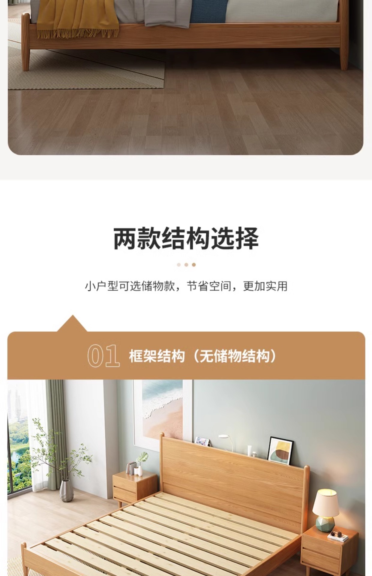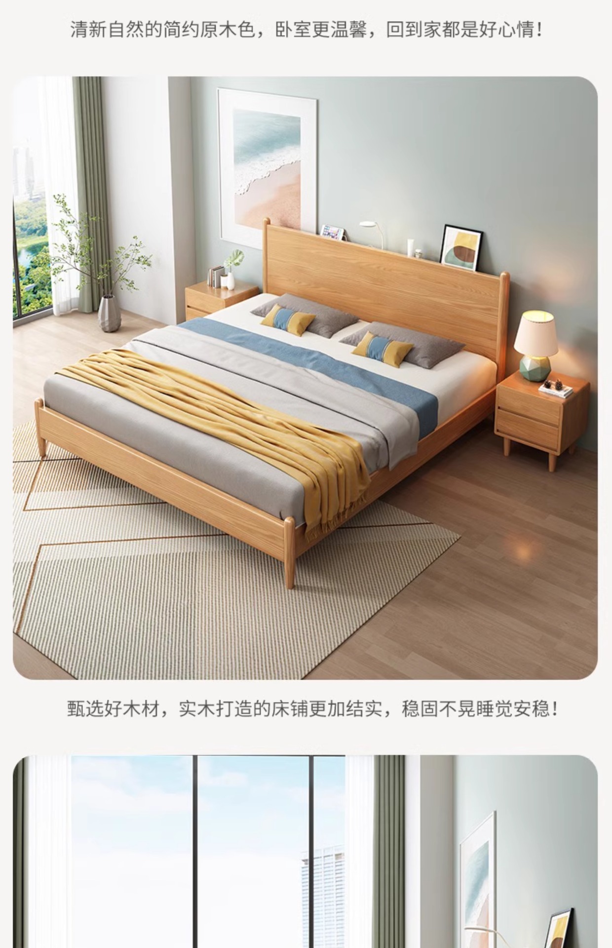 북유럽 재 단단한 나무 침대 현대 미니멀 한 1.8 m 마스터 침실 더블 침대 1.5 m 싱글 침대 작은 아파트 가구스토어 가기
