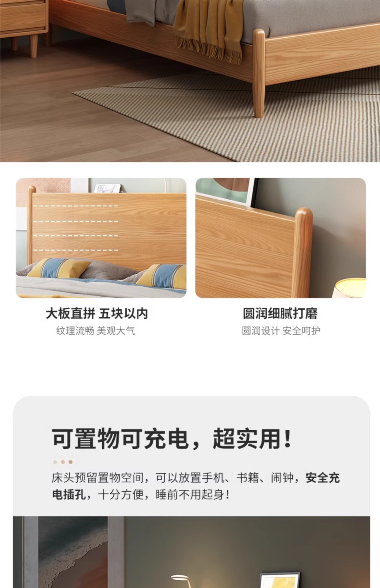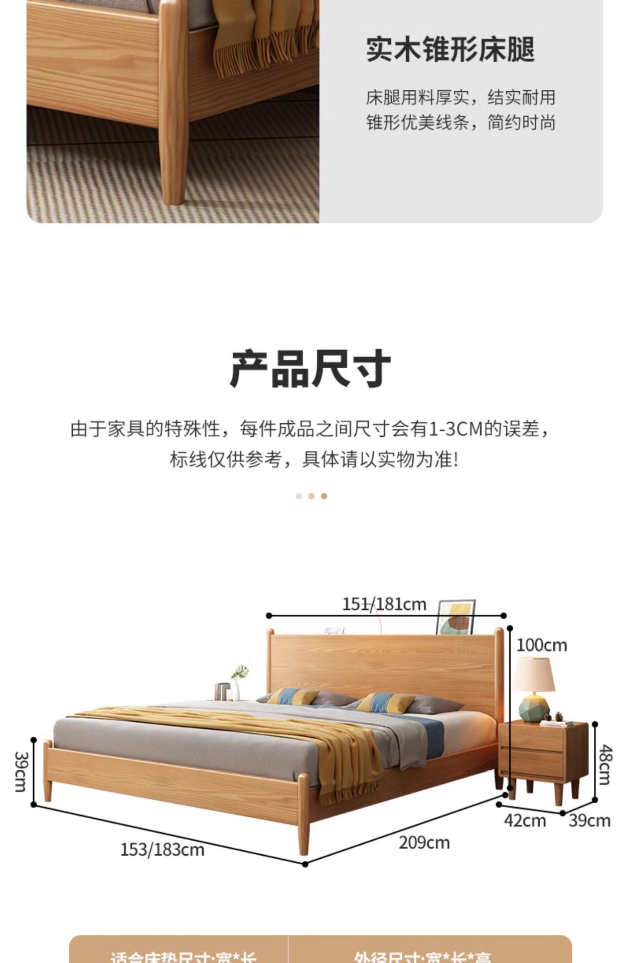 북유럽 재 단단한 나무 침대 현대 미니멀 한 1.8 m 마스터 침실 더블 침대 1.5 m 싱글 침대 작은 아파트 가구