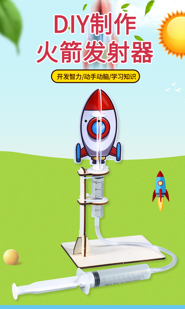 초등학교 학생 창조적 인 기술 발명 작은 생산 공기 로켓 발사기 수제 DIY 장난감 과학 작은 실험스토어 가기