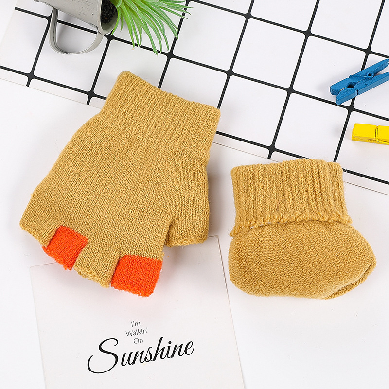 어린이 플립 장갑 겨울 반 손가락 두껍게 만든 남자 초등학생 냉증 다섯 손가락 가운데 큰 아이 여성 따뜻한 귀여운 쓰기