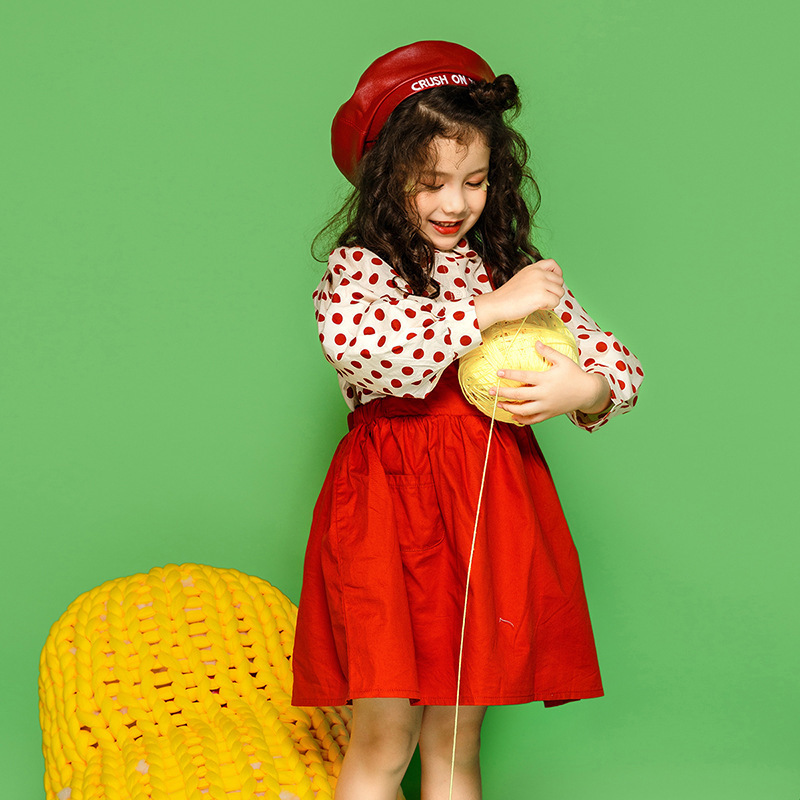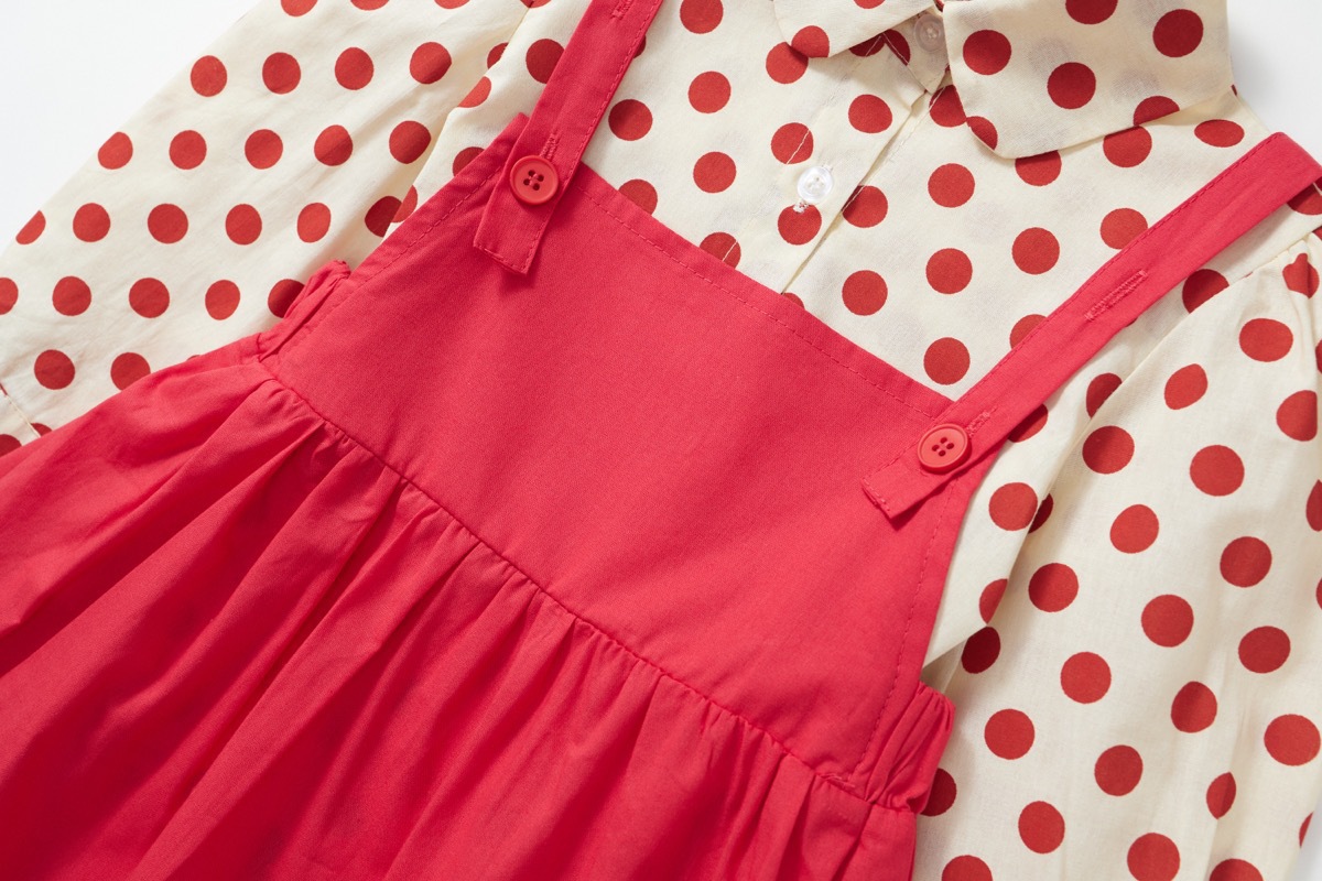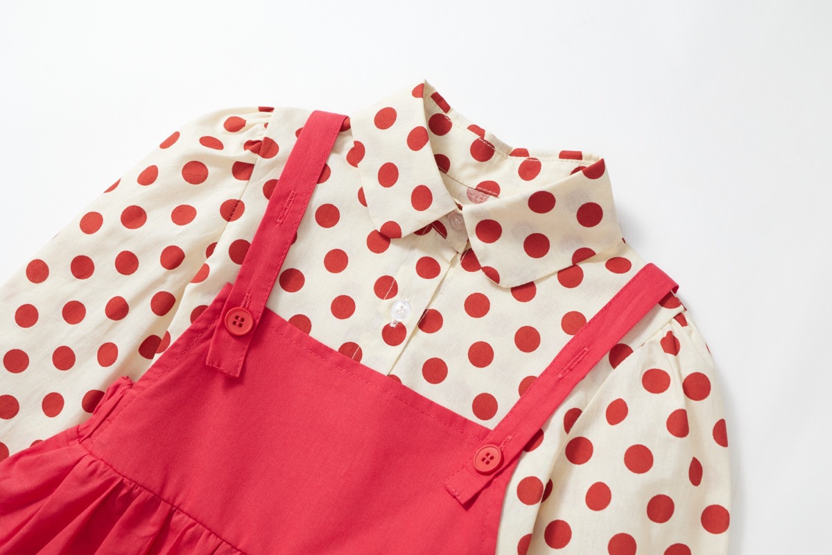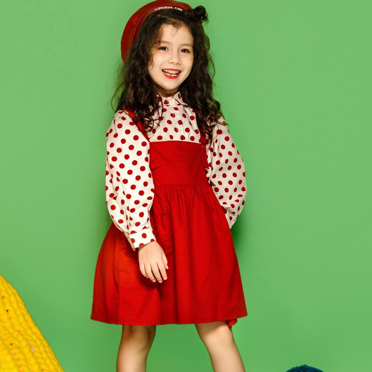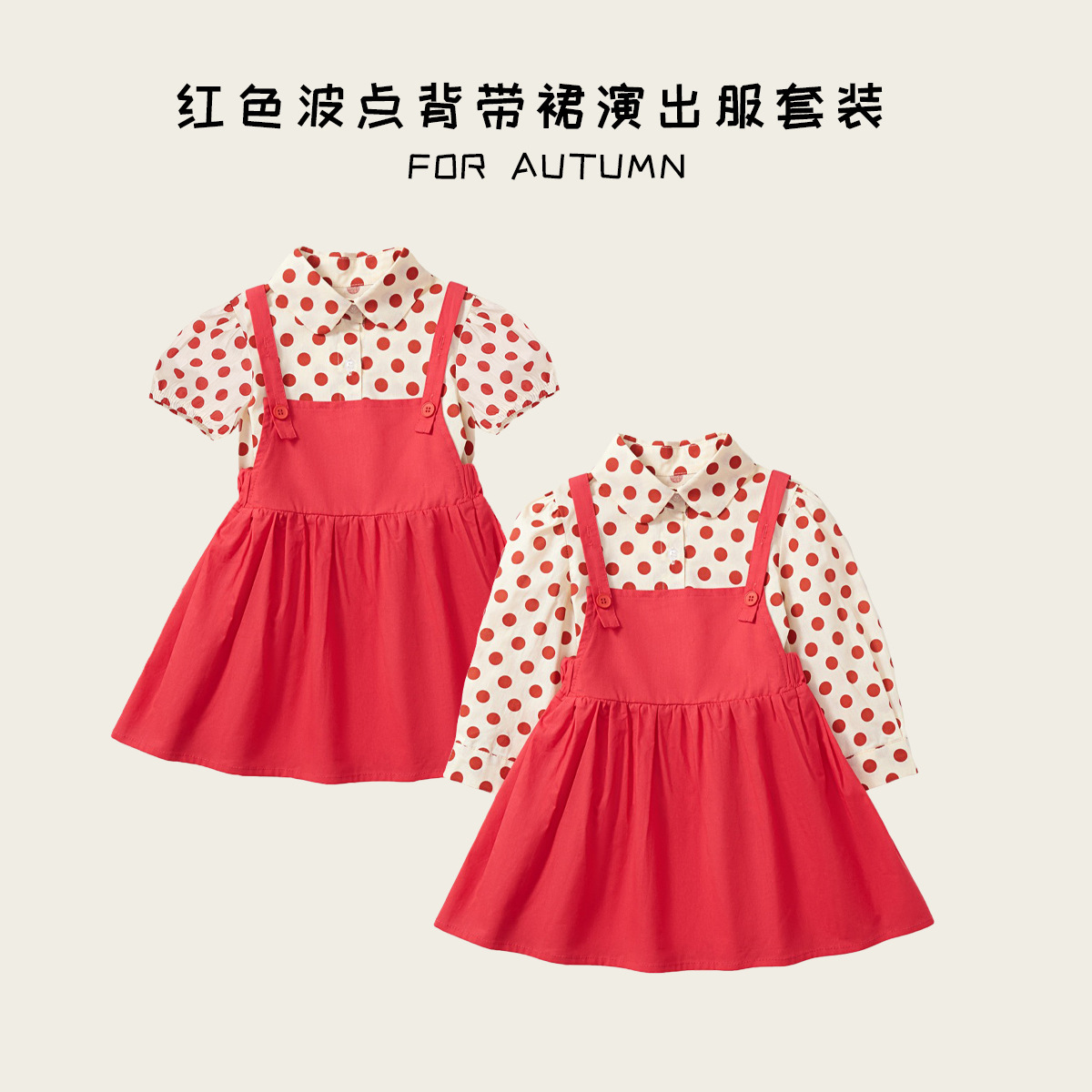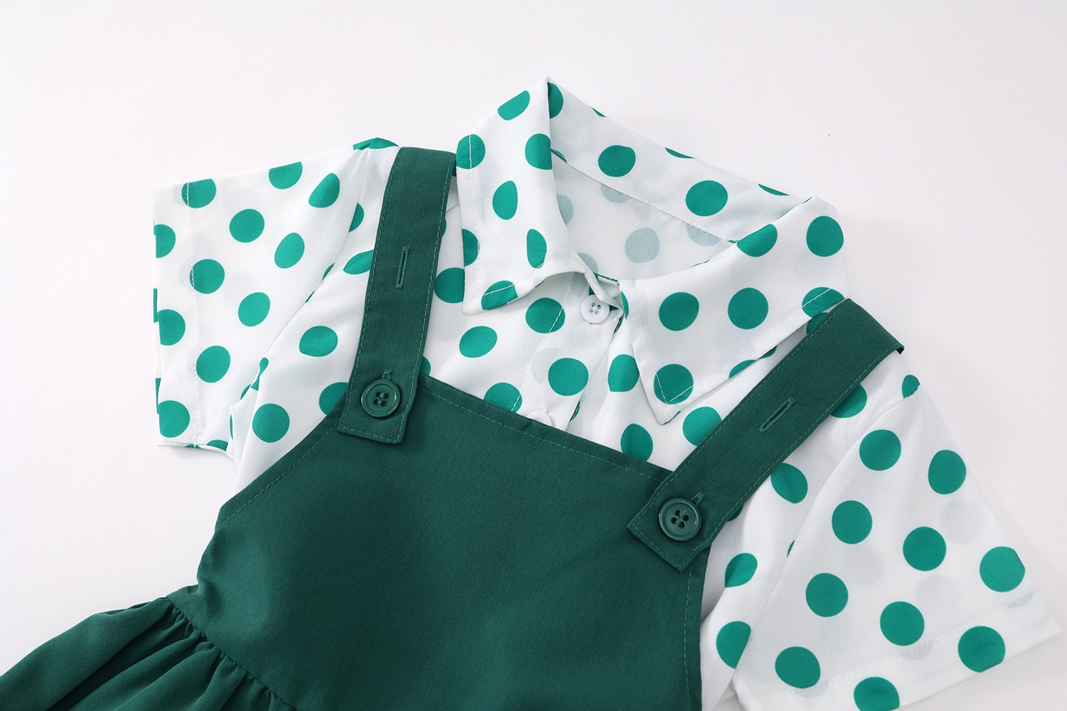 여아 서스펜더 스커트 정장 2025 봄 여름 한국식 대학 스타일 도트 셔츠 투피스 퍼포먼스 슈트스토어 가기