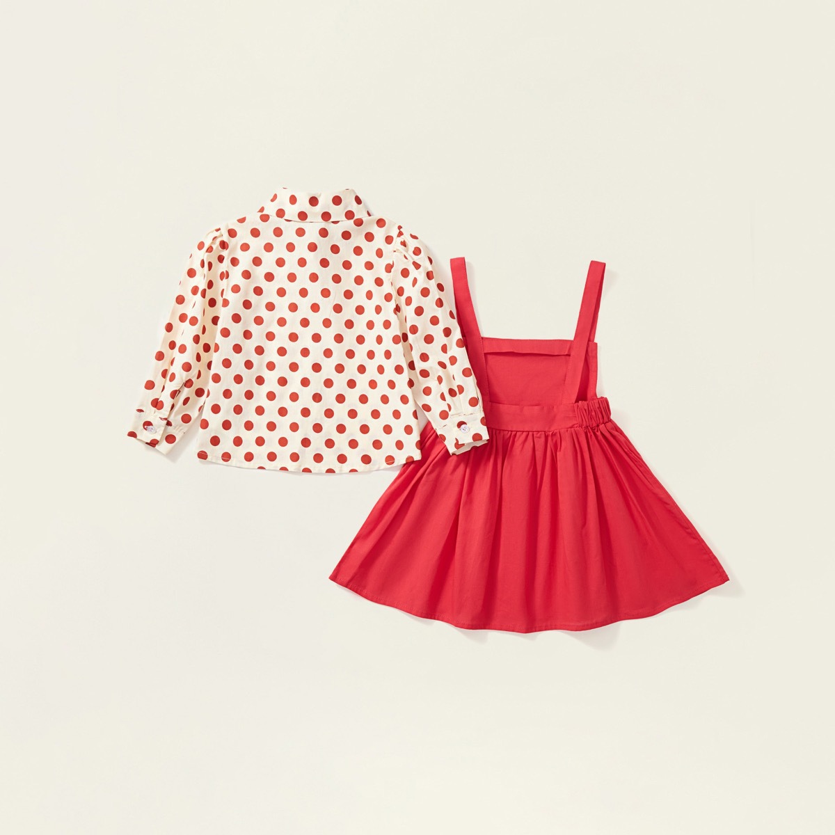 여아 서스펜더 스커트 정장 2025 봄 여름 한국식 대학 스타일 도트 셔츠 투피스 퍼포먼스 슈트