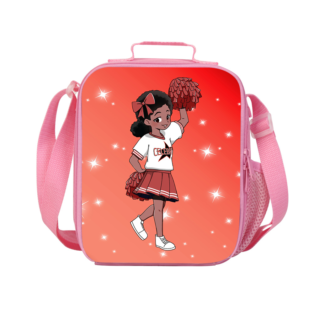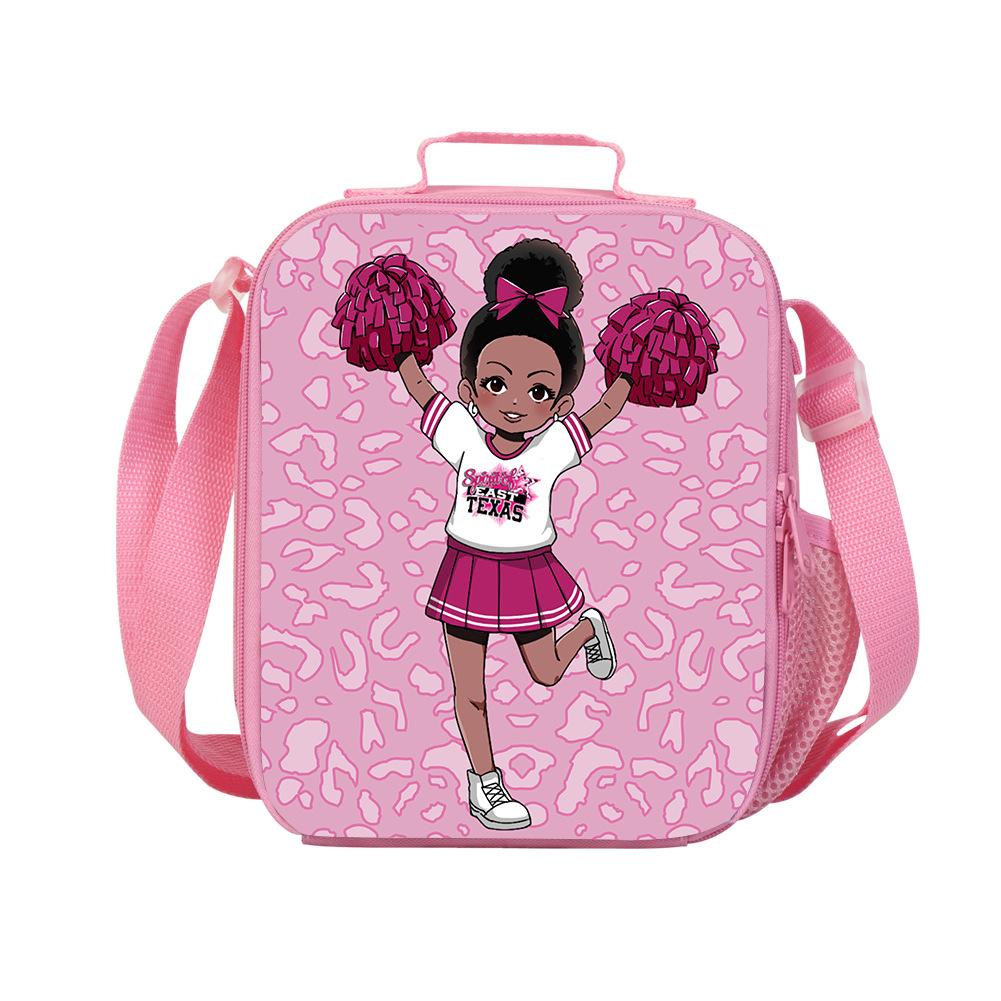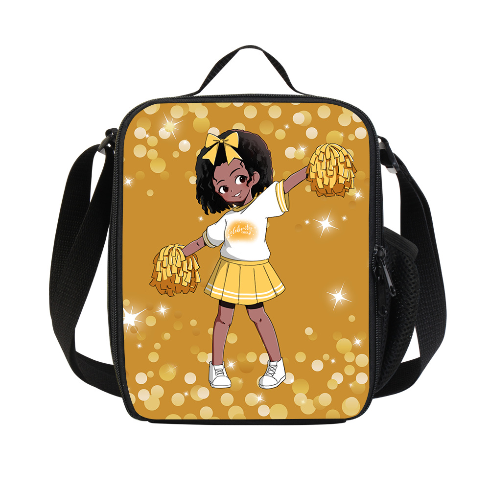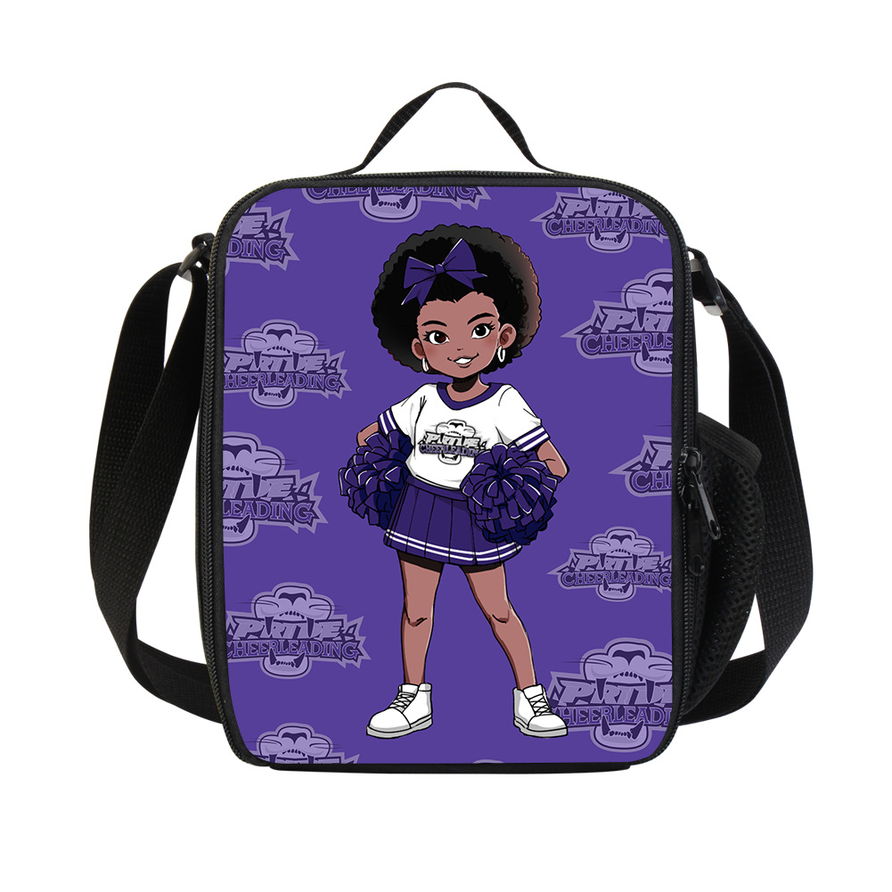 学生竖版斜挎午餐包 跨境黑发女孩啦啦队元素便当包单肩野餐收纳包