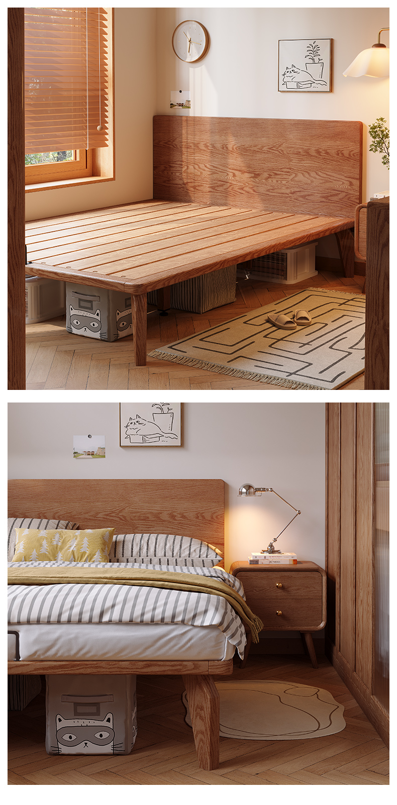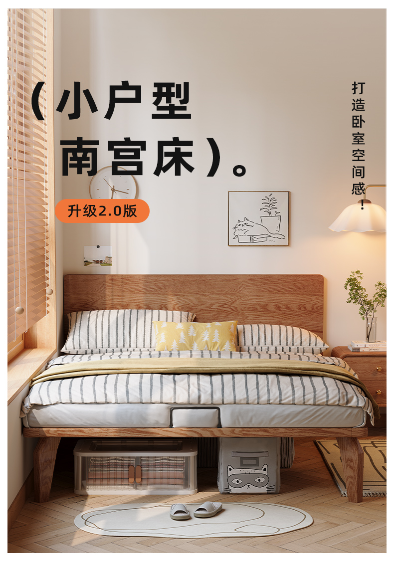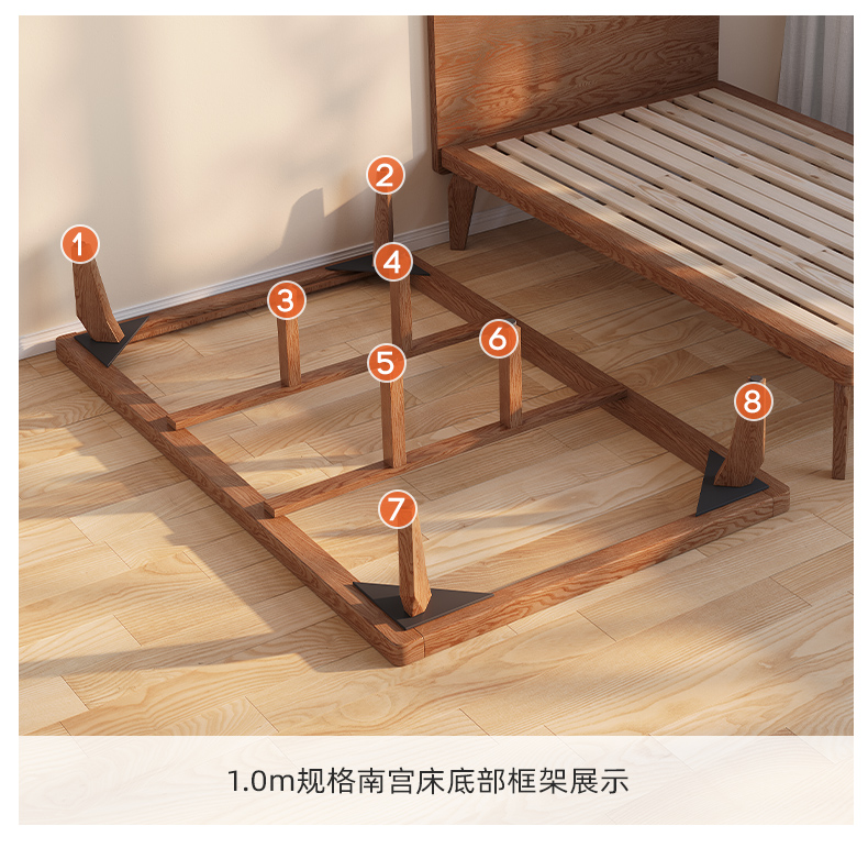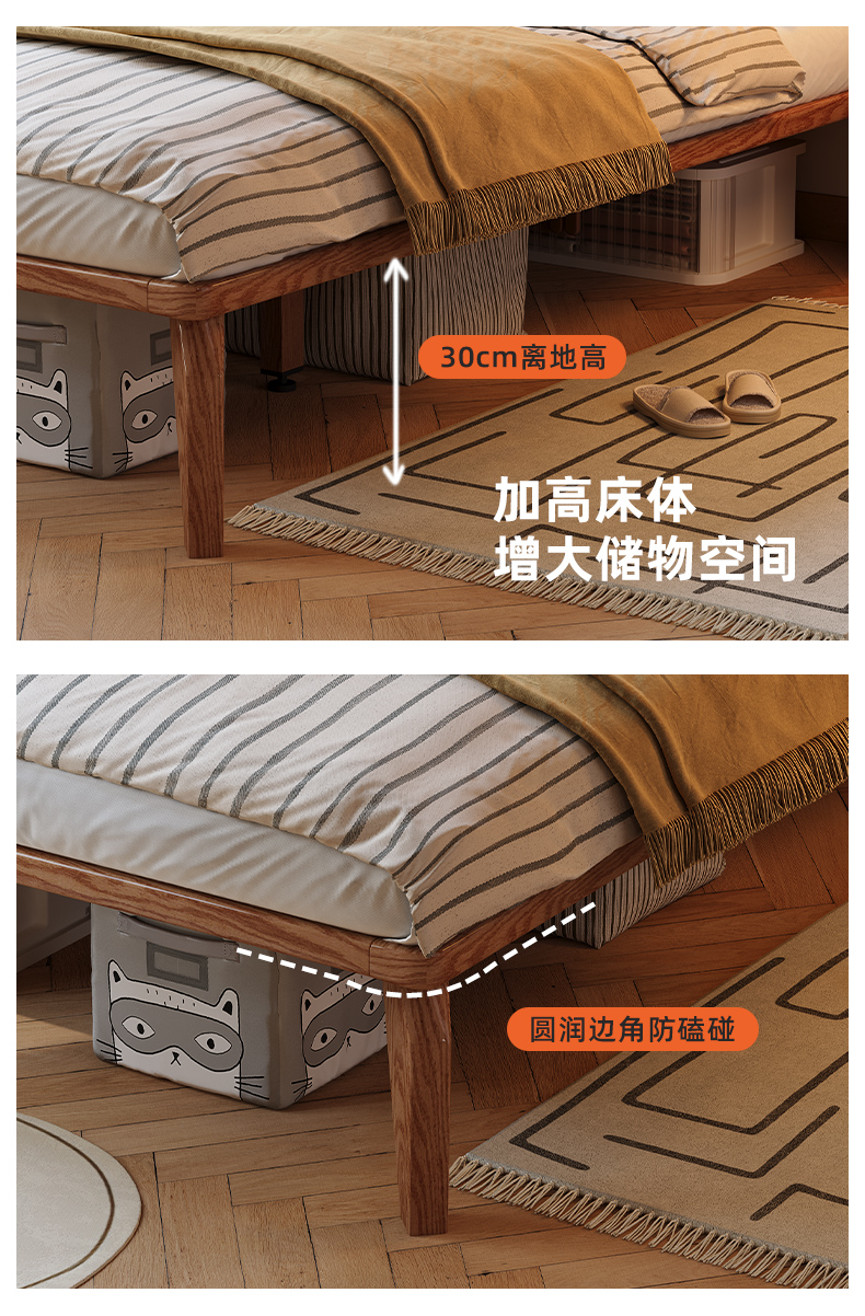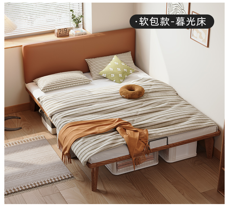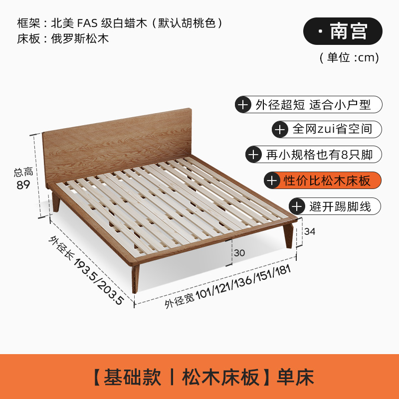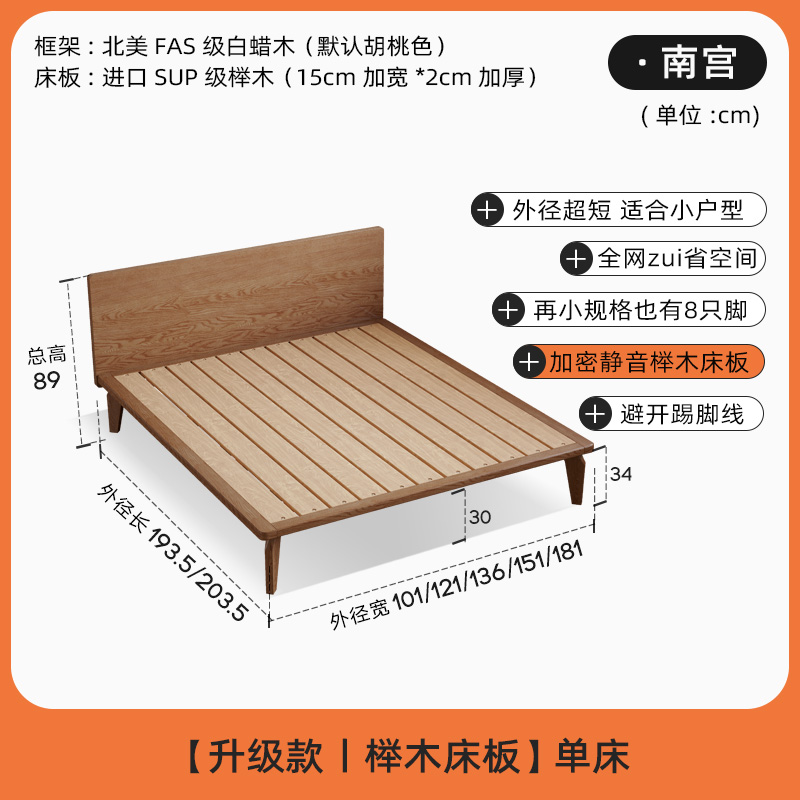얇은 침대 옆 단단한 나무 침대 높은 발 호두 컬러 침대 작은 아파트 두 번째 침실 객실 홈 1.5m 싱글 더블 침대스토어 가기