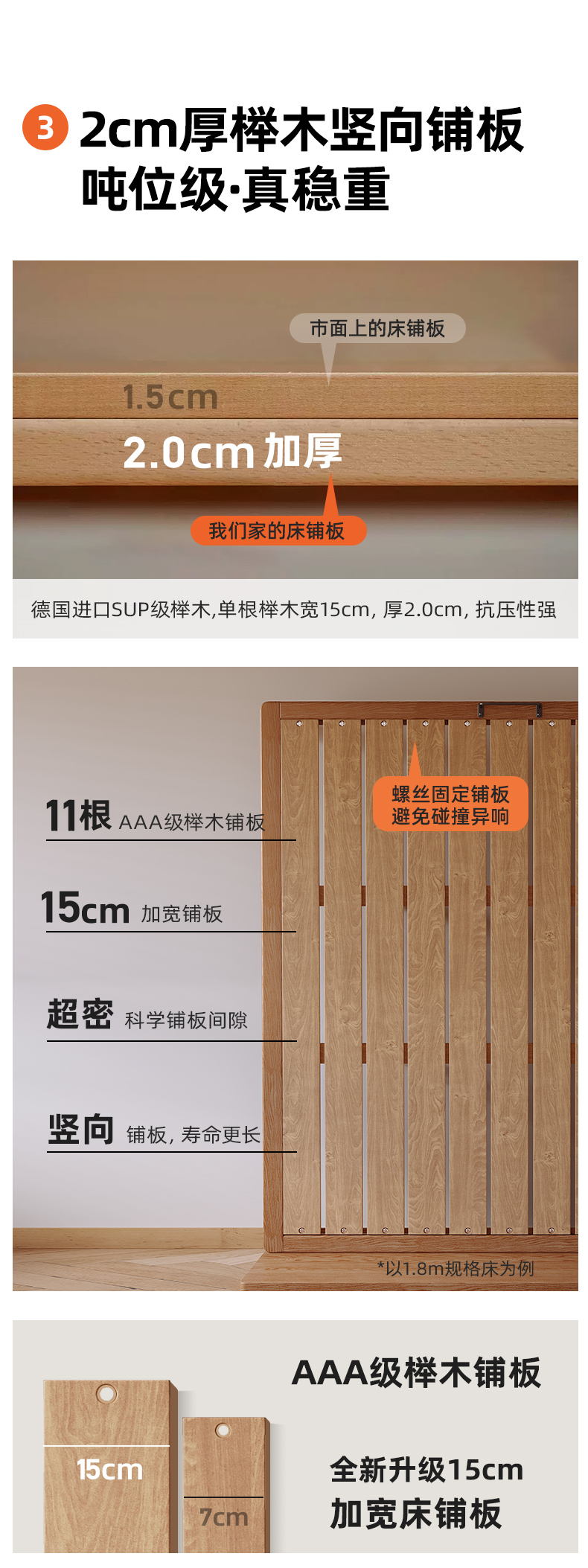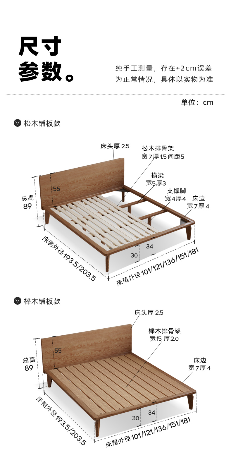 • [호두 색상] 침대 + 8cm 코코넛 야자 매트리스 (너도밤 나무 보드)