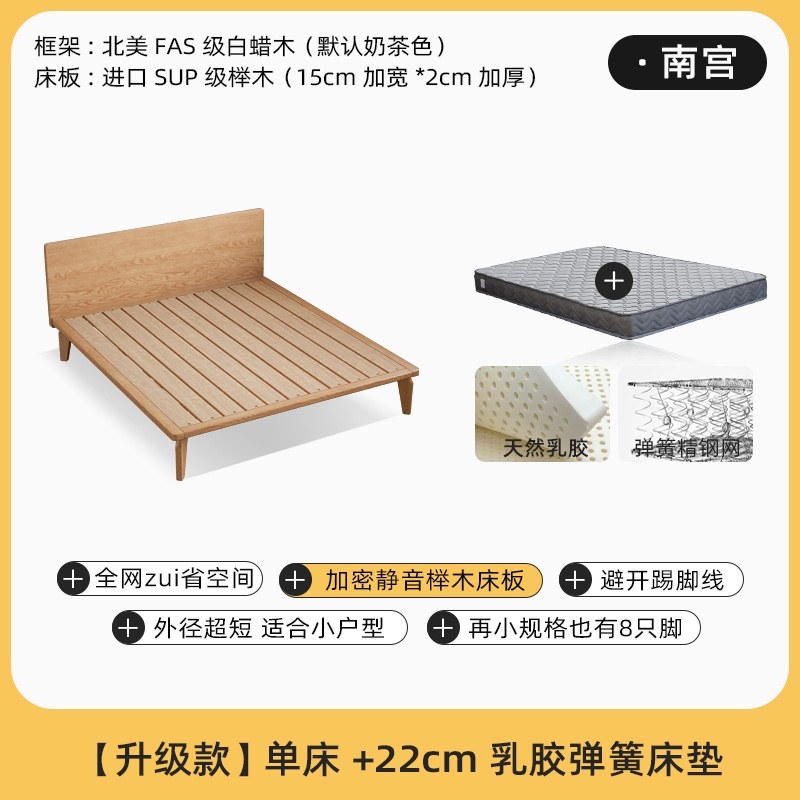 • [밀크 티 컬러] 침대 + 22cm 라텍스 매트리스 (너도밤 나무 보드)