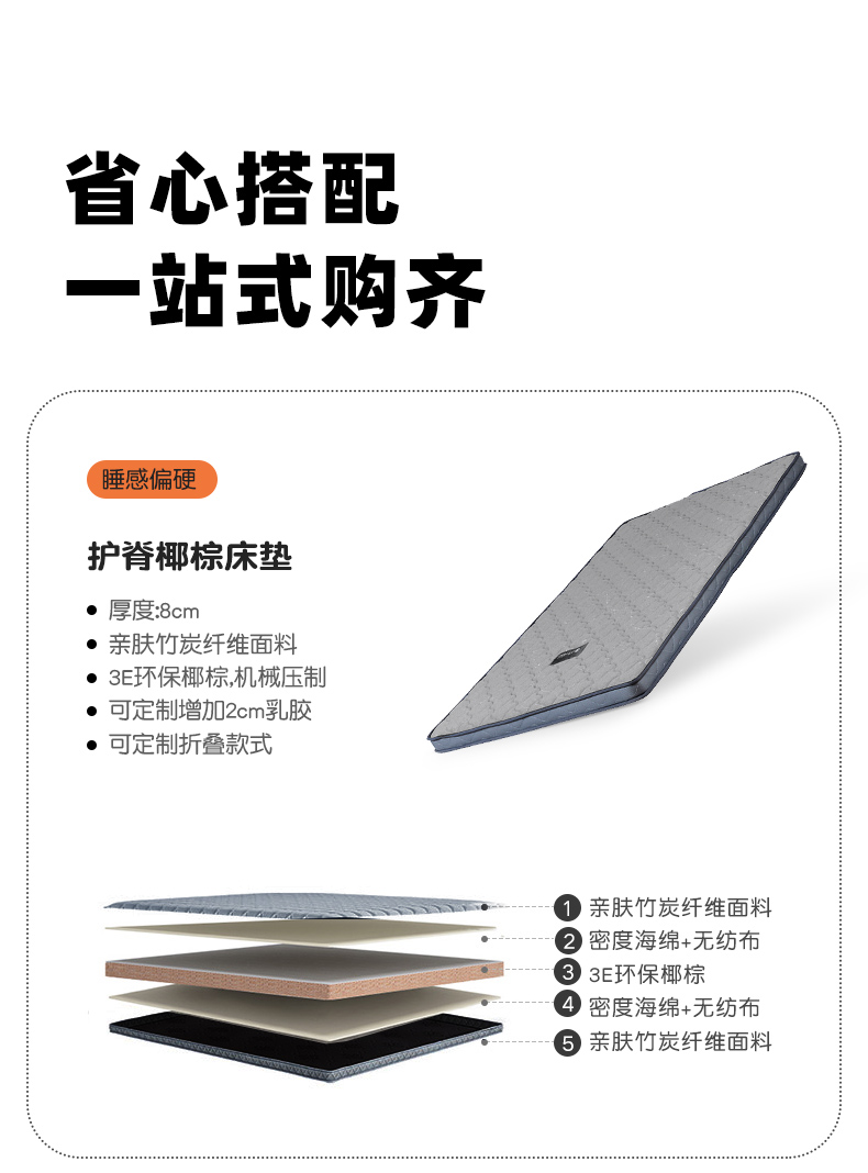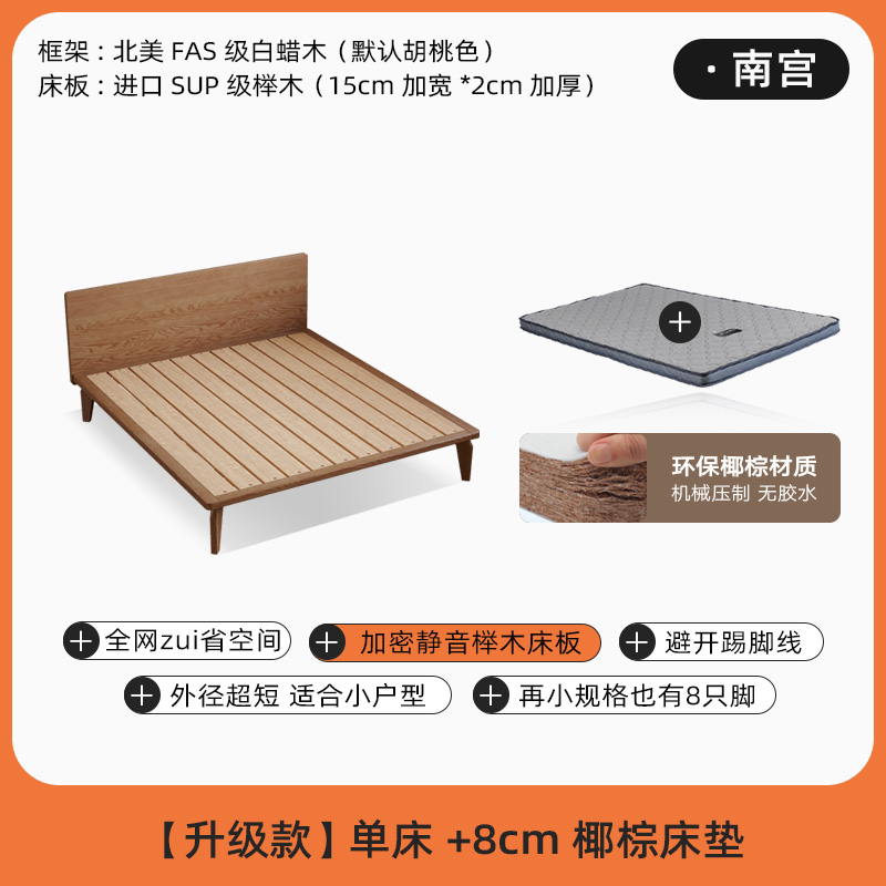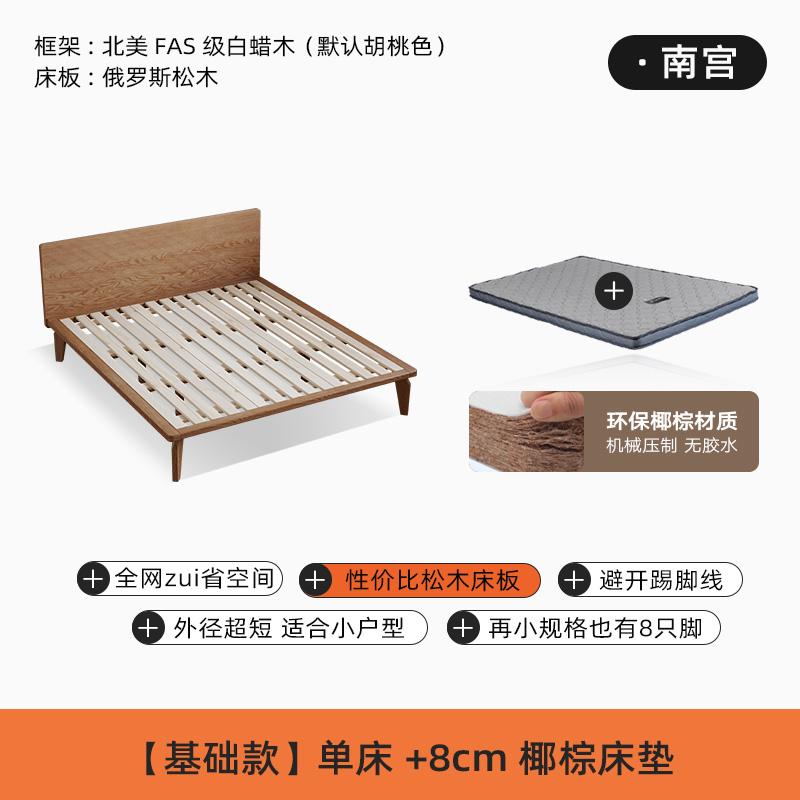 • [호두 색상] 침대 + 8cm 코코넛 야자 매트리스 (소나무 보드)