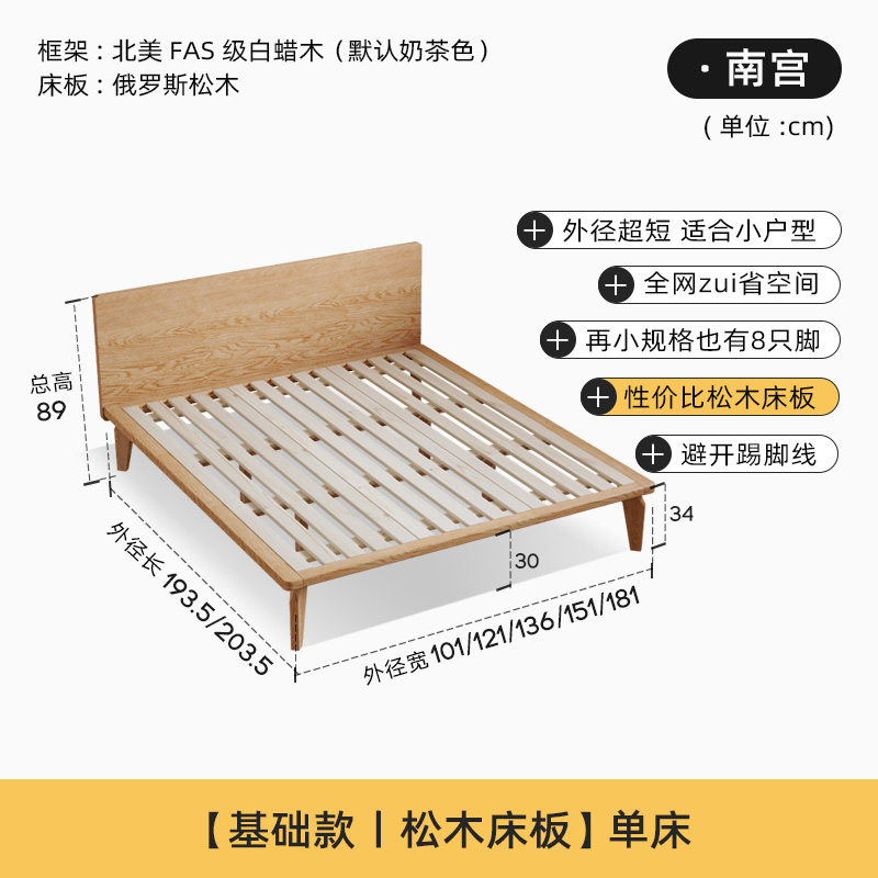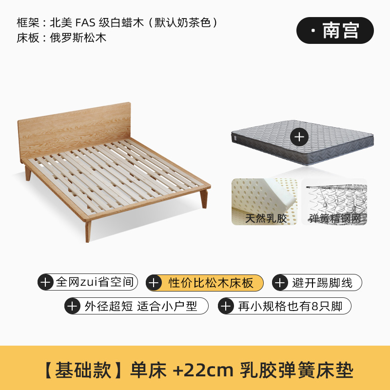• [밀크 티 컬러] 침대 + 22cm 라텍스 매트리스 (소나무 보드)
