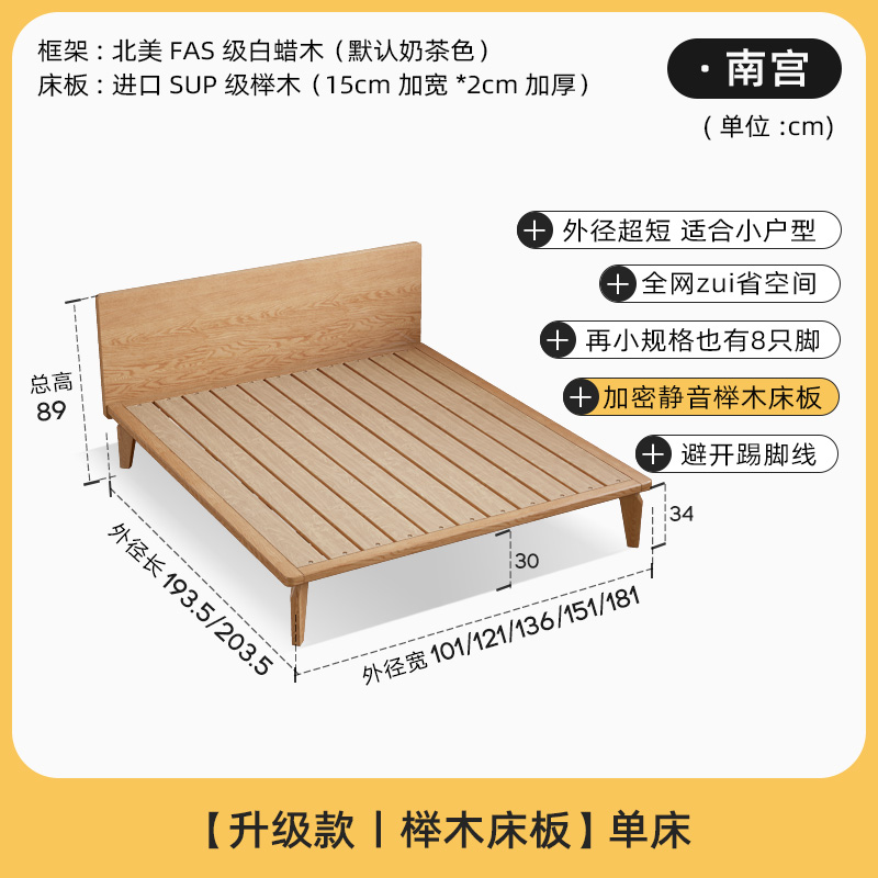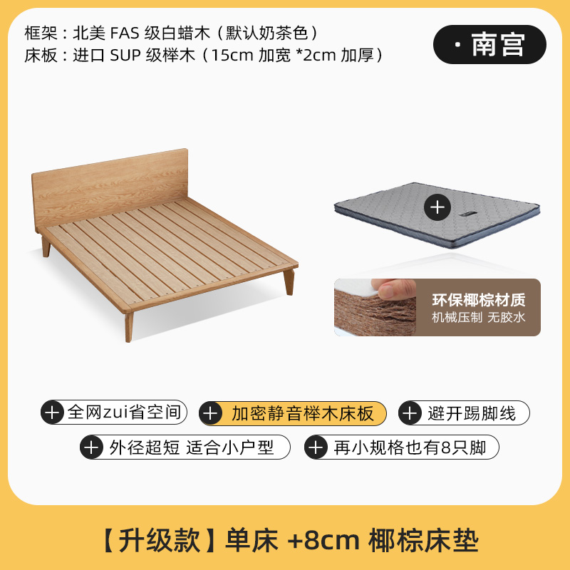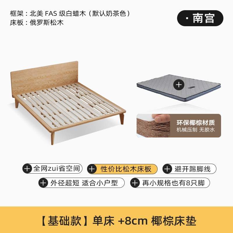 • [밀크 티 컬러] 침대 + 8cm 코코넛 팜 매트리스 (너도밤 나무 보드)
