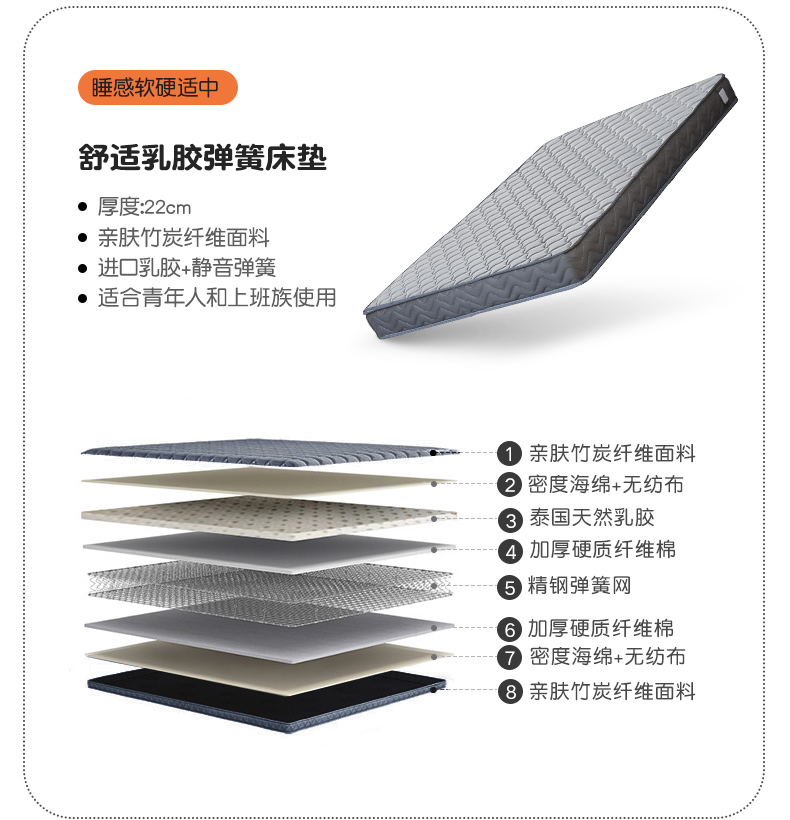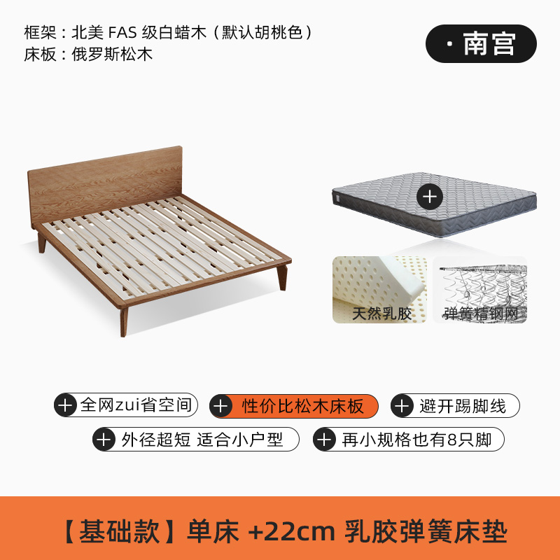 • [호두 색상] 침대 + 22cm 라텍스 매트리스 (소나무 보드)