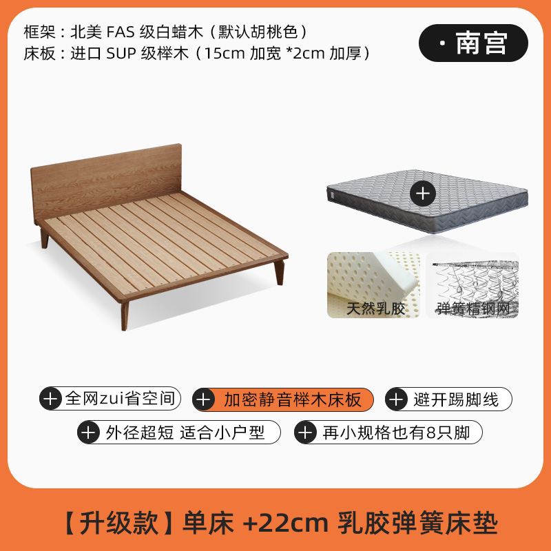• [호두 색상] 침대 + 22cm 라텍스 매트리스 (너도밤 나무 보드)