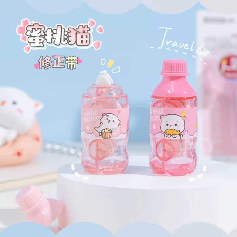 Tiangao 복숭아 고양이 수정 테이프 창조적 인 콜라 소다 병 테이프 만화 귀여운 수정 테이프 미니 수정 테이프스토어 가기
