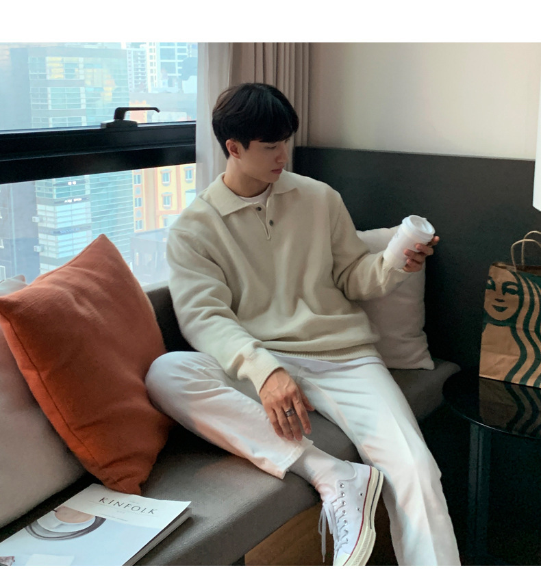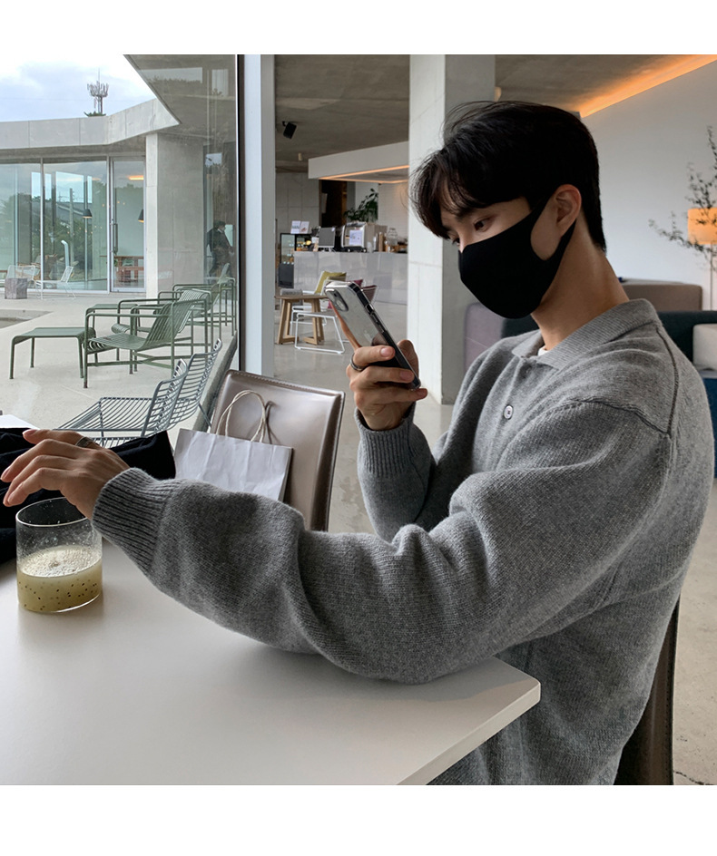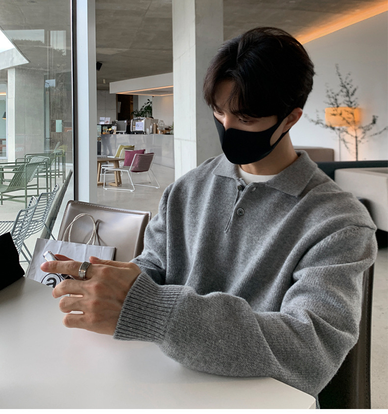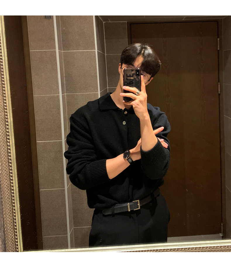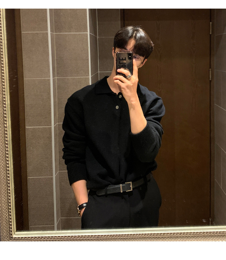 라펠 폴로 셔츠 스웨터 남성용 루즈한 한국식 패셔너블한 잘생긴 만능 솔리드 컬러 베이스 니트 탑 재킷스토어 가기