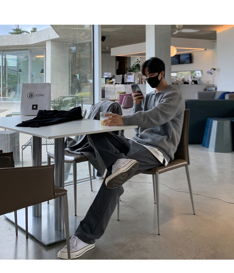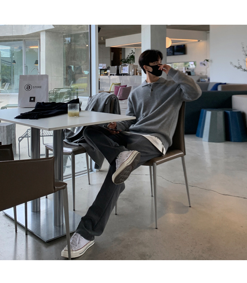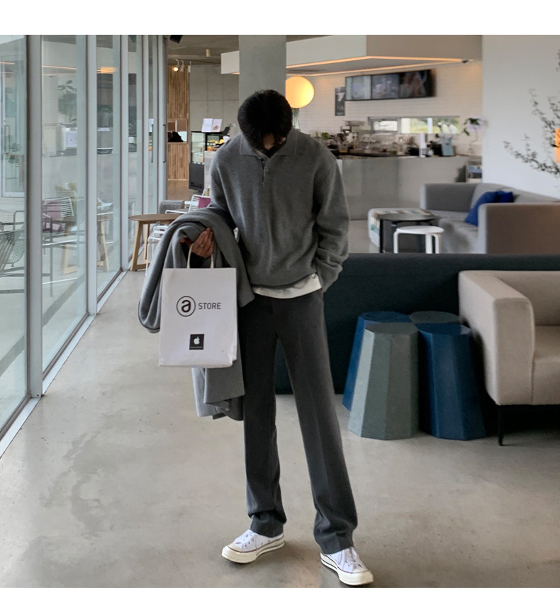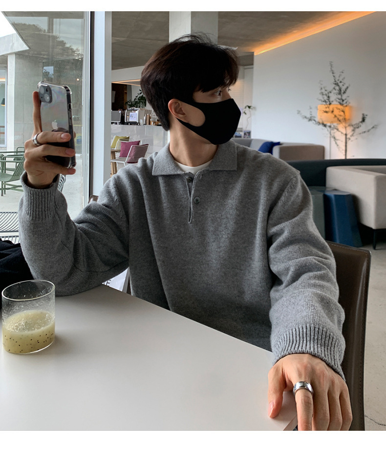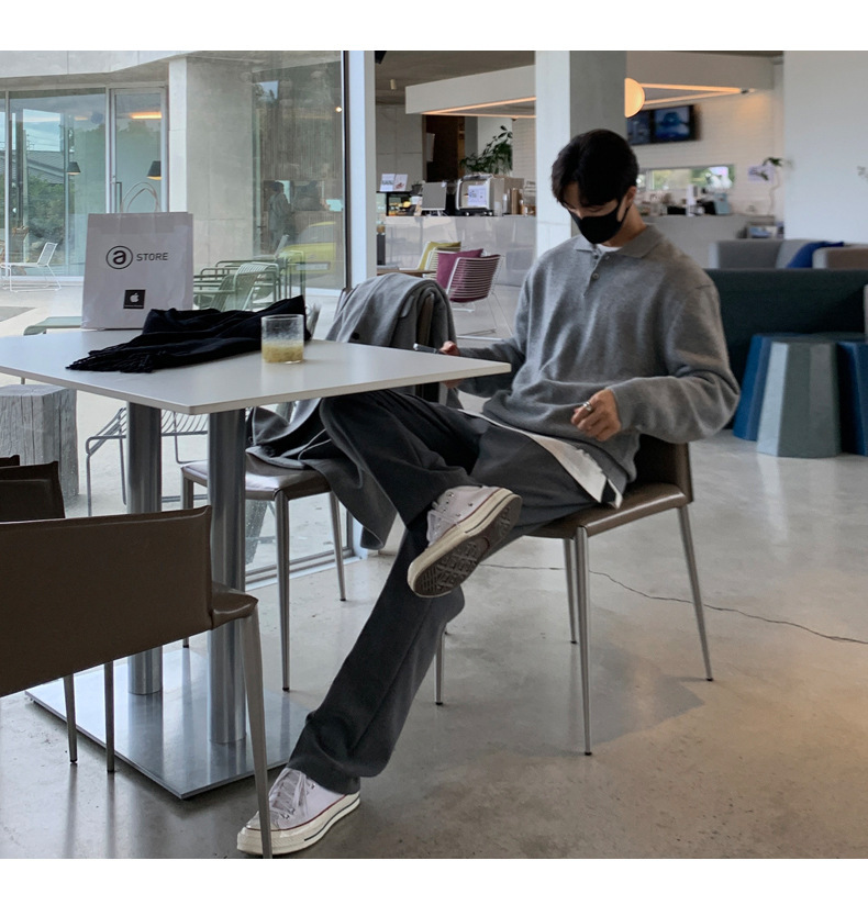 라펠 폴로 셔츠 스웨터 남성용 루즈한 한국식 패셔너블한 잘생긴 만능 솔리드 컬러 베이스 니트 탑 재킷스토어 가기