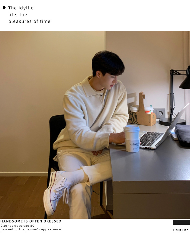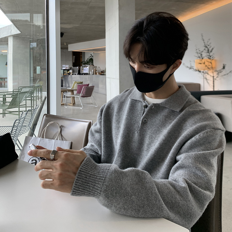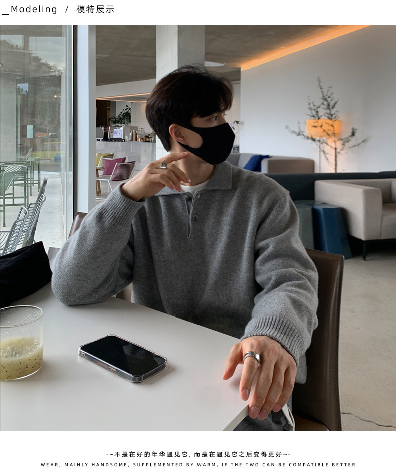 라펠 폴로 셔츠 스웨터 남성용 루즈한 한국식 패셔너블한 잘생긴 만능 솔리드 컬러 베이스 니트 탑 재킷
