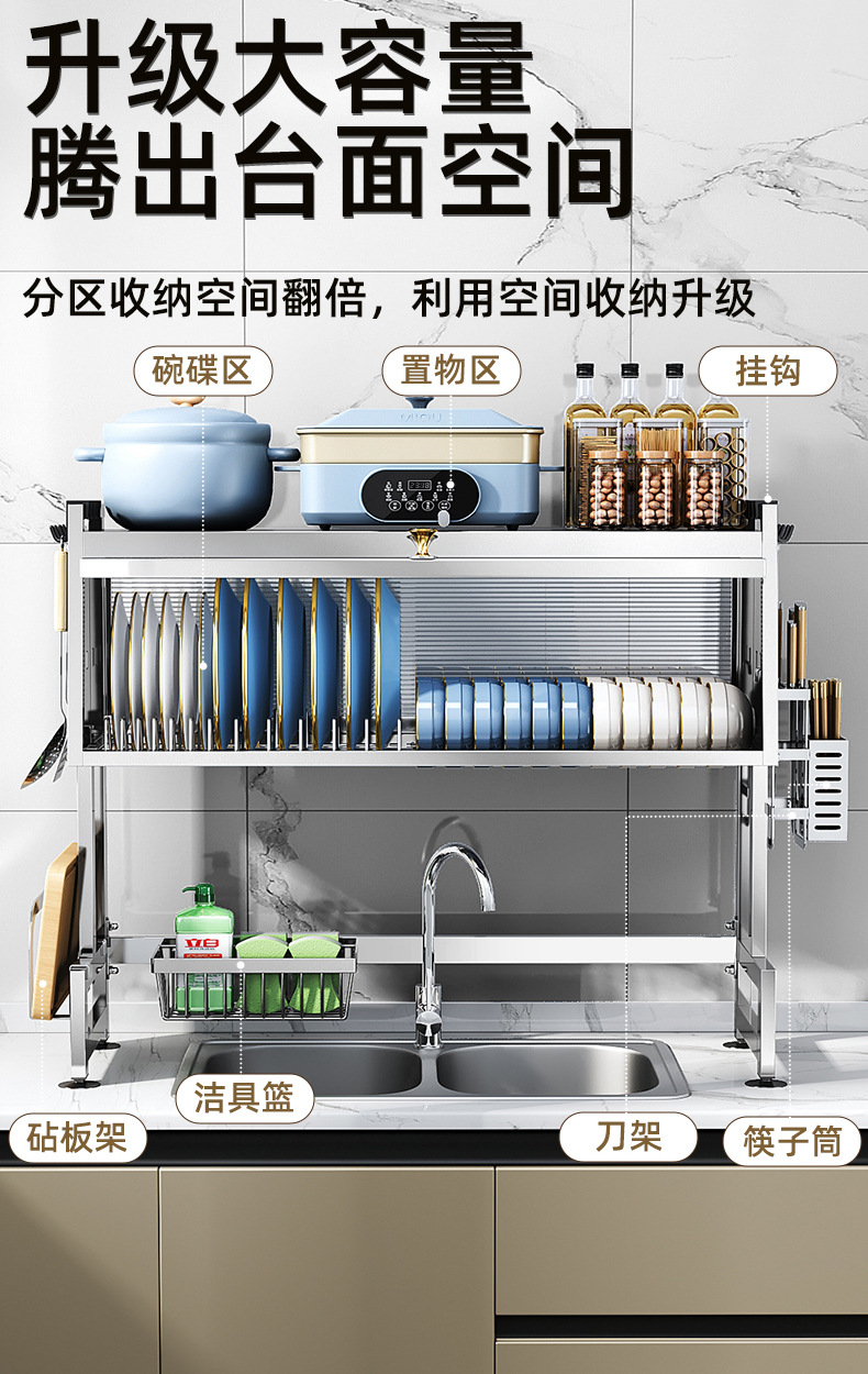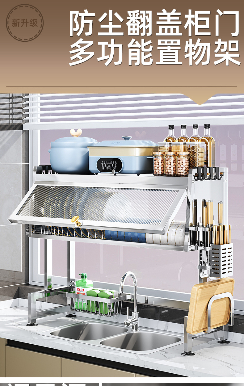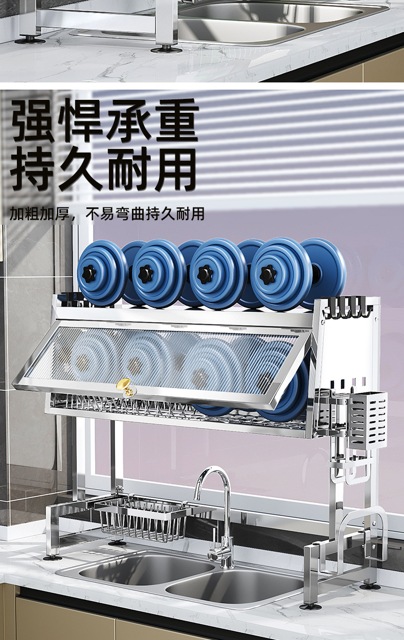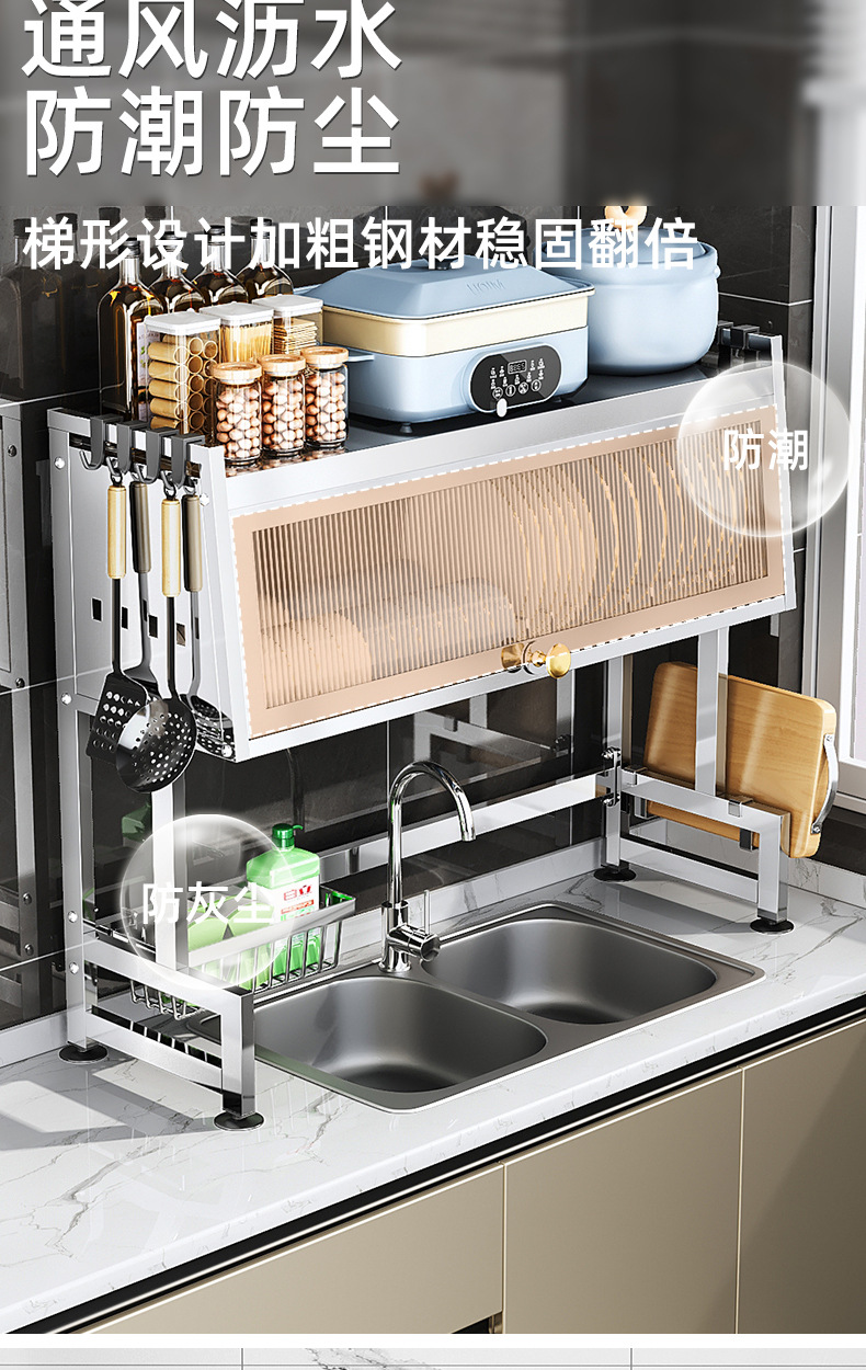 주방 싱크 스토리지 랙 스테인레스 스틸 배수 랙 다기능 카운터 탑 접시 스토리지 랙 가정용 방진 싱크 캐비닛스토어 가기