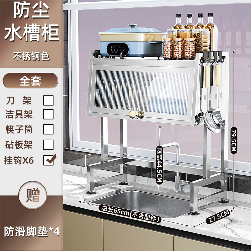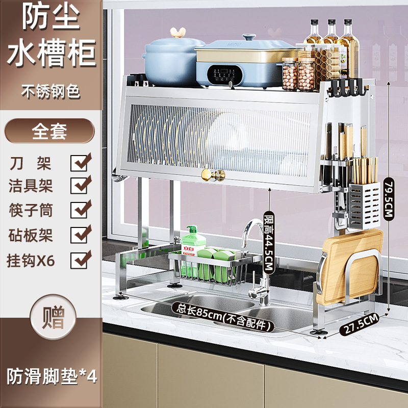 주방 싱크 스토리지 랙 스테인레스 스틸 배수 랙 다기능 카운터 탑 접시 스토리지 랙 가정용 방진 싱크 캐비닛