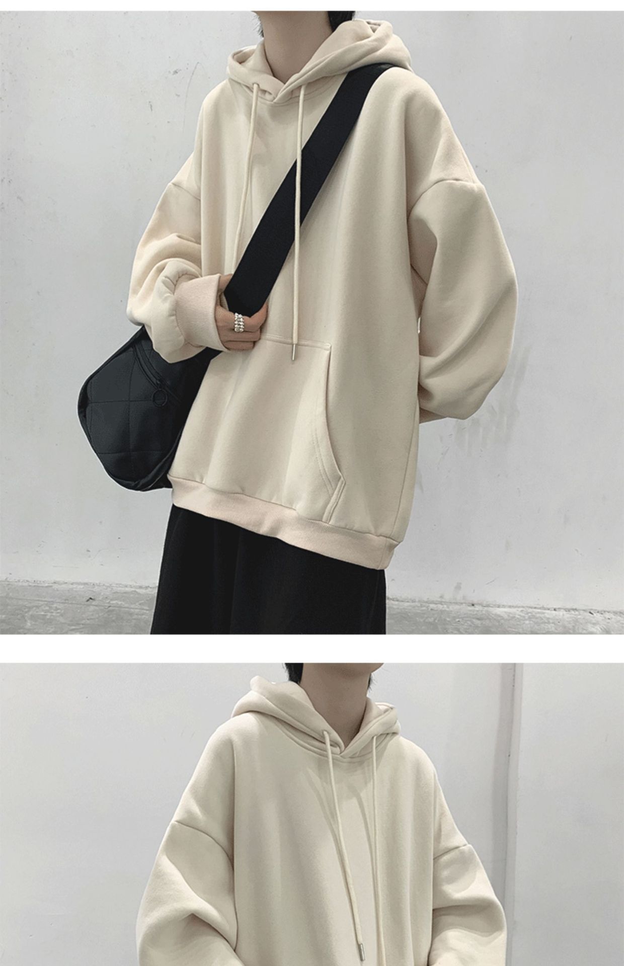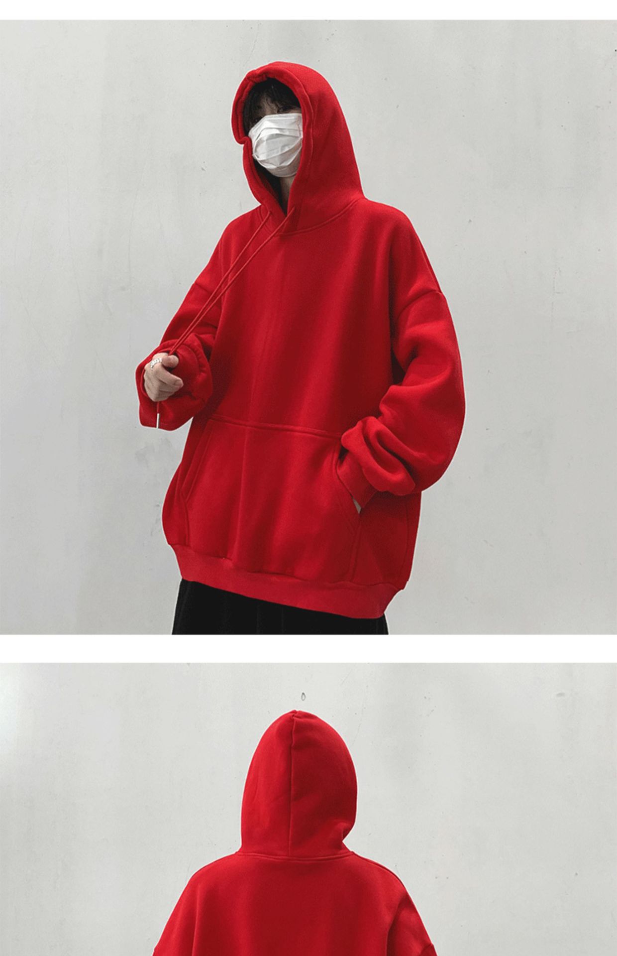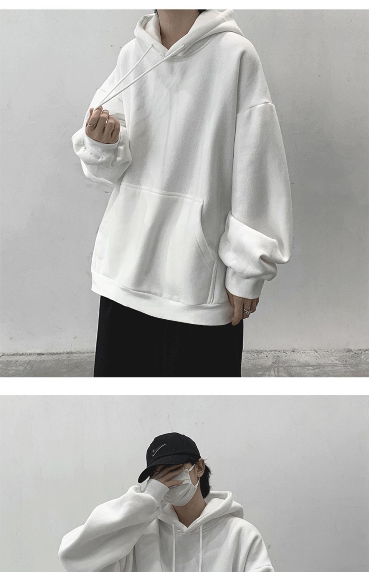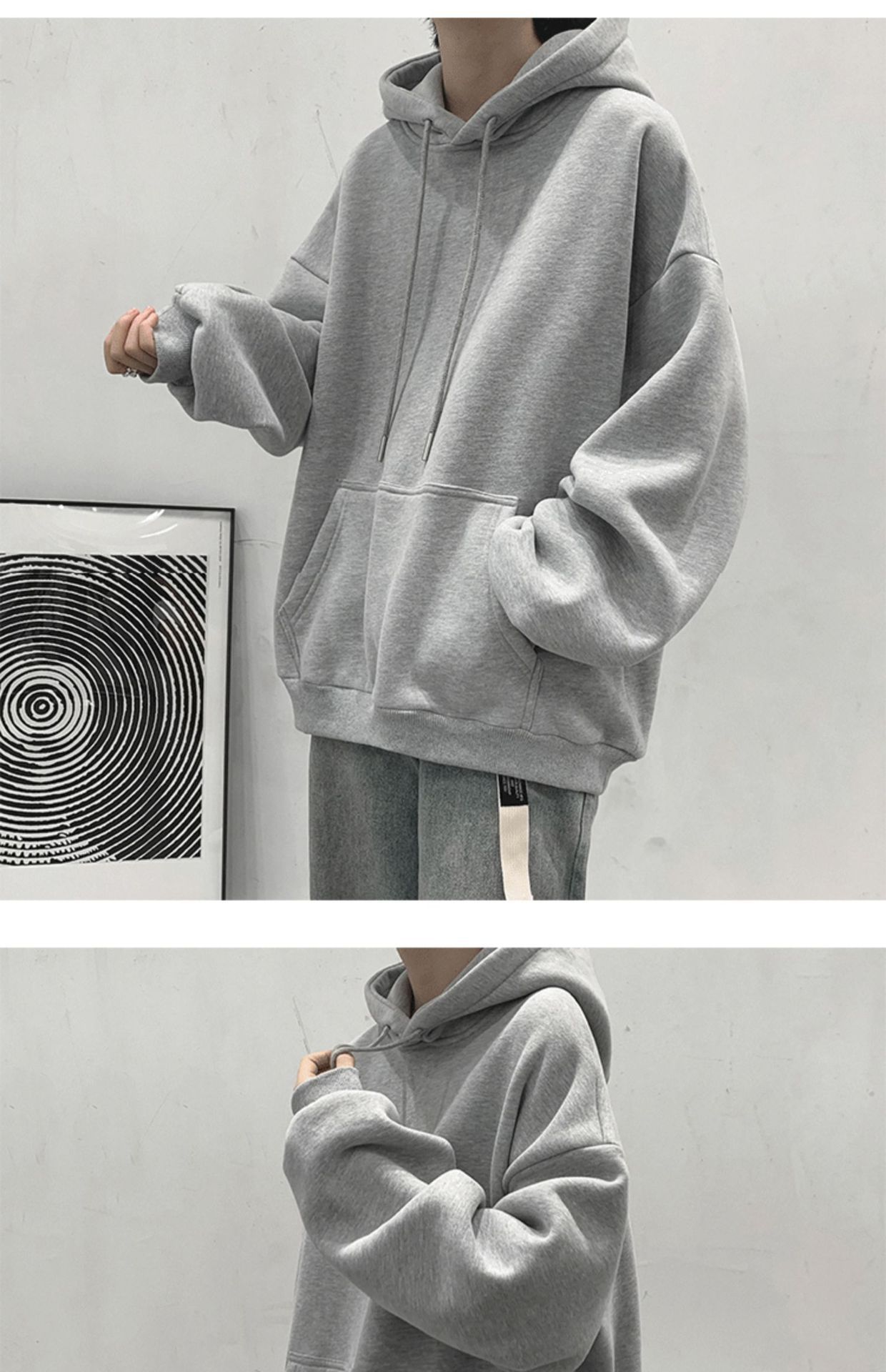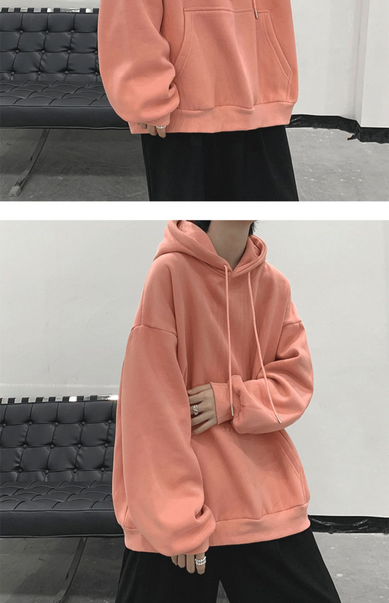 트렌디 한 브랜드 느슨한 봄과 가을 캐주얼 올 매치 한국 스타일 유행 커플 원피스 긴 소매 풀오버 재킷 솔리드 컬러 후드 스웨트 셔츠