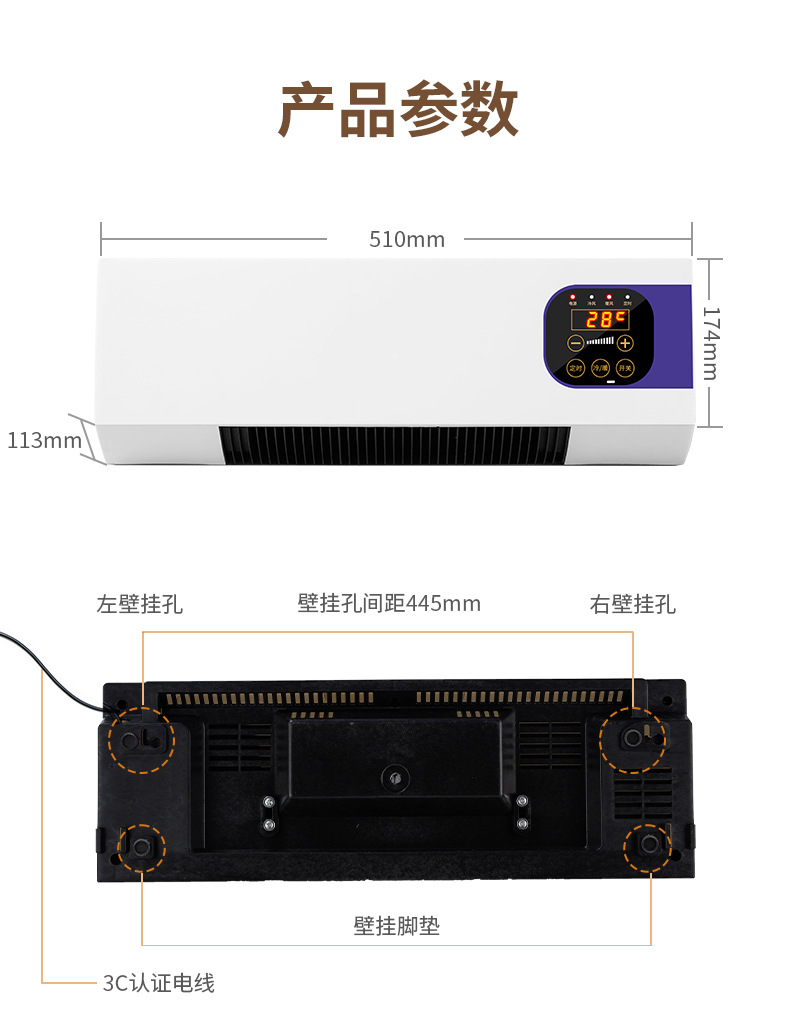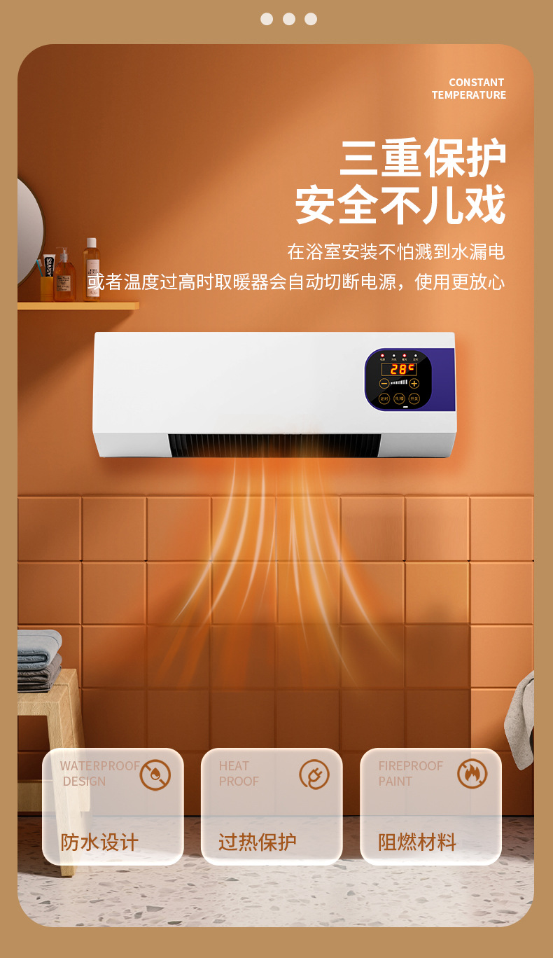 히터 벽 장착 가정용 원격 제어 히터 욕실 전기 히터 에너지 절약 빠른 난방 음소거 전기 히터 소형스토어 가기