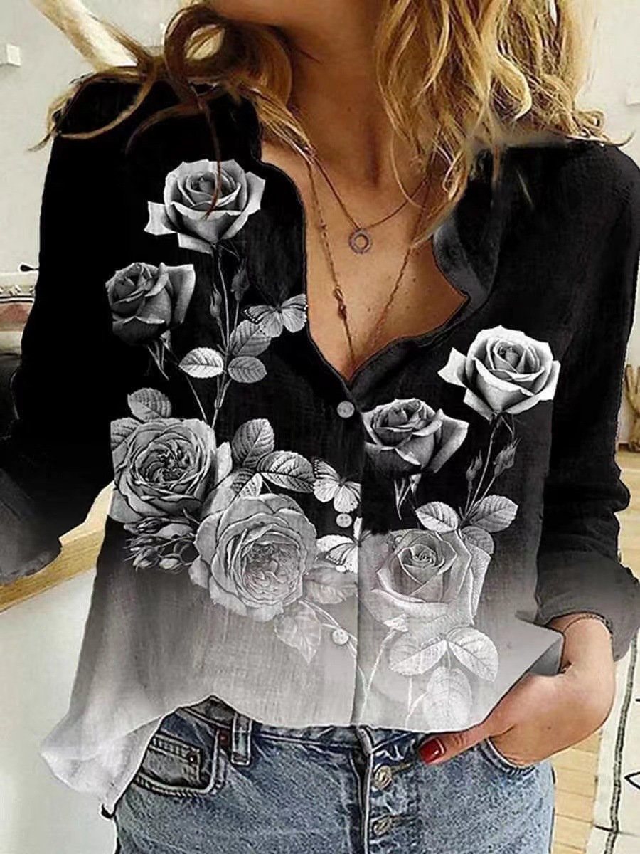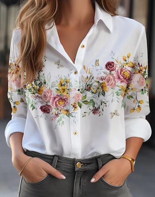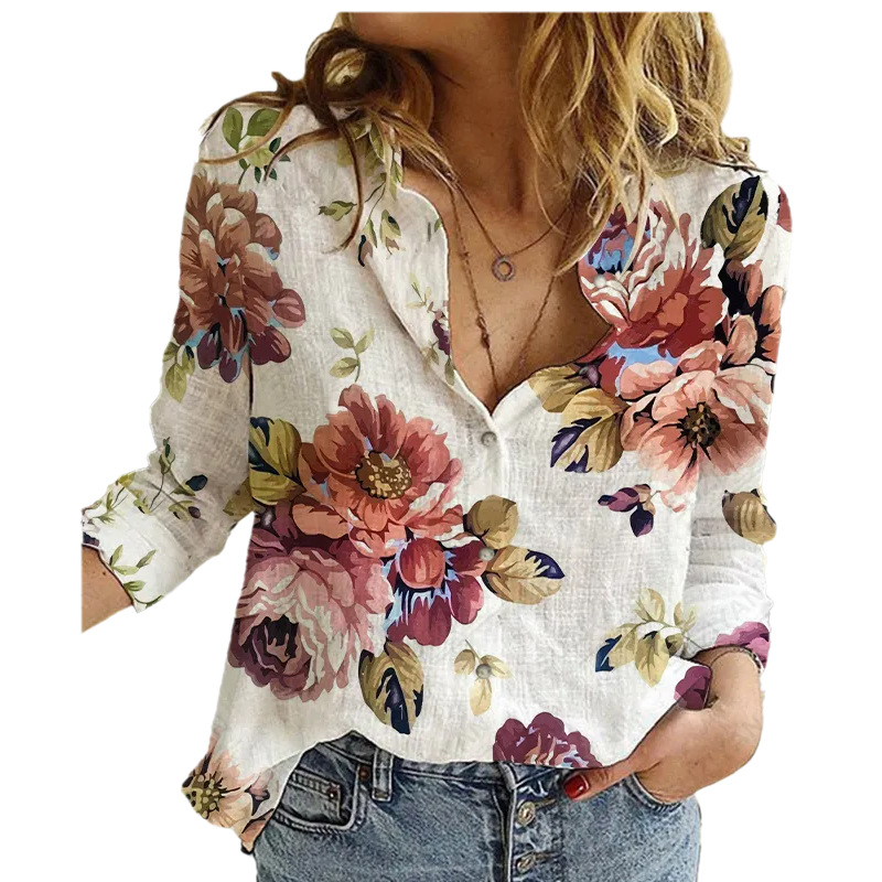 대외 무역 국경 2024 유럽과 미국 여자 카디건 3D 꽃 긴 소매 셔츠 여자의 하이 엔드 올 매치 탑 인쇄
