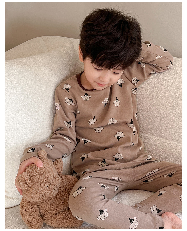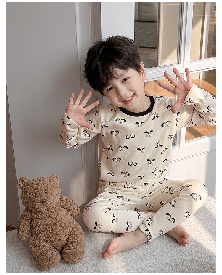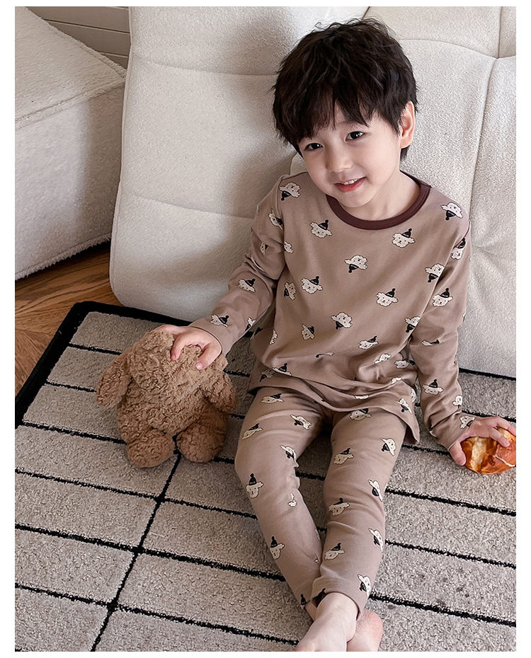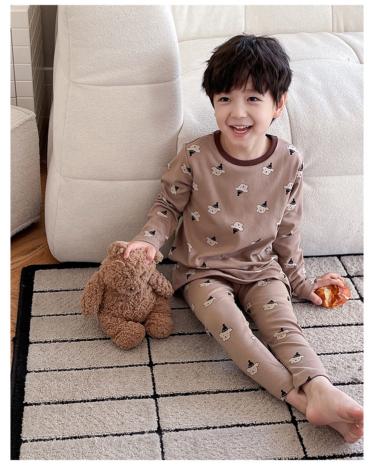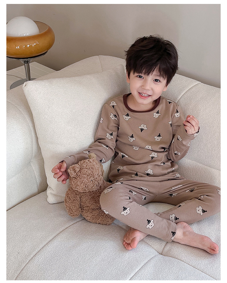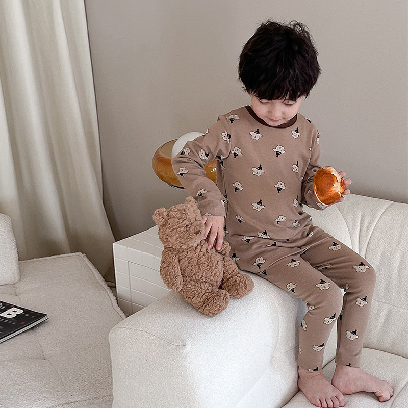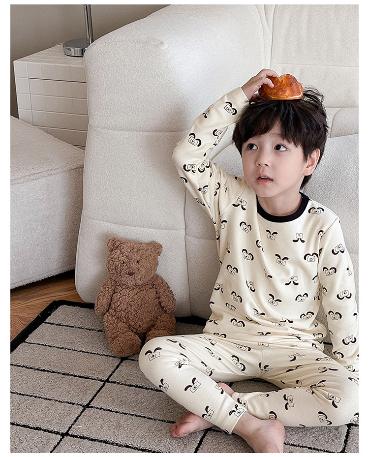 【클리어런스 특가】아동 겨울용 귀여운 한국 스타일 따뜻한 속옷 남녀 아동용 잠옷 세트
