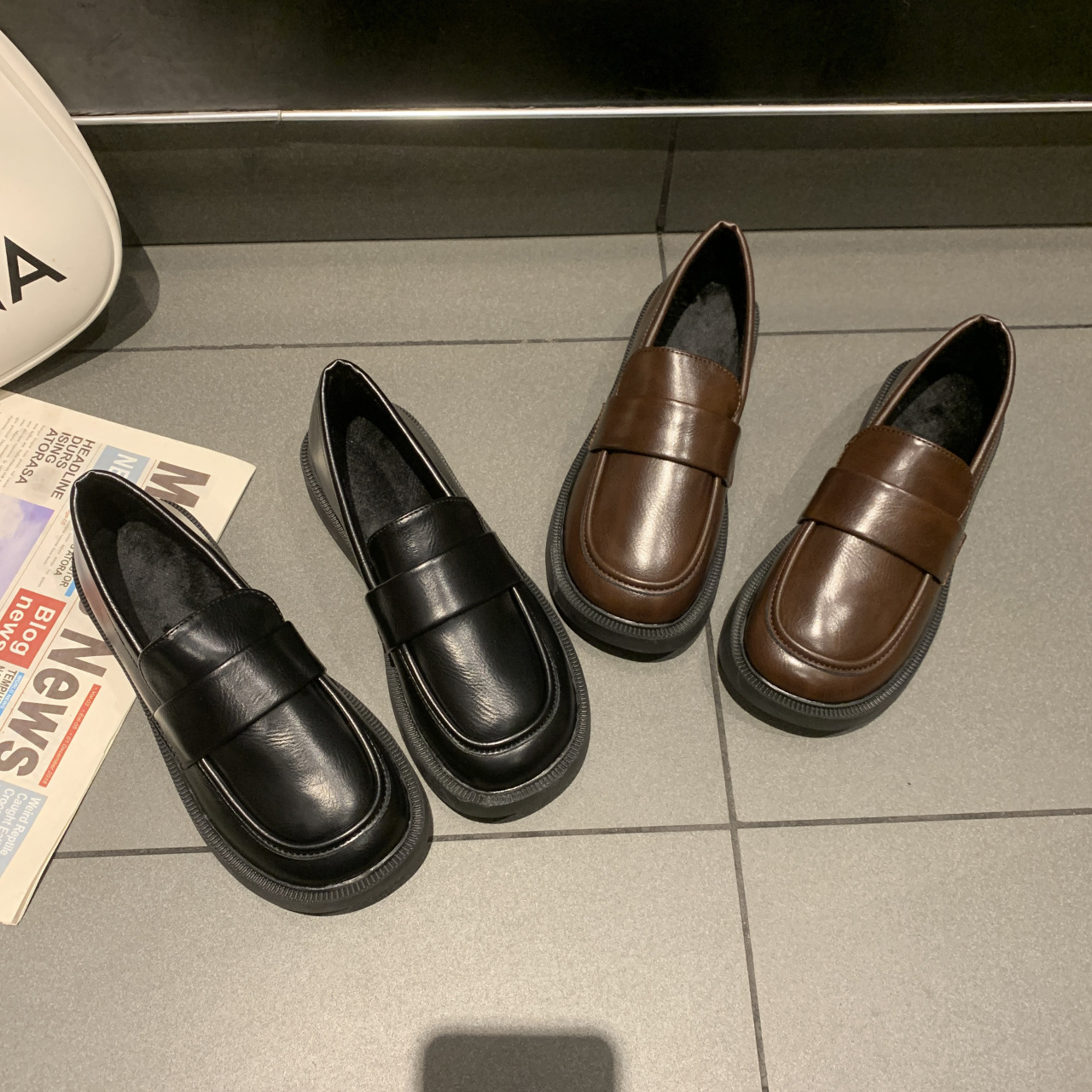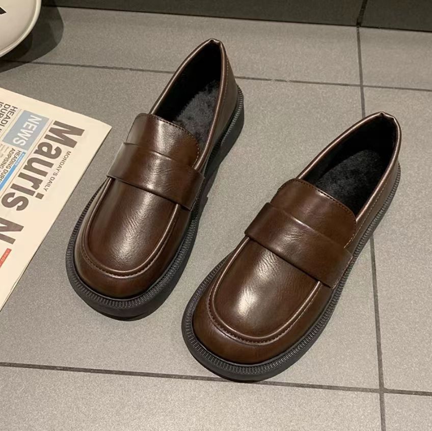 두꺼운 밑창 로퍼 여성의 작은 가죽 신발 2024 봄 새로운 한국식 슬립 온 부드러운 바닥 올 매치 레트로 싱글 슈즈스토어 가기