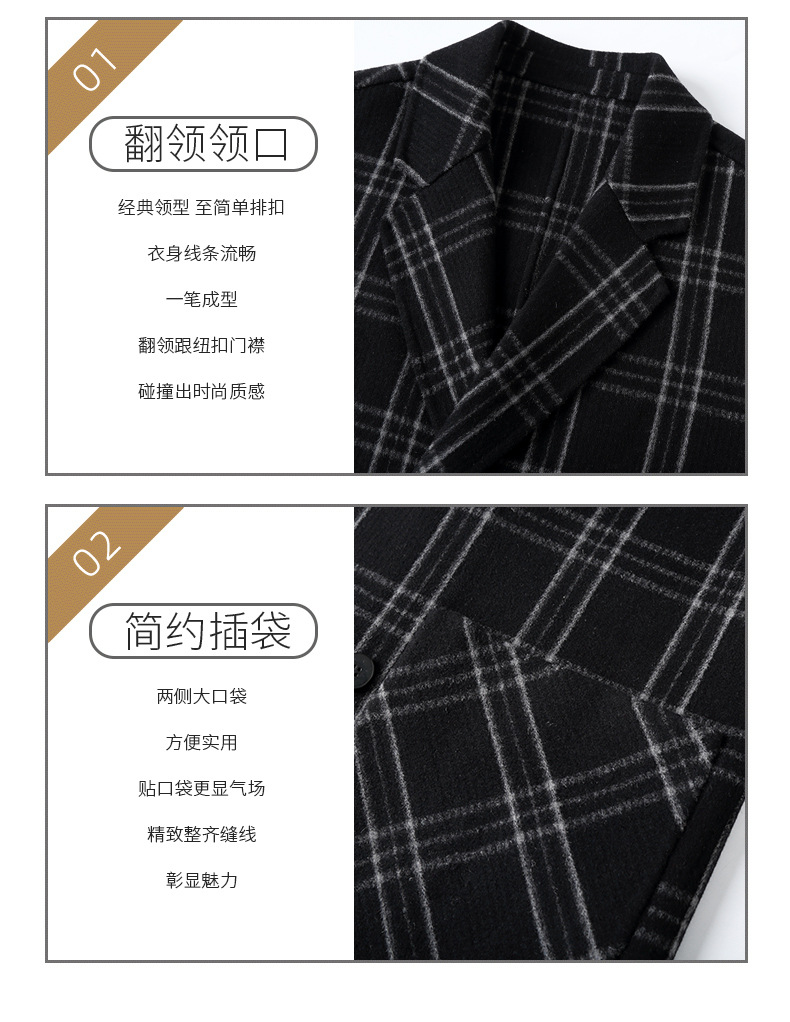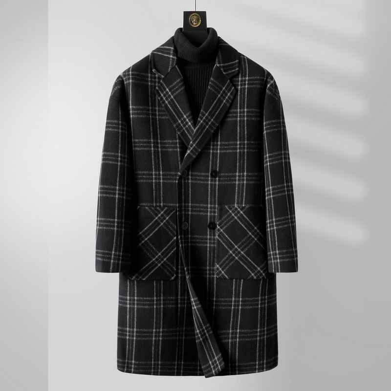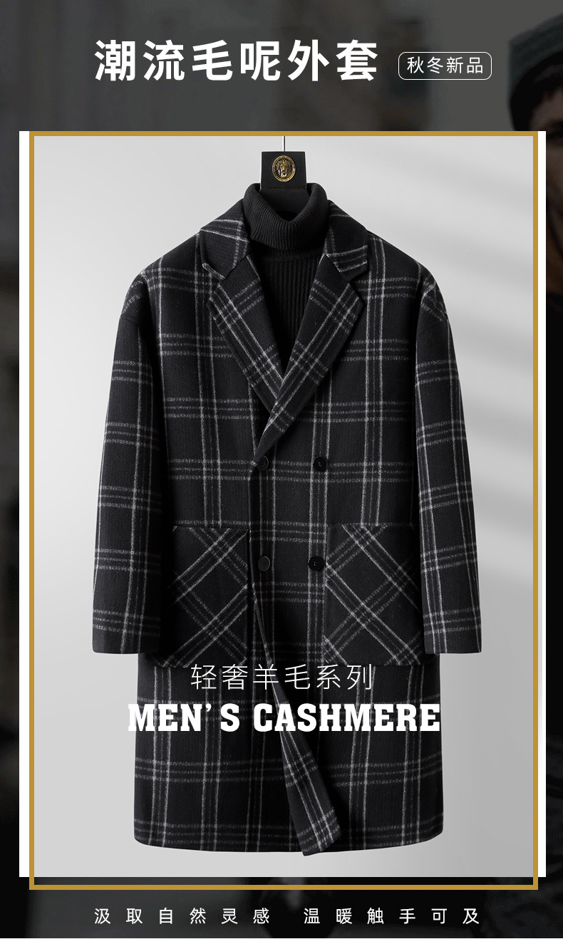 양면 모직 코트 남자 중간 길이 2023 겨울 더블 브레스트 고급 비 캐시미어 두꺼운 코트 패션스토어 가기