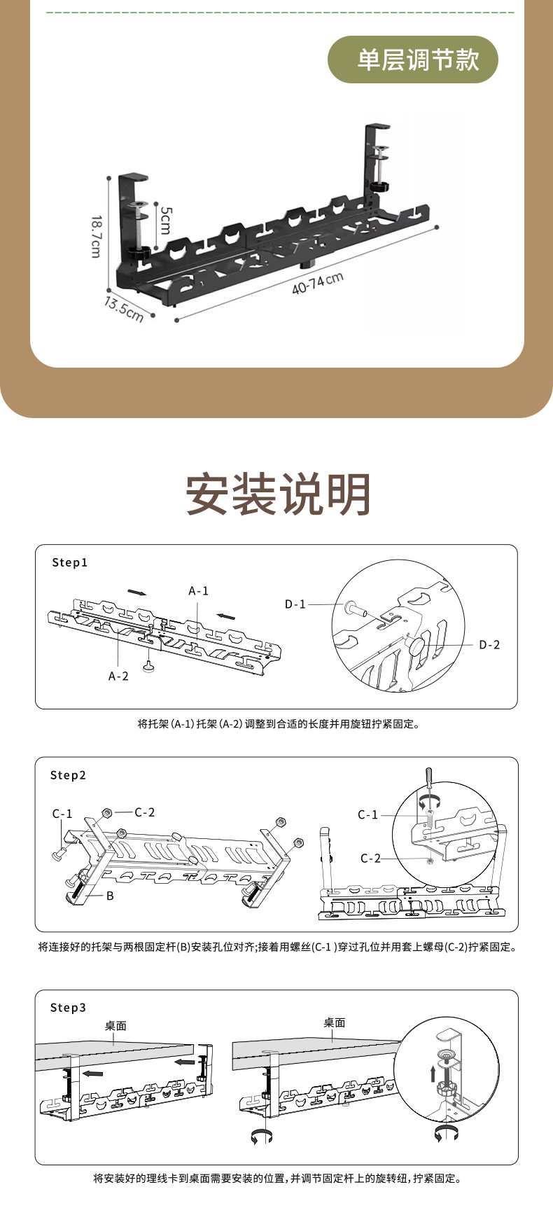 책상 아래 케이블 정리기 가정용 무타공 콘센트 멀티탭 전선 데이터 케이블 간편 수납 정리 선반 스탠드